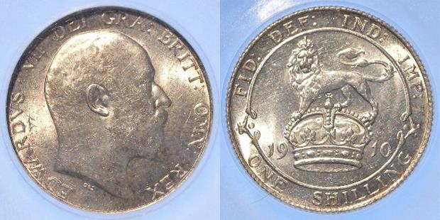 Shilling 1910, slabbed CGS (UK) AU 75.