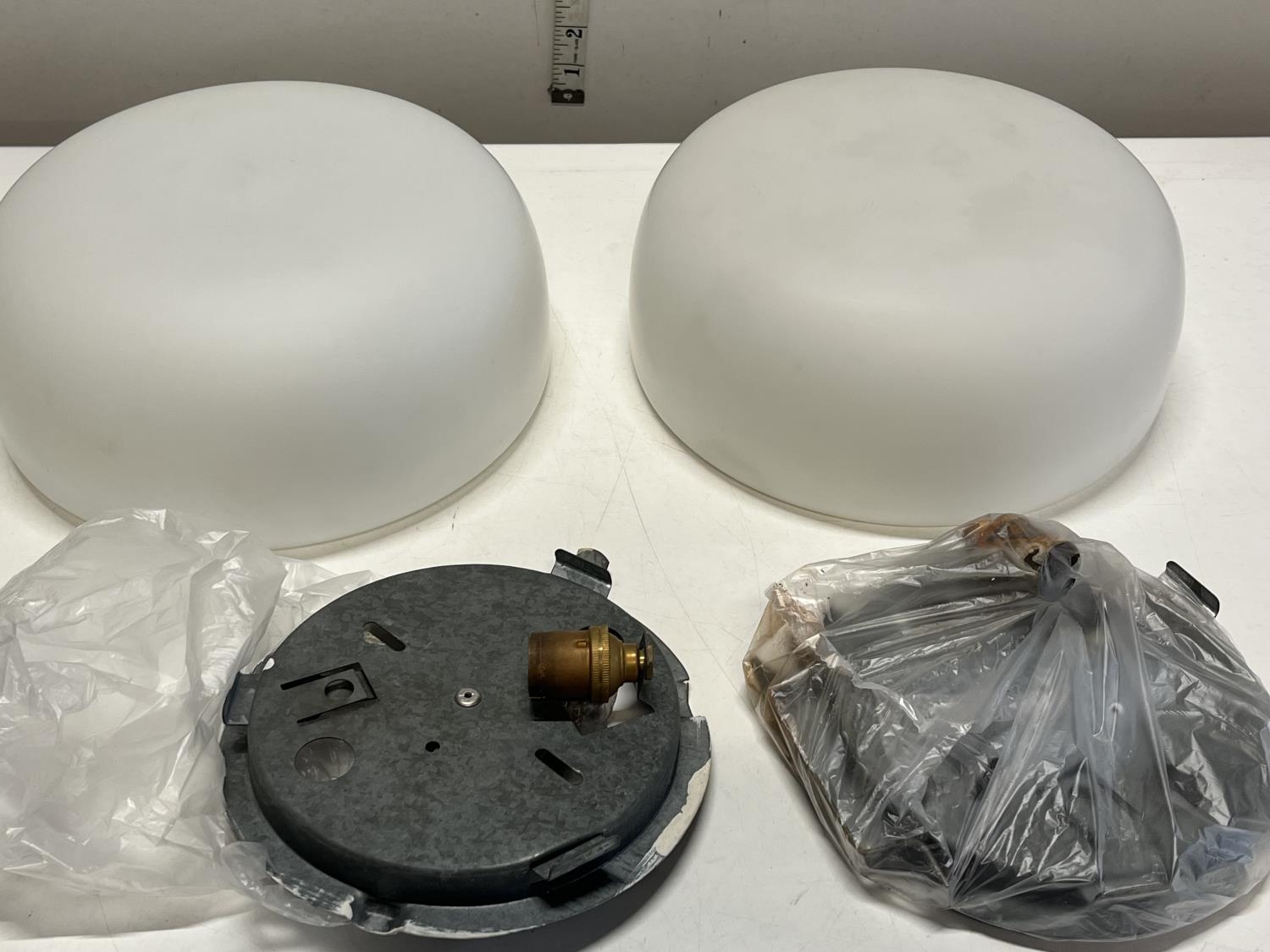 Two vintage glass Opaque glass ceiling shades with galleries