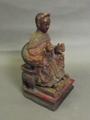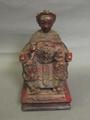 A late C19th Chinese lacquered plaster composition of an Emperor in ornate clothing seated on a throne, decorated with Fo dogs and dragons, 8¼' high
