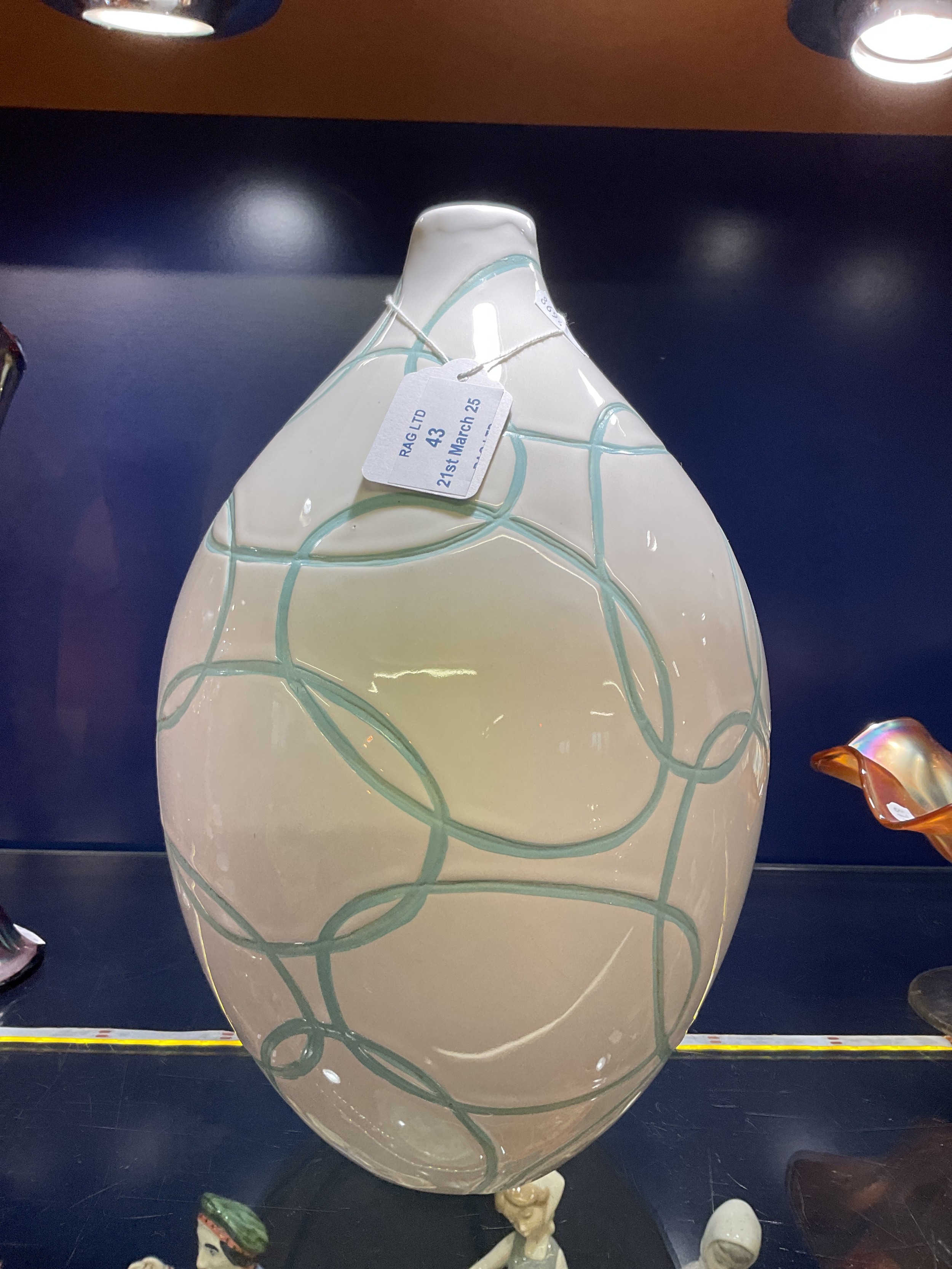 A large bulbous vase having wavy line decoration