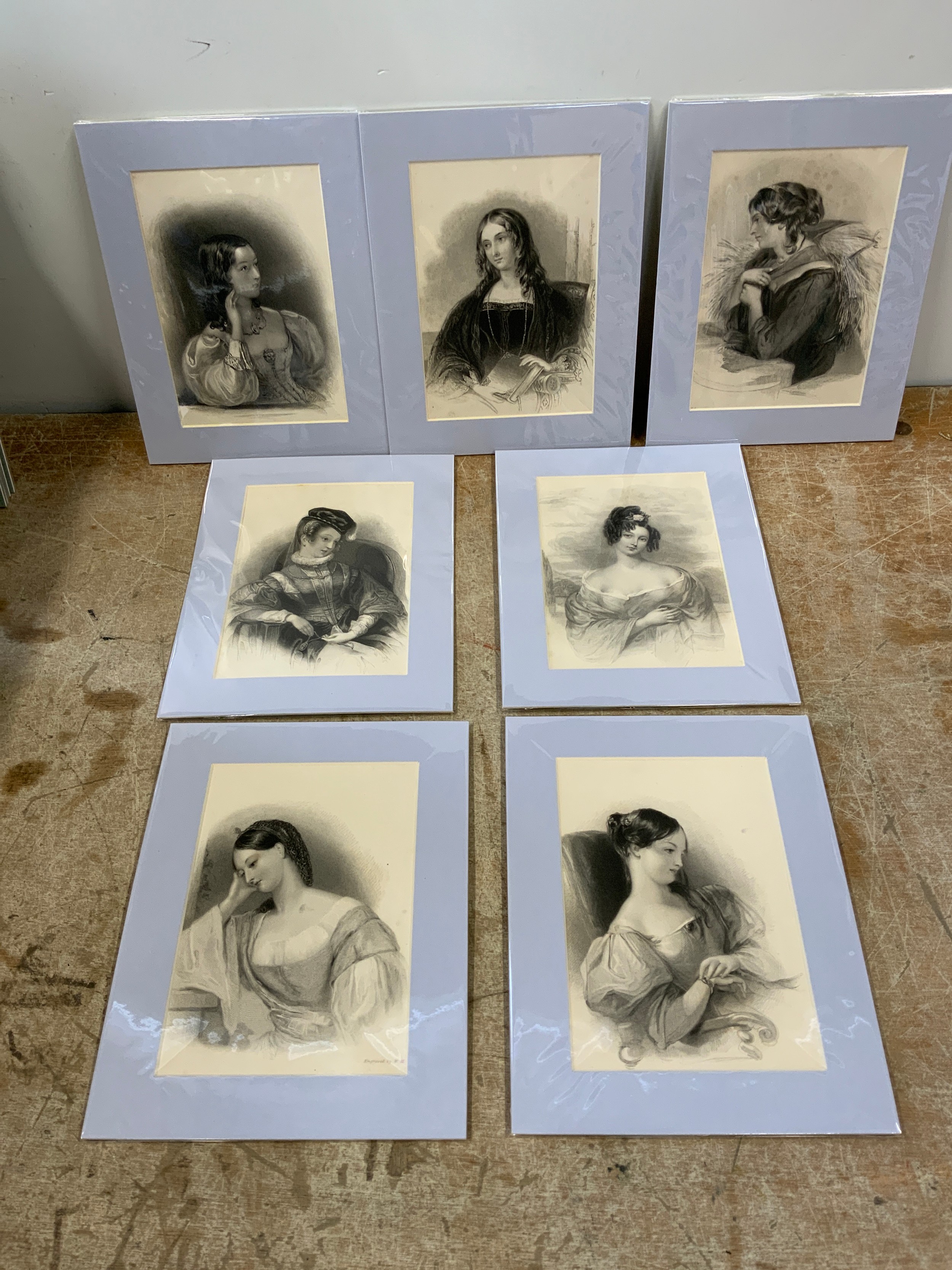 7x Antique Portraits of Ladies Finden 1834 Matching Mounts