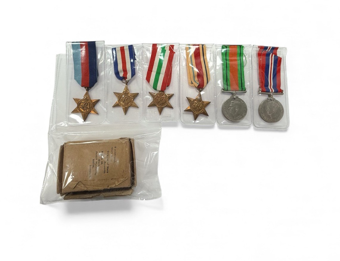 Second World War, medal group awarded to W.J. Barradale includes Africa Star, Italy Star, France & Germany Star, The 1939-1945 Star, War and Defence Medals. With box of issue. (6)