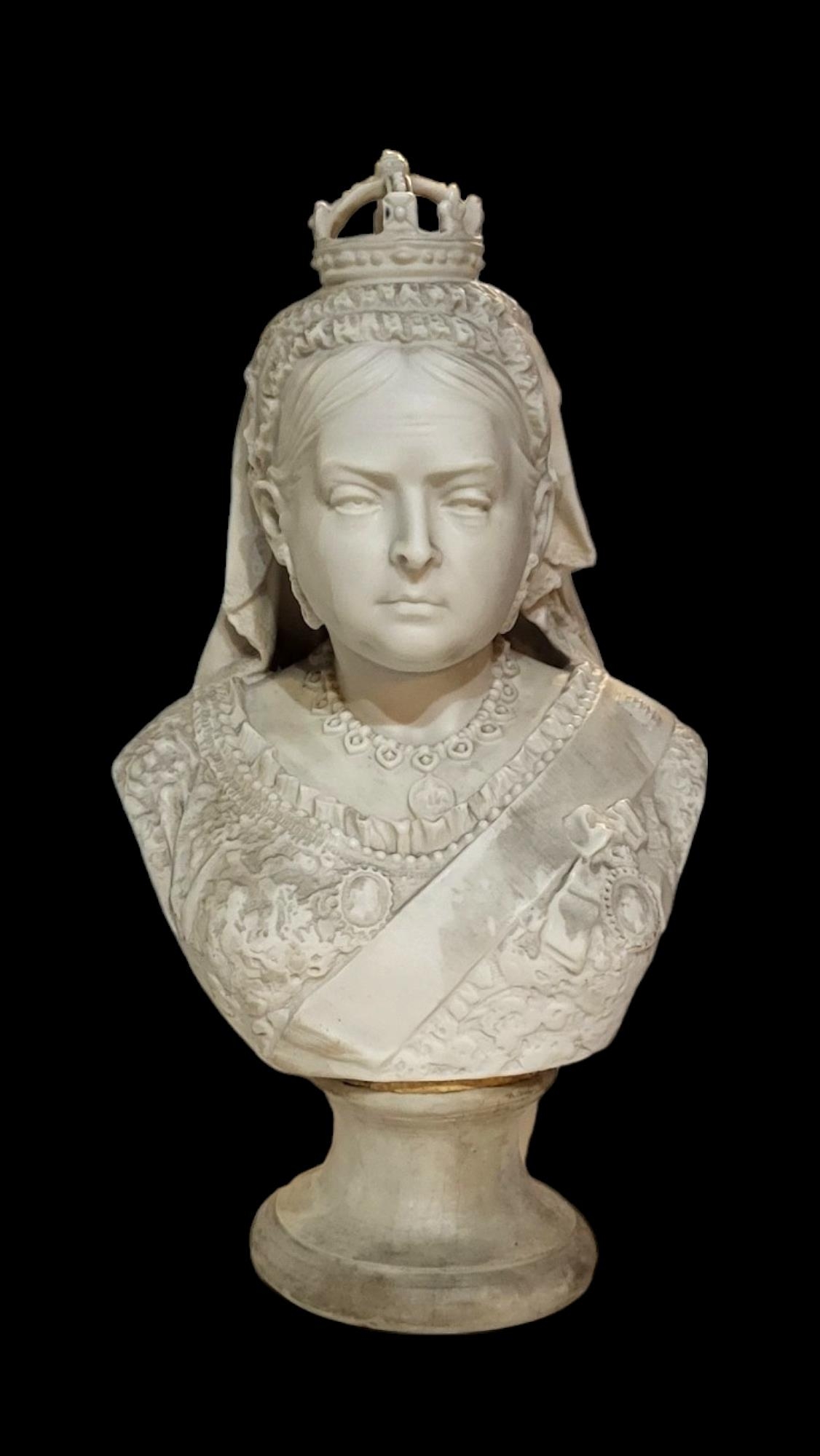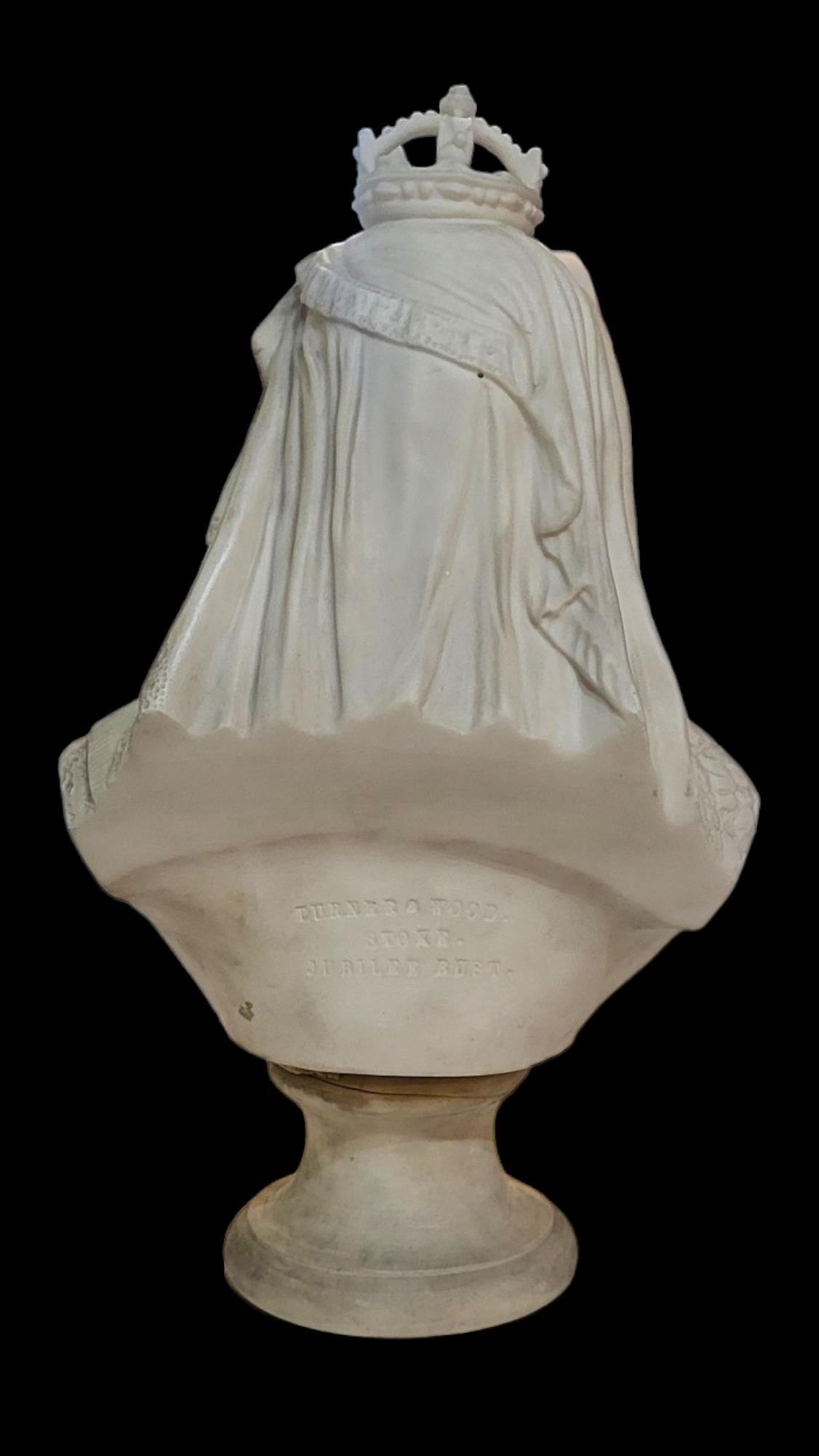 TURNER & WOOD, STOKE-ON-TRENT, A 19TH CENTURY PARIAN BUST OF QUEEN VICTORIA, DIAMOND JUBILEE 1887