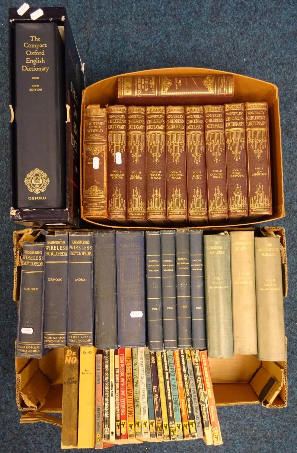 A quantity of various books to include a large Oxford Dictionary, collection of Pan, James Bond, Waverley Children's Dictionary, Wireless Encyclopaedia, etc (3).