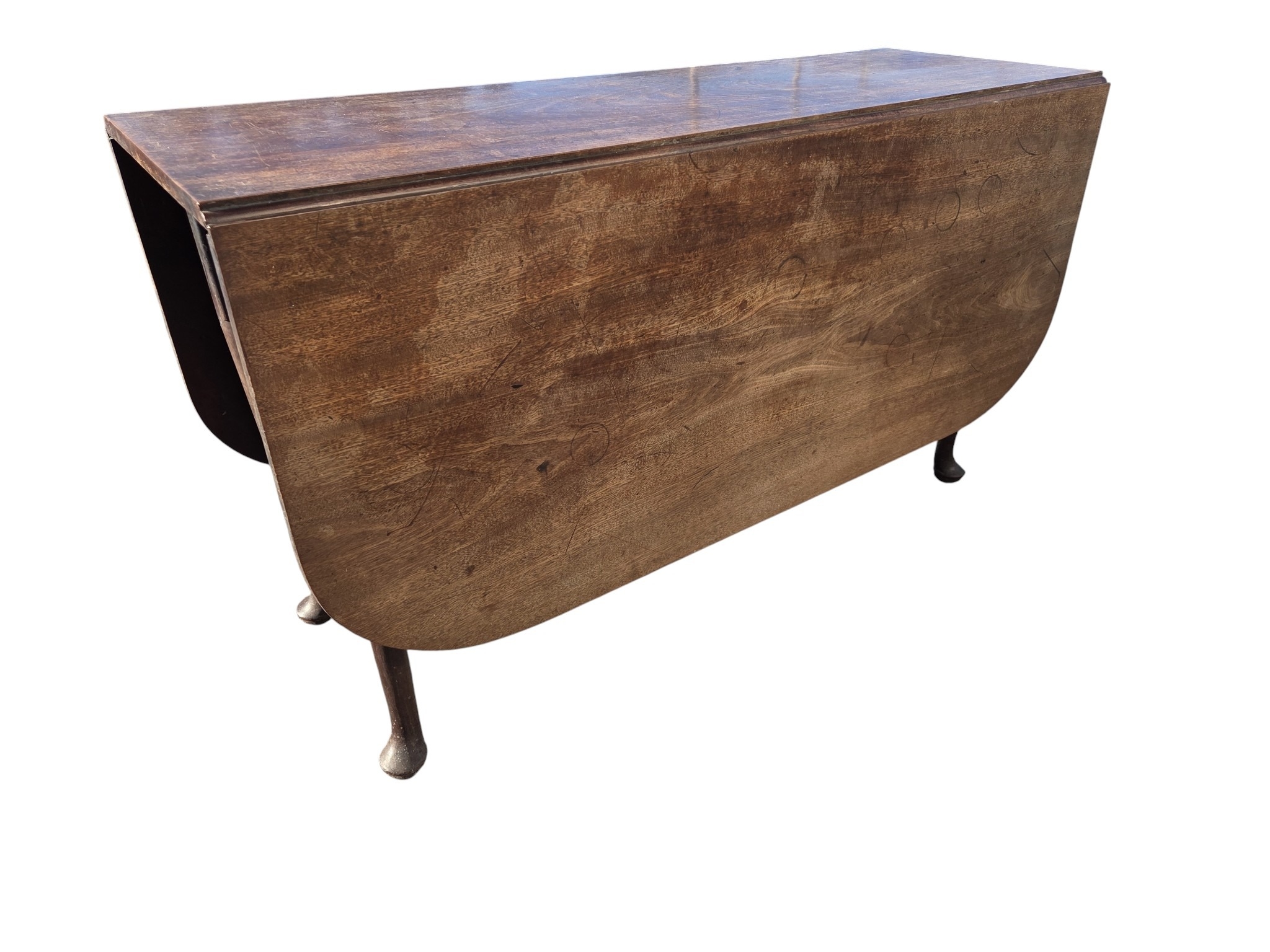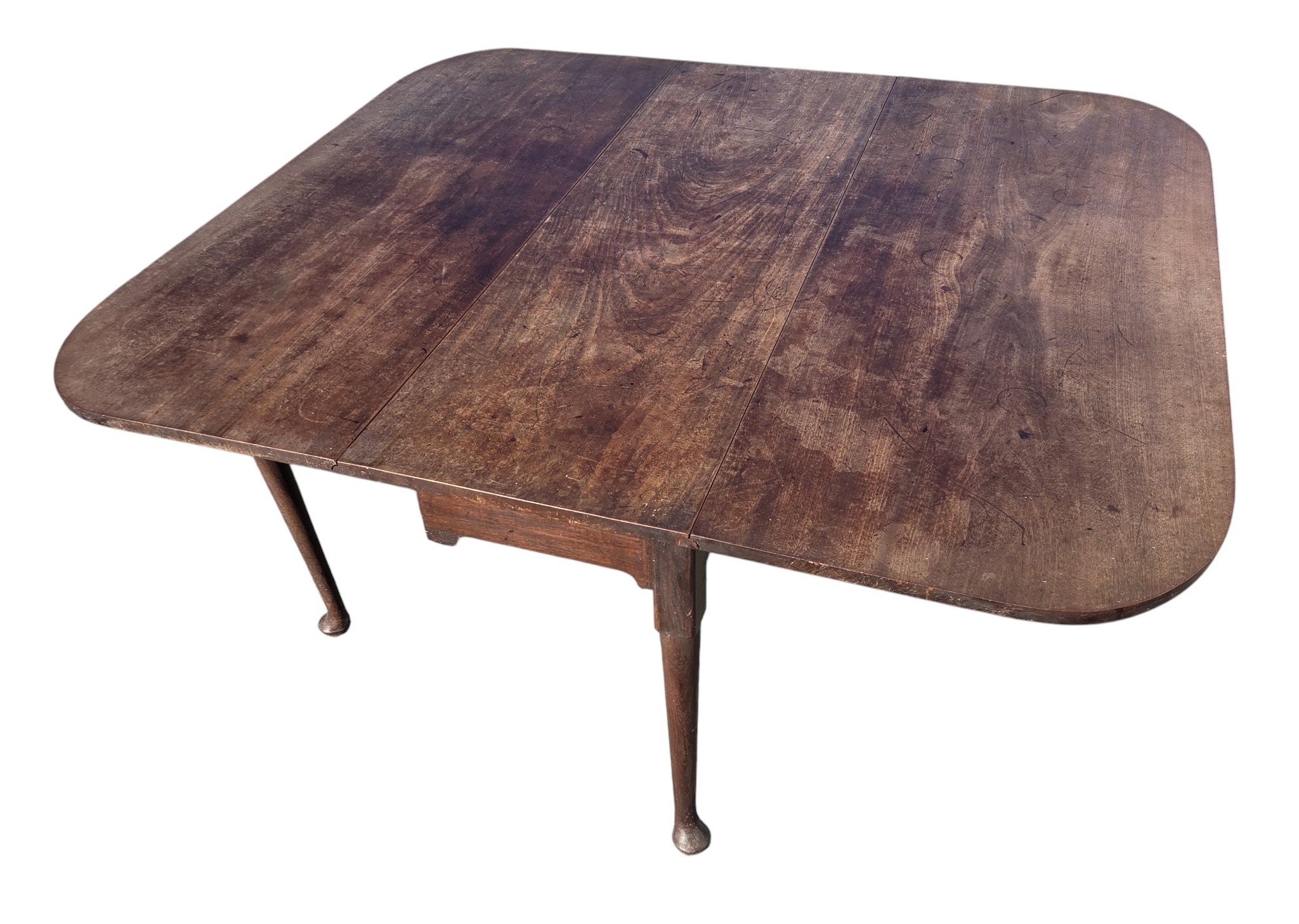 A really good George ll Mahogany Dropleaf Table of large proportions with simple pad feet.