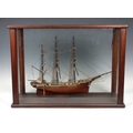 A 19th Century Napoleonic prisoner of war made model ship, the three masted frigate mounted on a later support and cased, approx 37cm high, case measures 43cm x 60cm x 24cm