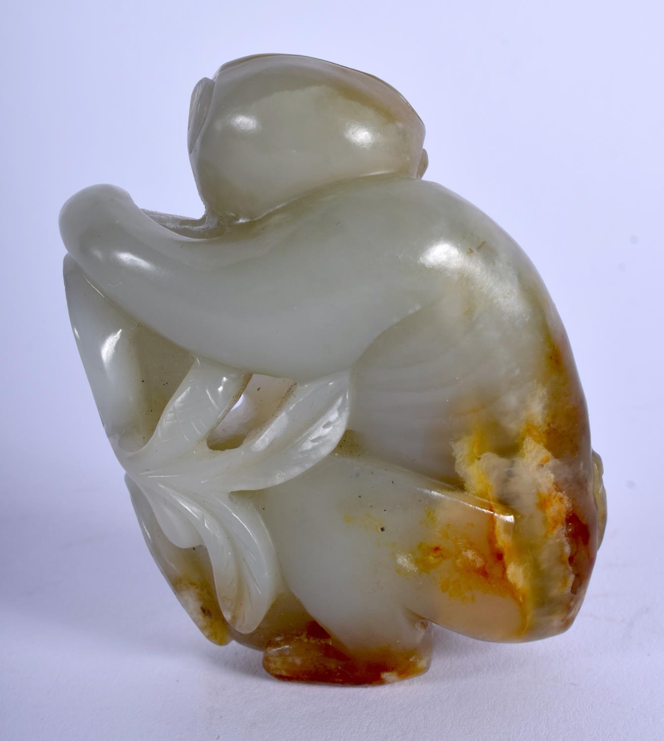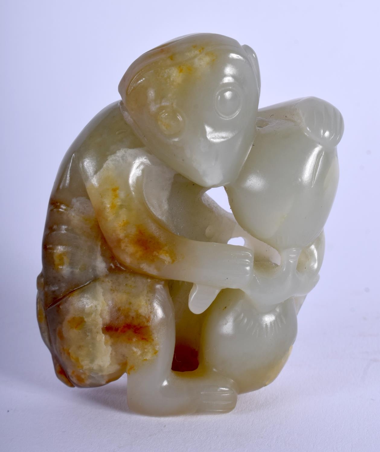 AN EARLY 20TH CENTURY CHINESE CARVED GREEN MUTTON JADE MONKEY Late Qing/Republic. 6.5 cm x 4.5 cm.