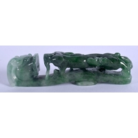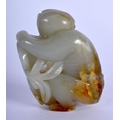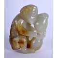 AN EARLY 20TH CENTURY CHINESE CARVED GREEN MUTTON JADE MONKE...