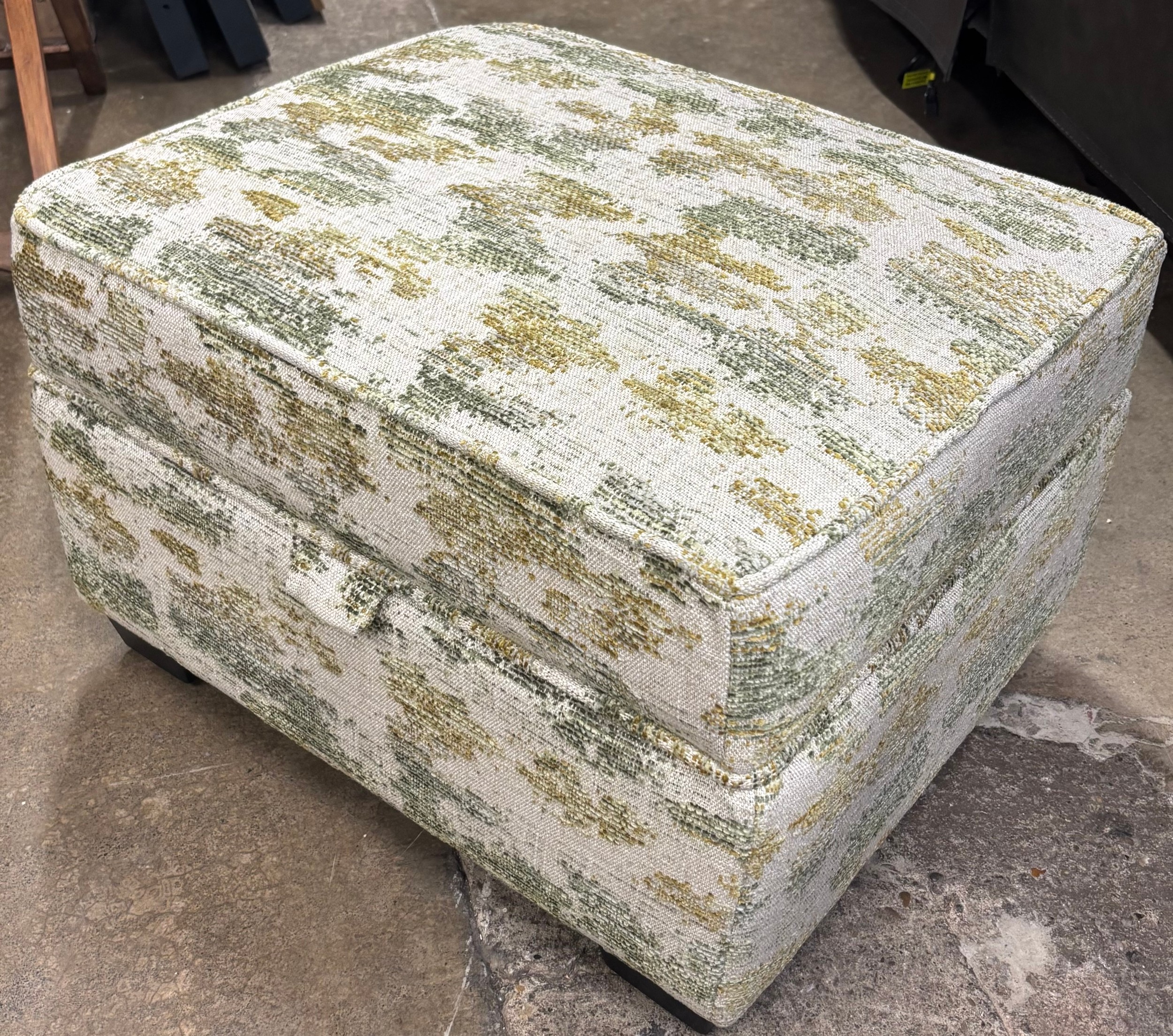 A cream and moss fabric storage footstool