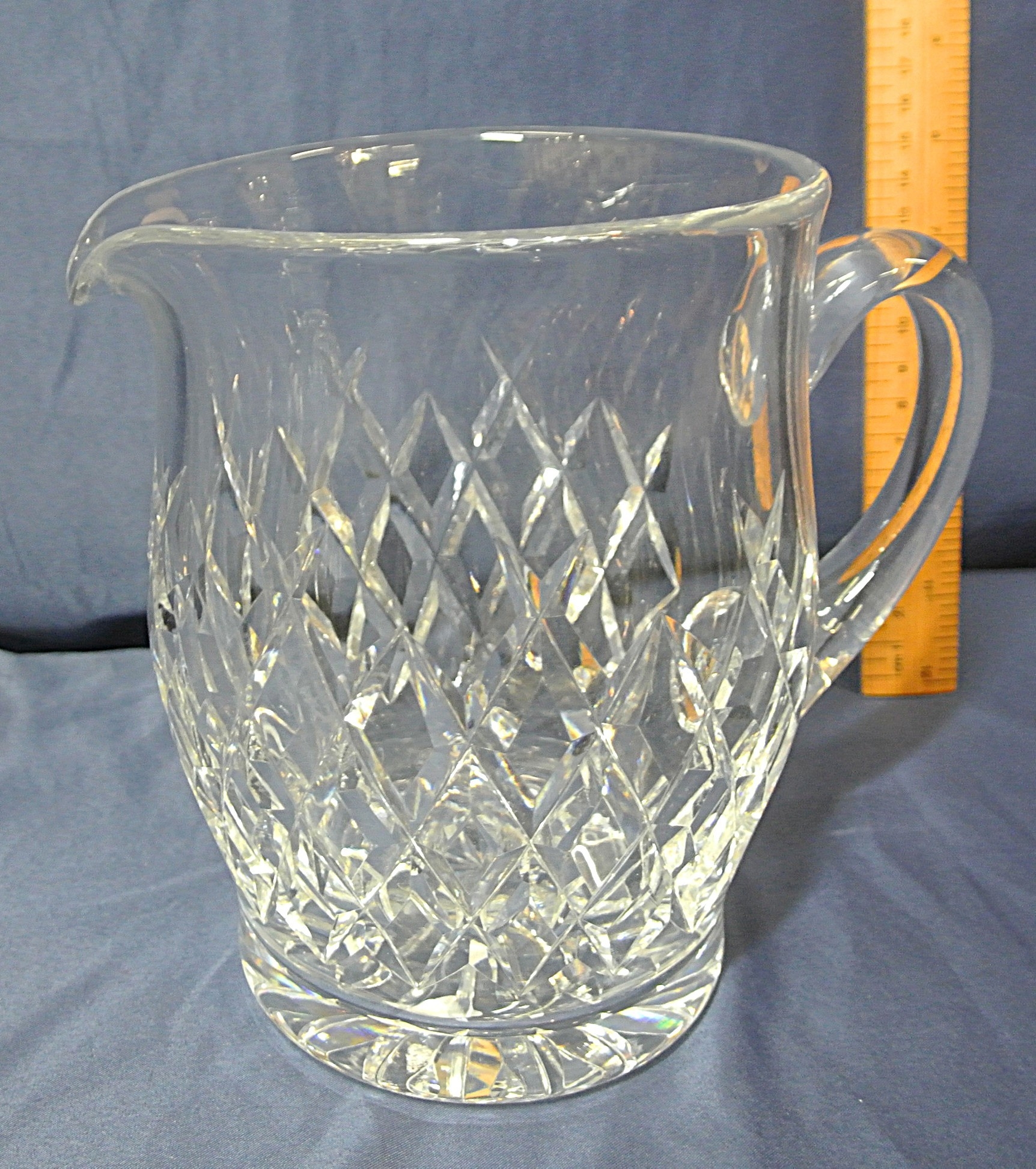 Heavy Waterford Crystal cut glass water jug diamond decoration and shaped handle