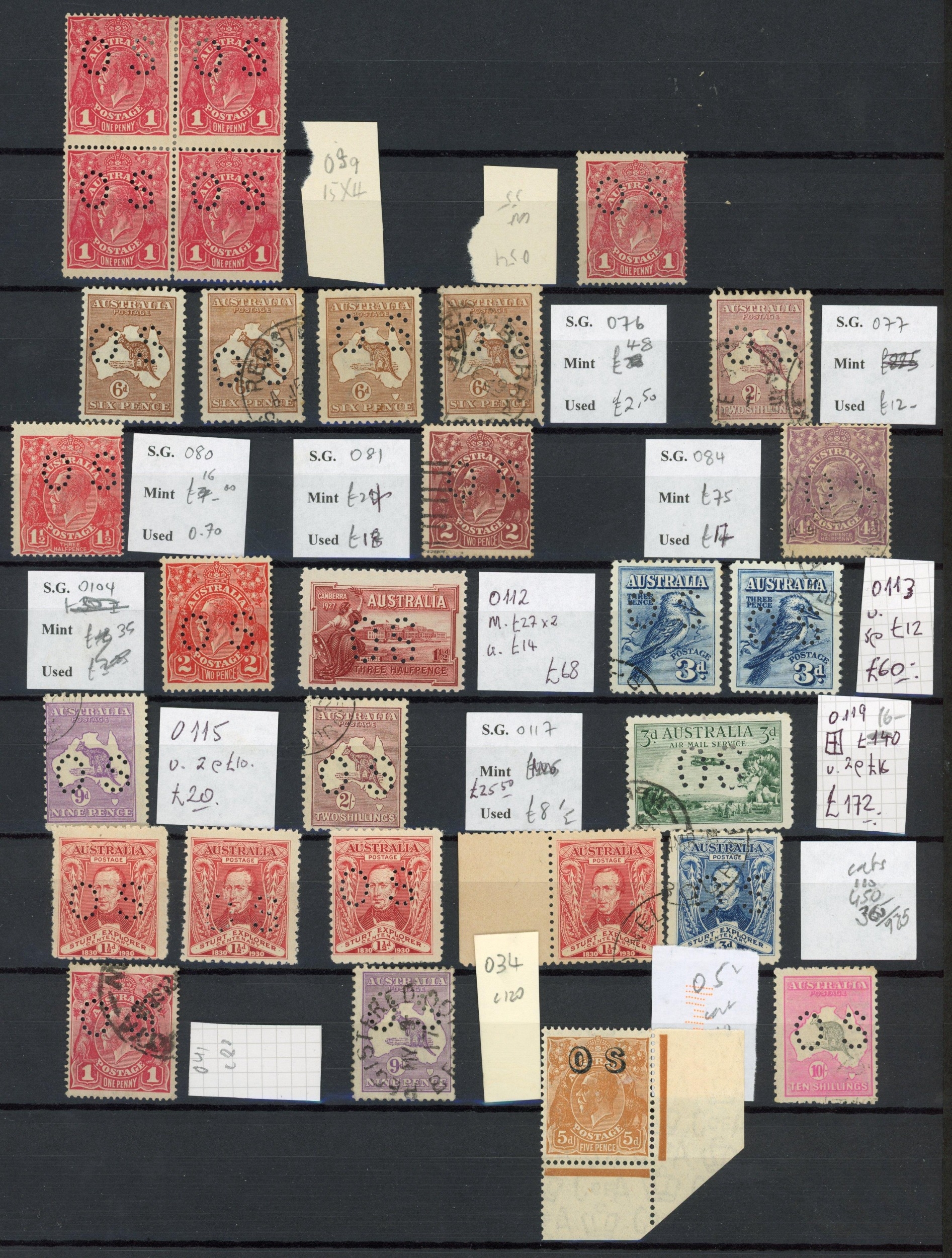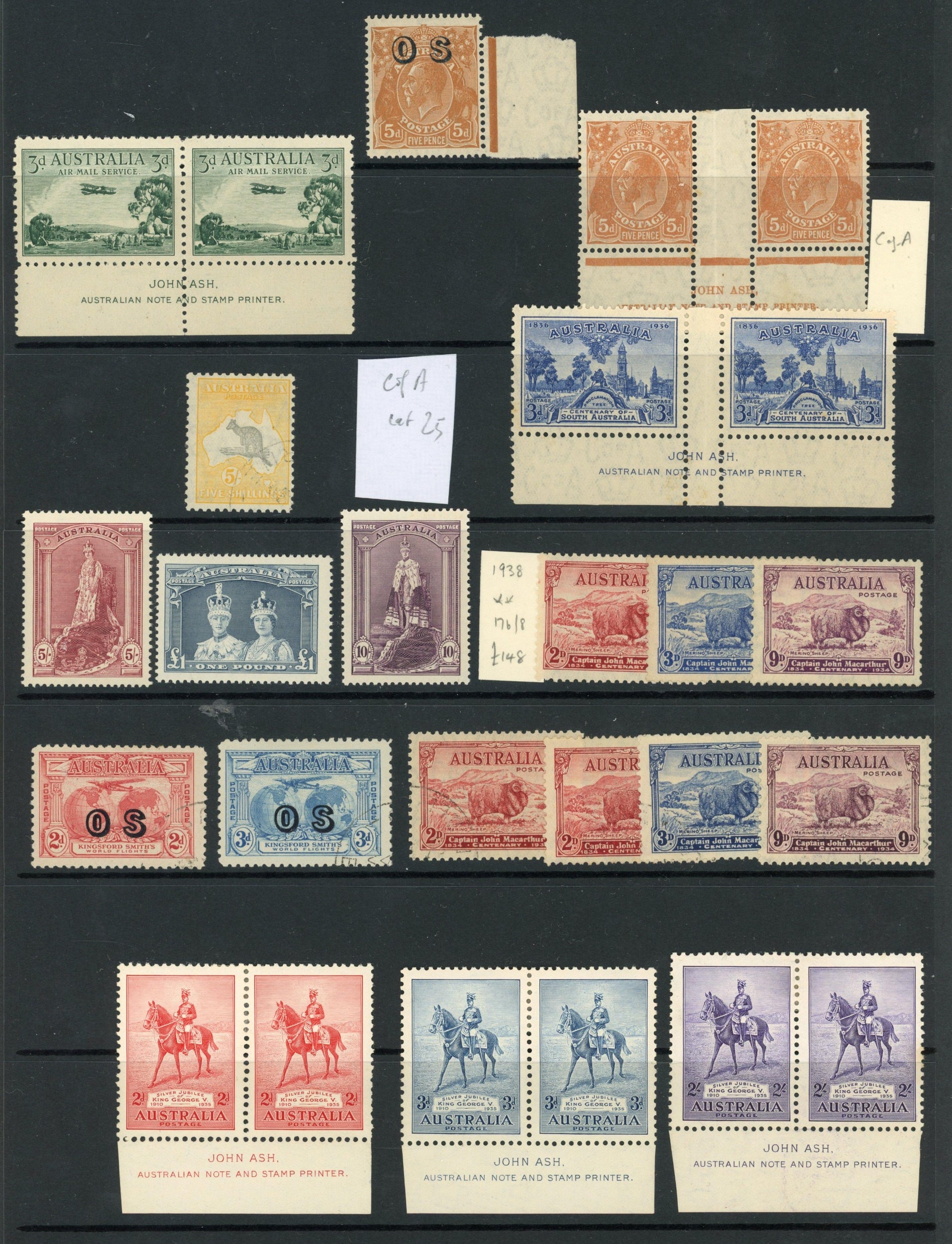 KGV-QEII mint and used selection arranged on large stockcards including Kangaroos, Â KGV heads mint range with value to 1s4d including selected blocks some with imprints. Also an assortment of officials. Mostly good to fine. (118)