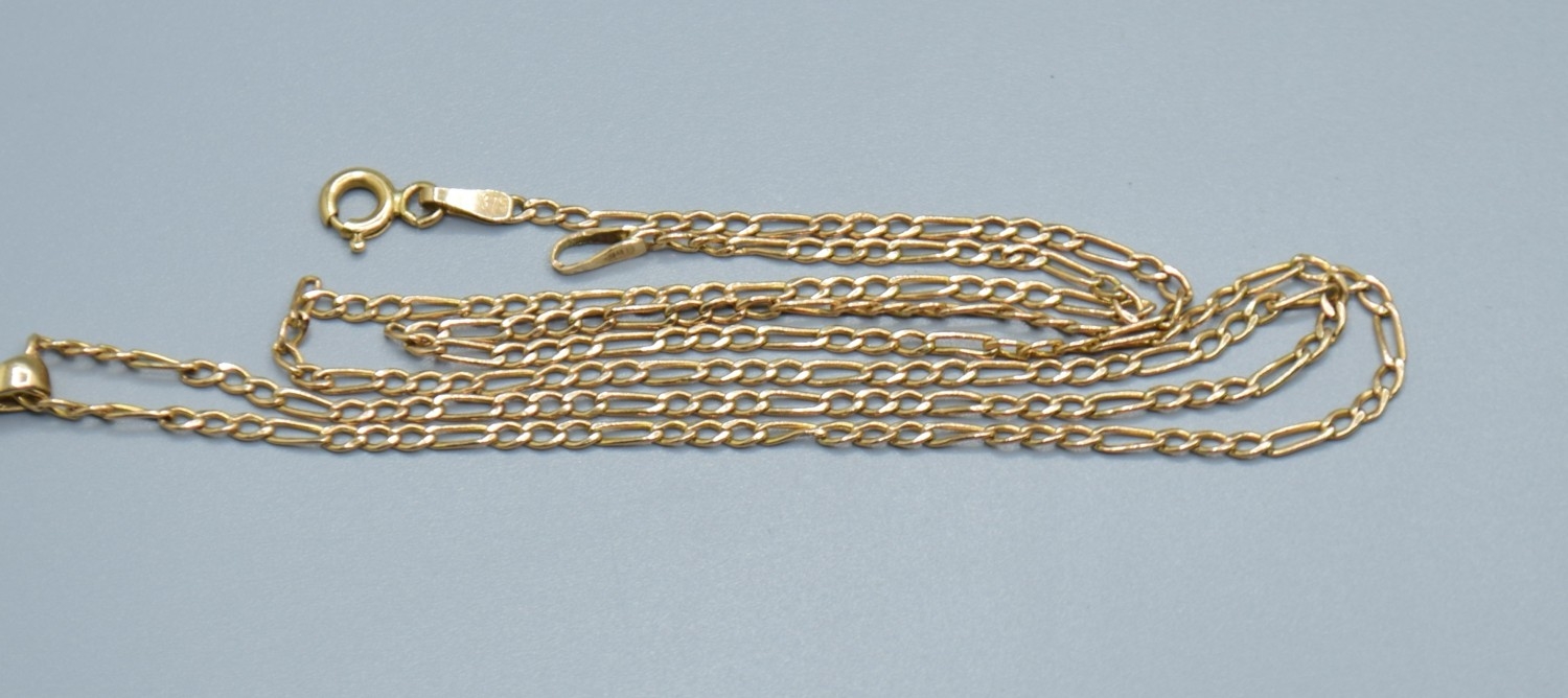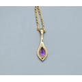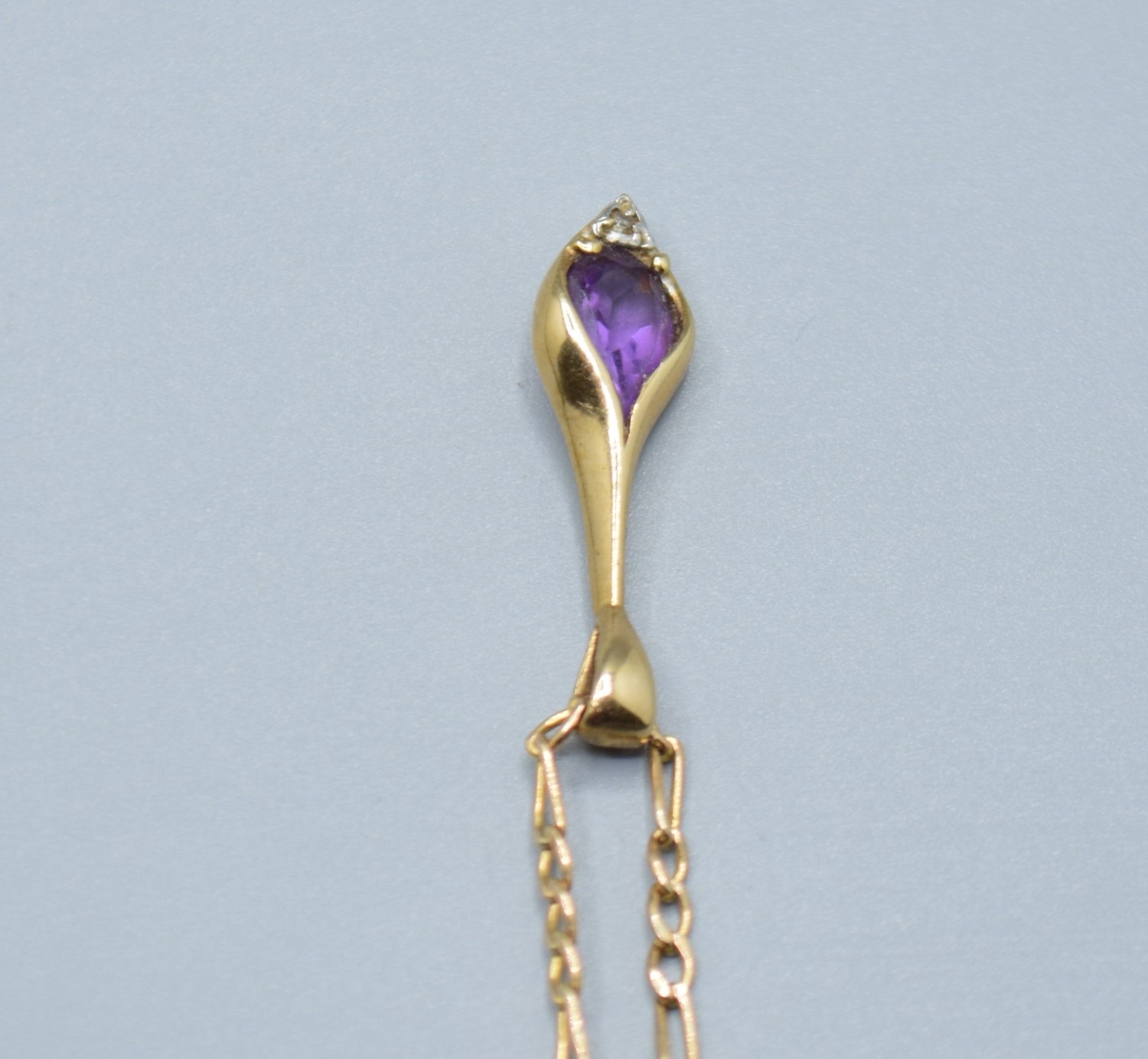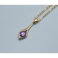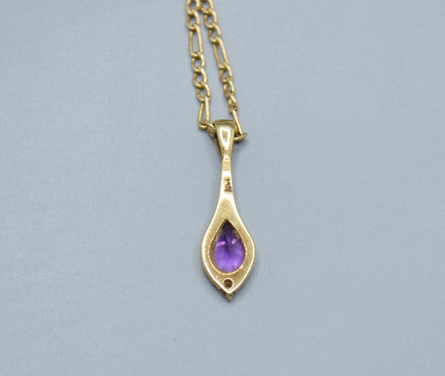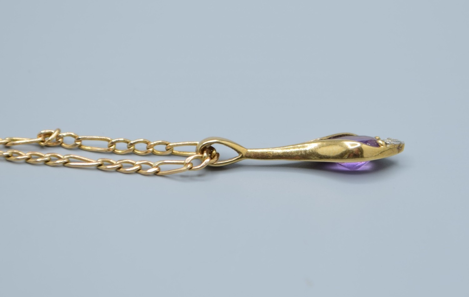 9ct gold Amethyst and accent Diamond tear drop pendant, pendant being 2.4cm drop on a 9ct gold figaro neck chain 56cm long, 2.4grams