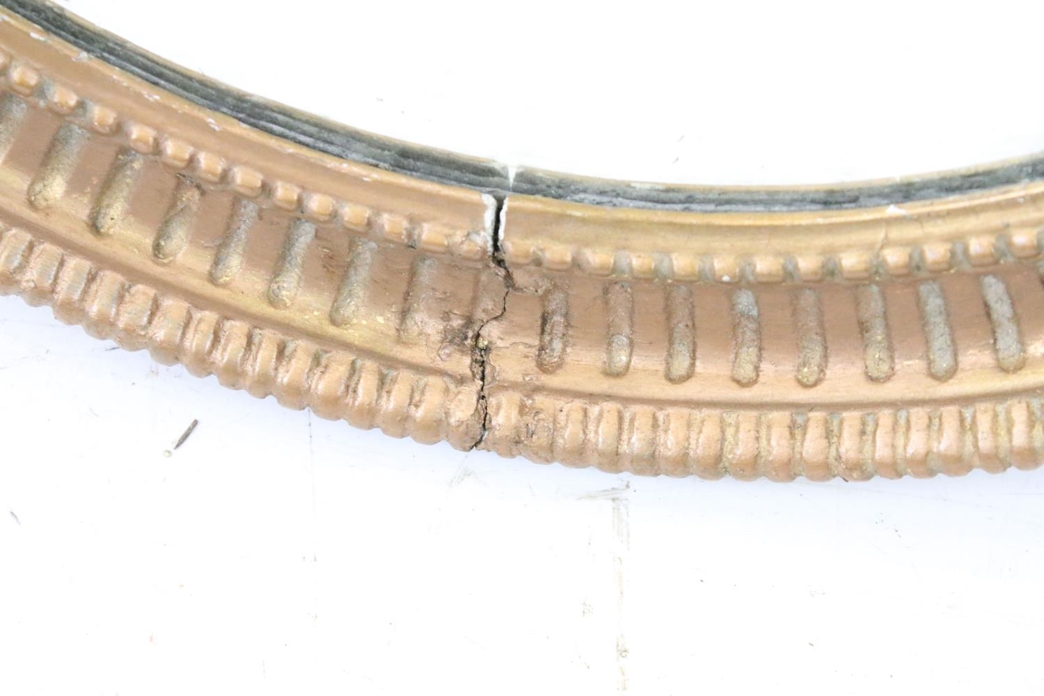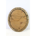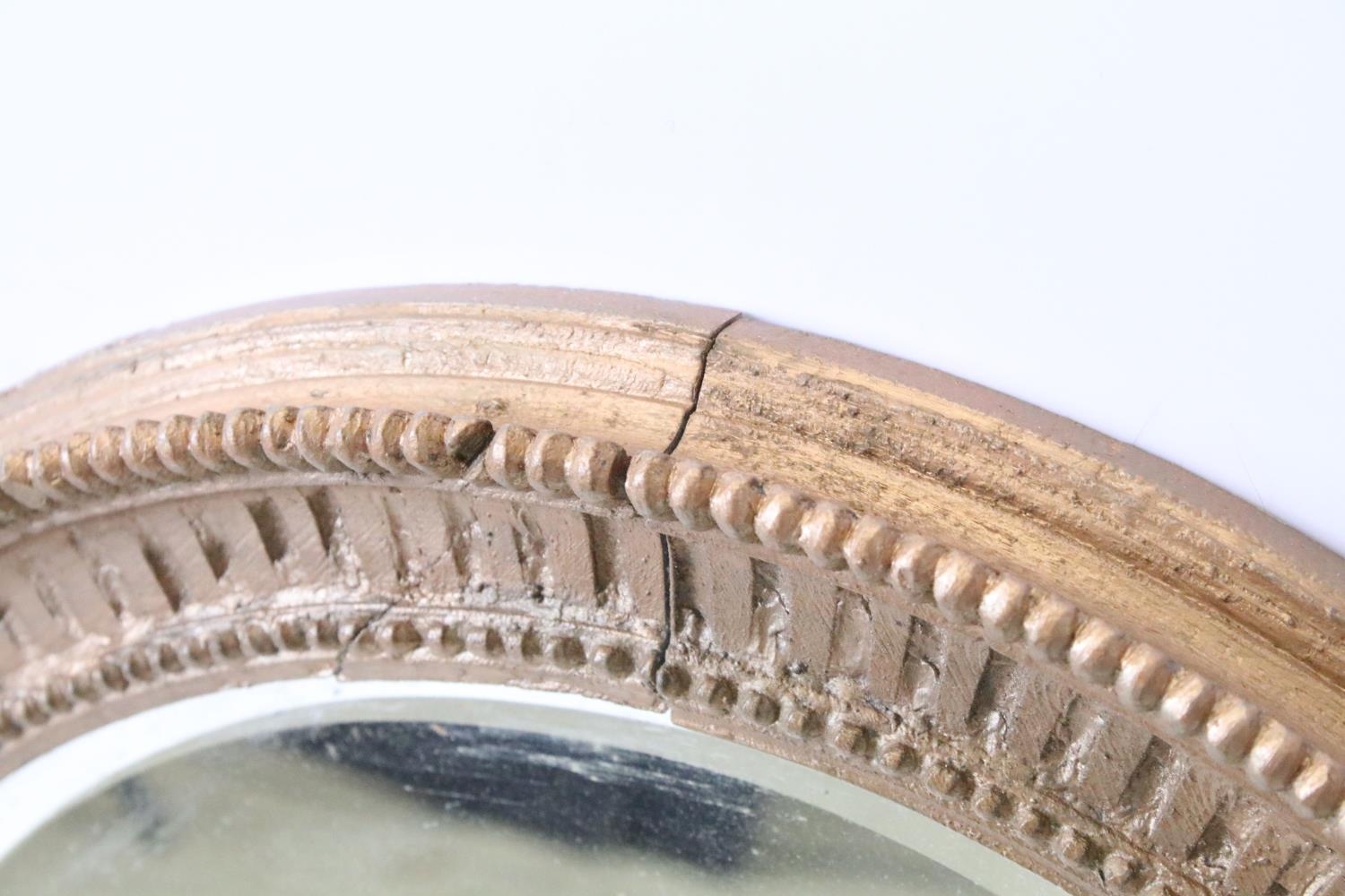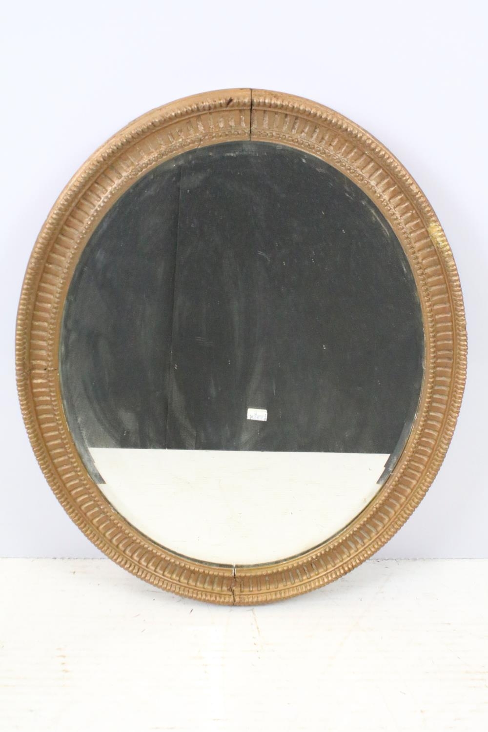 Bevelled glass mirror of oval form with oval painted plaster frame