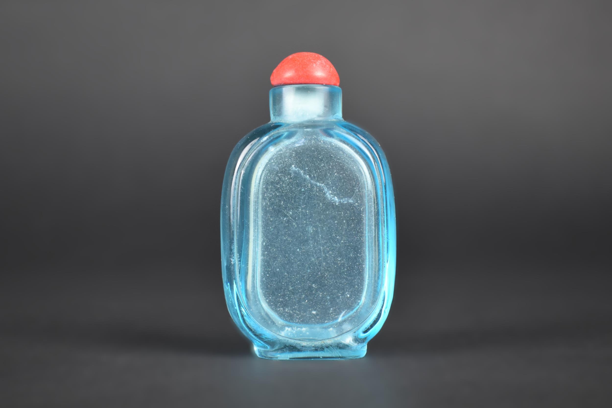 A Chinese Clear Blue Glass Snuff Bottle, with Stopper, 7cm High
