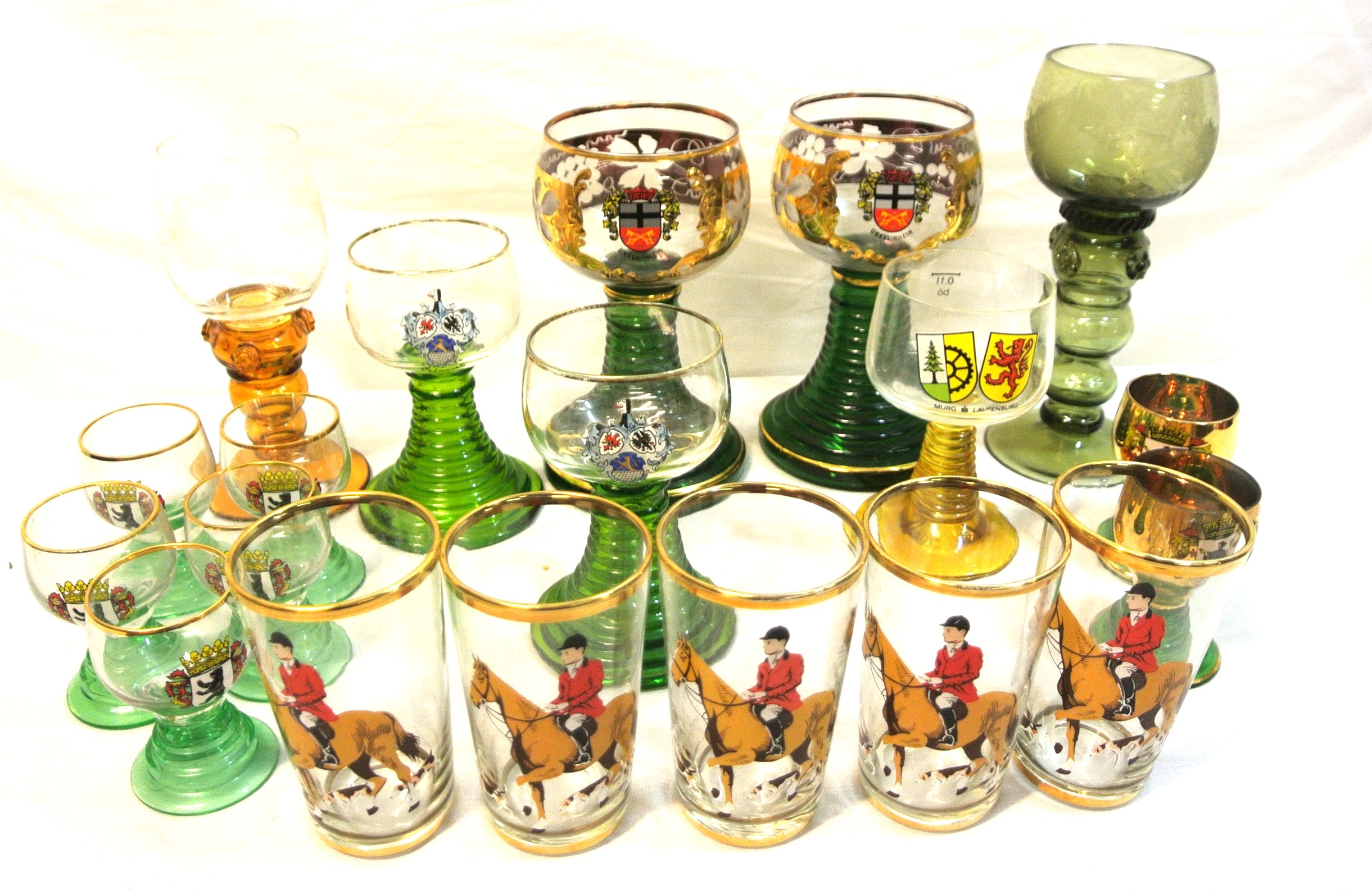 Lot of heraldic glassware, etc, in box