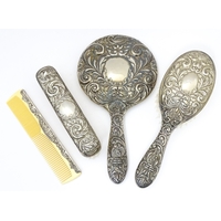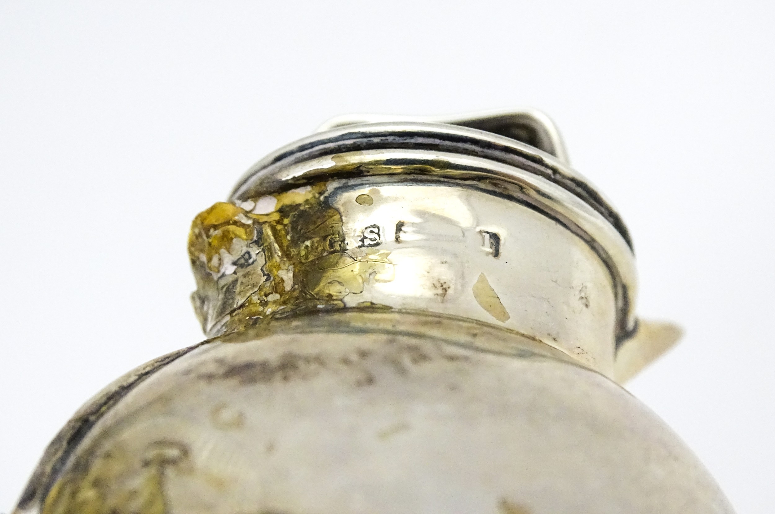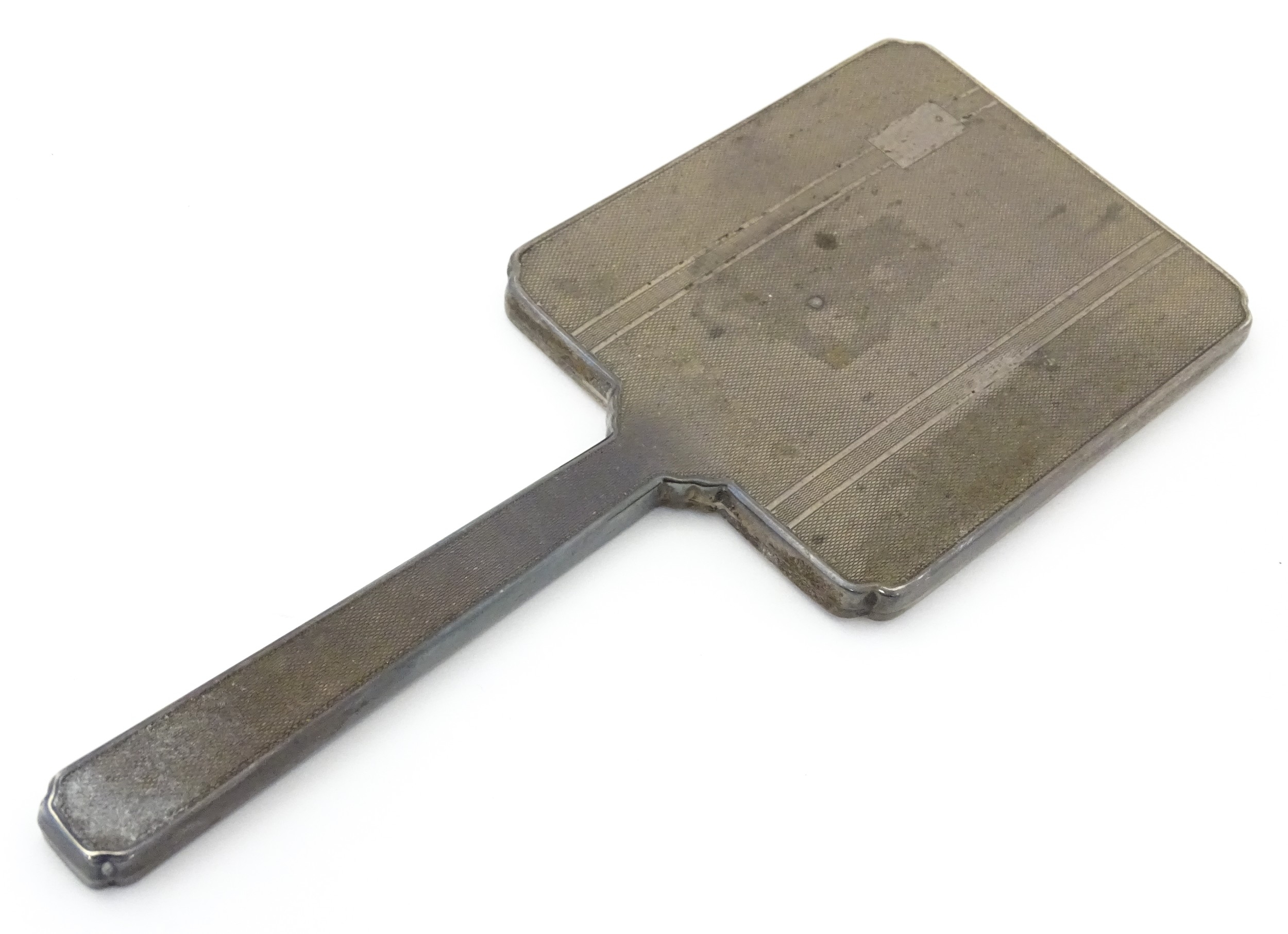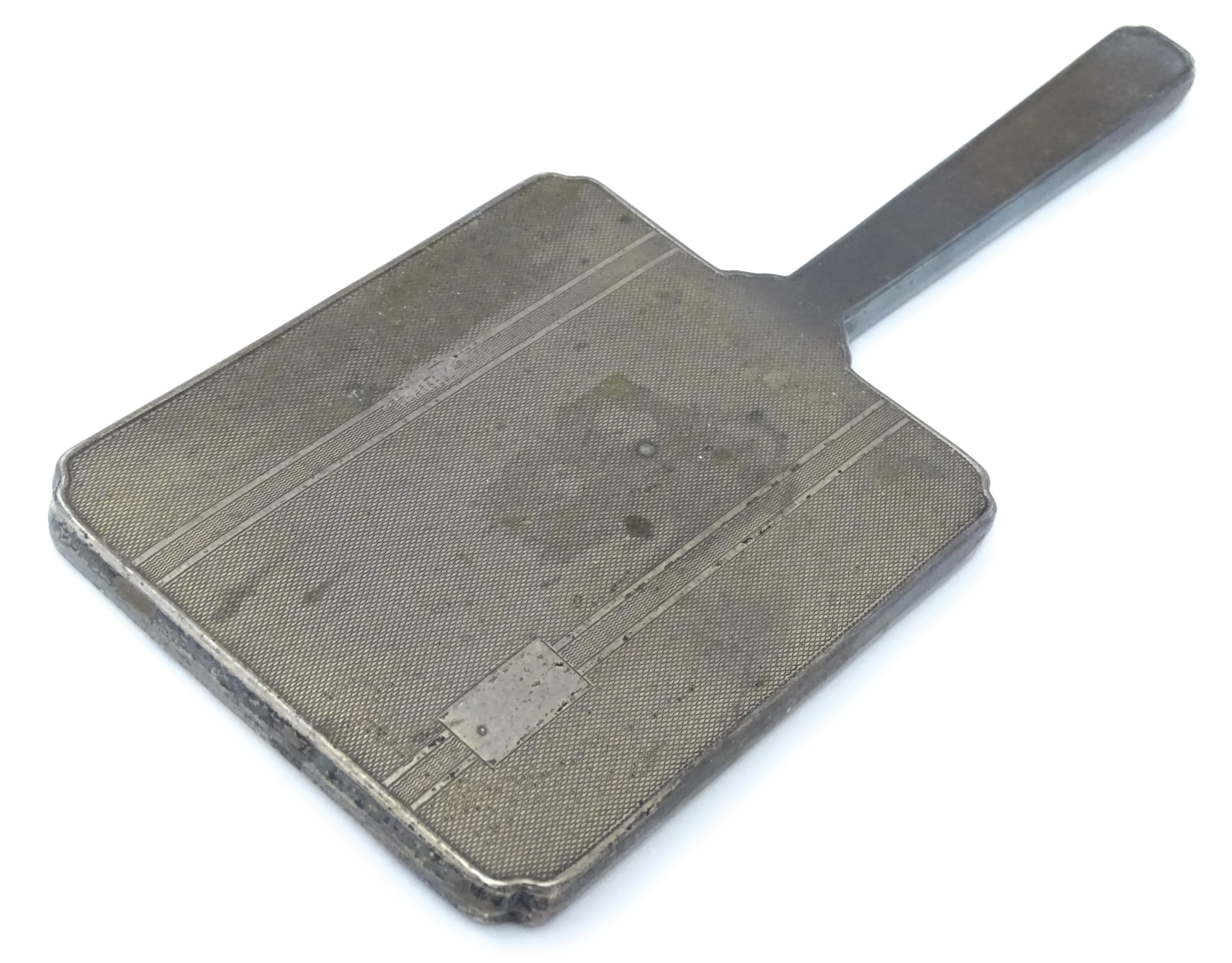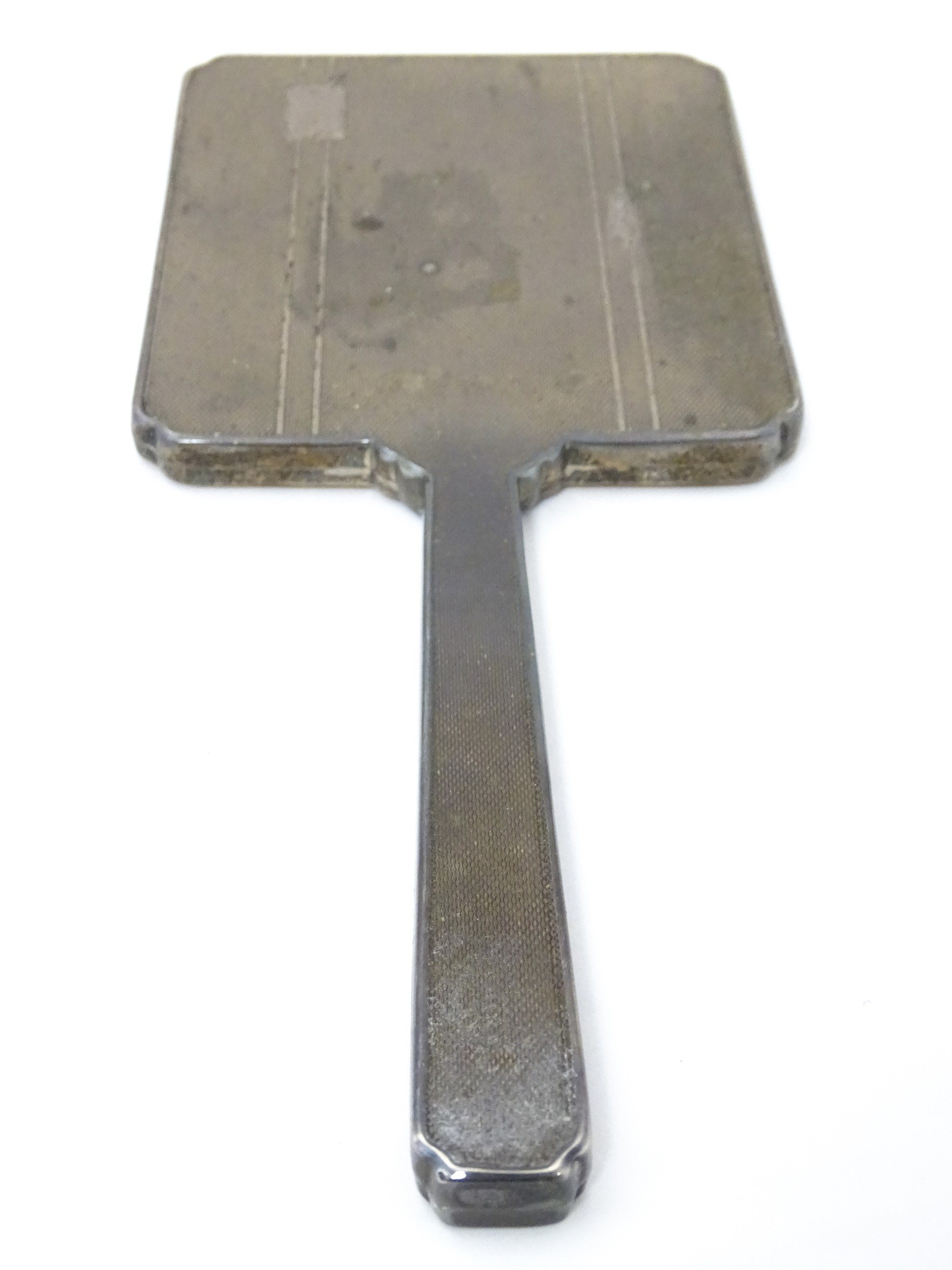 Assorted silver items to include a pair of spill vases hallmarked Birmingham 1900, a salt spoon, Jersey cream jug, and a silver handled mirror. Hand mirror approx. 9 3/4" long (5)