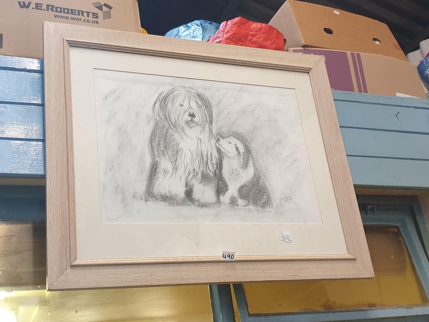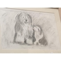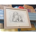 Jane Spence Signed Monochrome Pastel Picture of Old English Sheepdogs - approx 30" x 25".