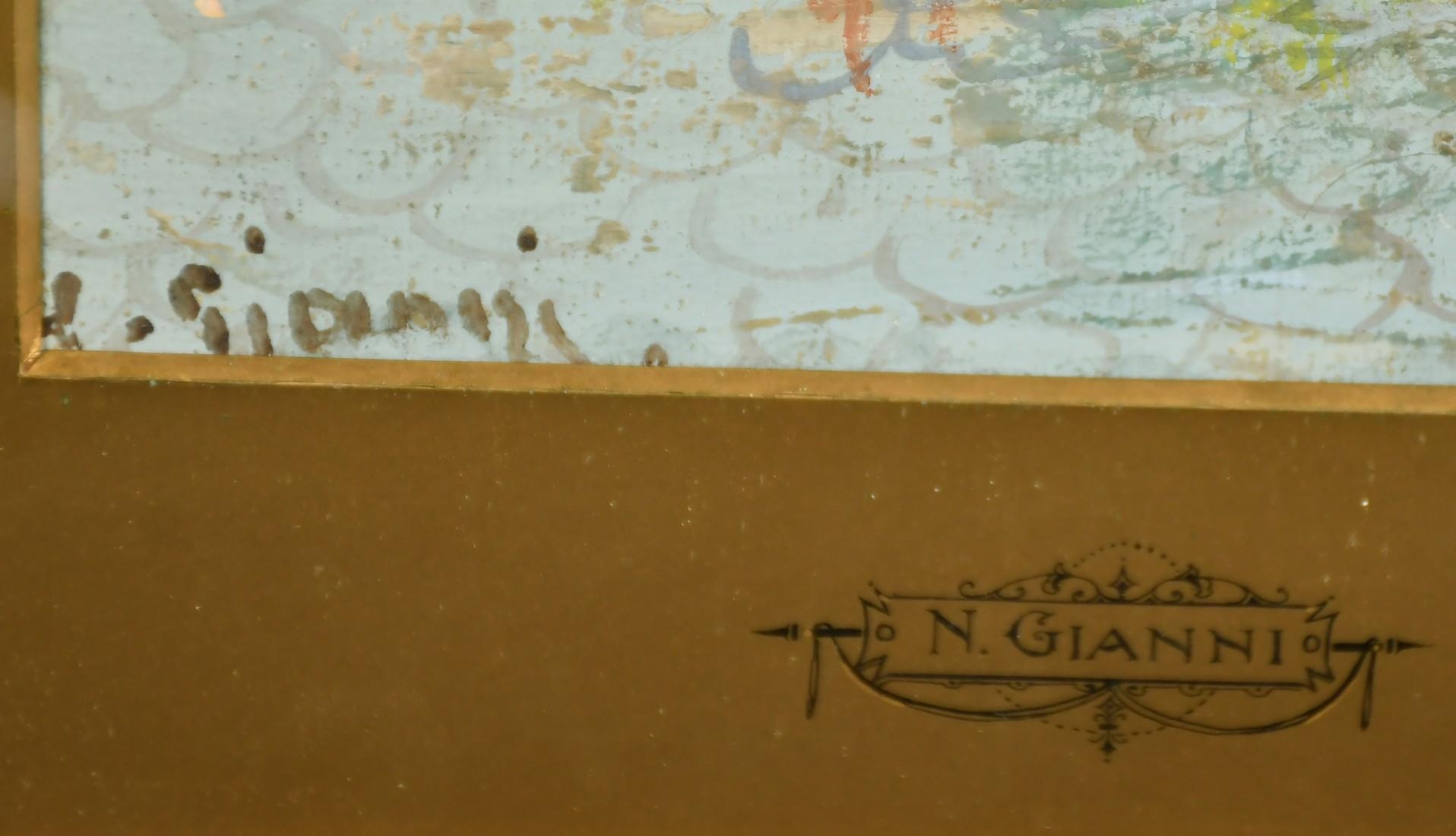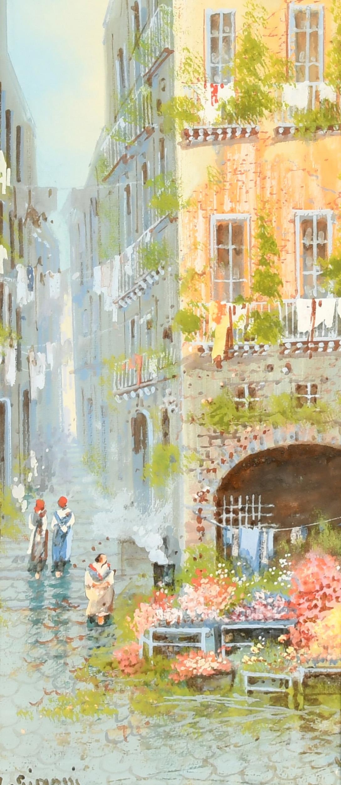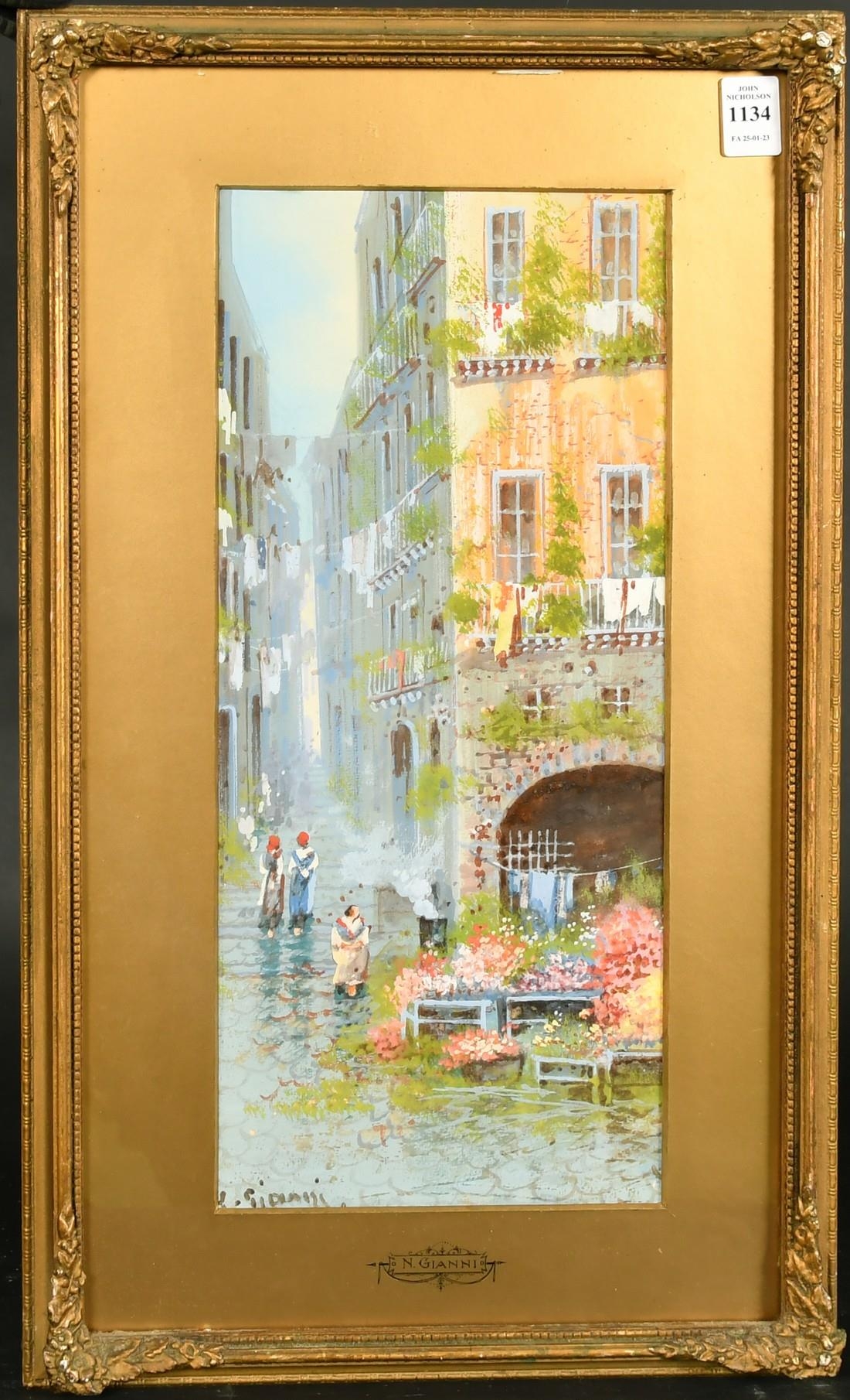 Yves Gianni (19/20th Century) Italian, 'The flower stall', watercolour/gouache, signed, 15.75" x 6.75", (40x17cm). (The inscription N. Gianni on mount is inaccurate).