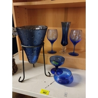 A matching pair of wicker globe lightshades and a collection of four tins