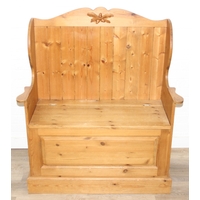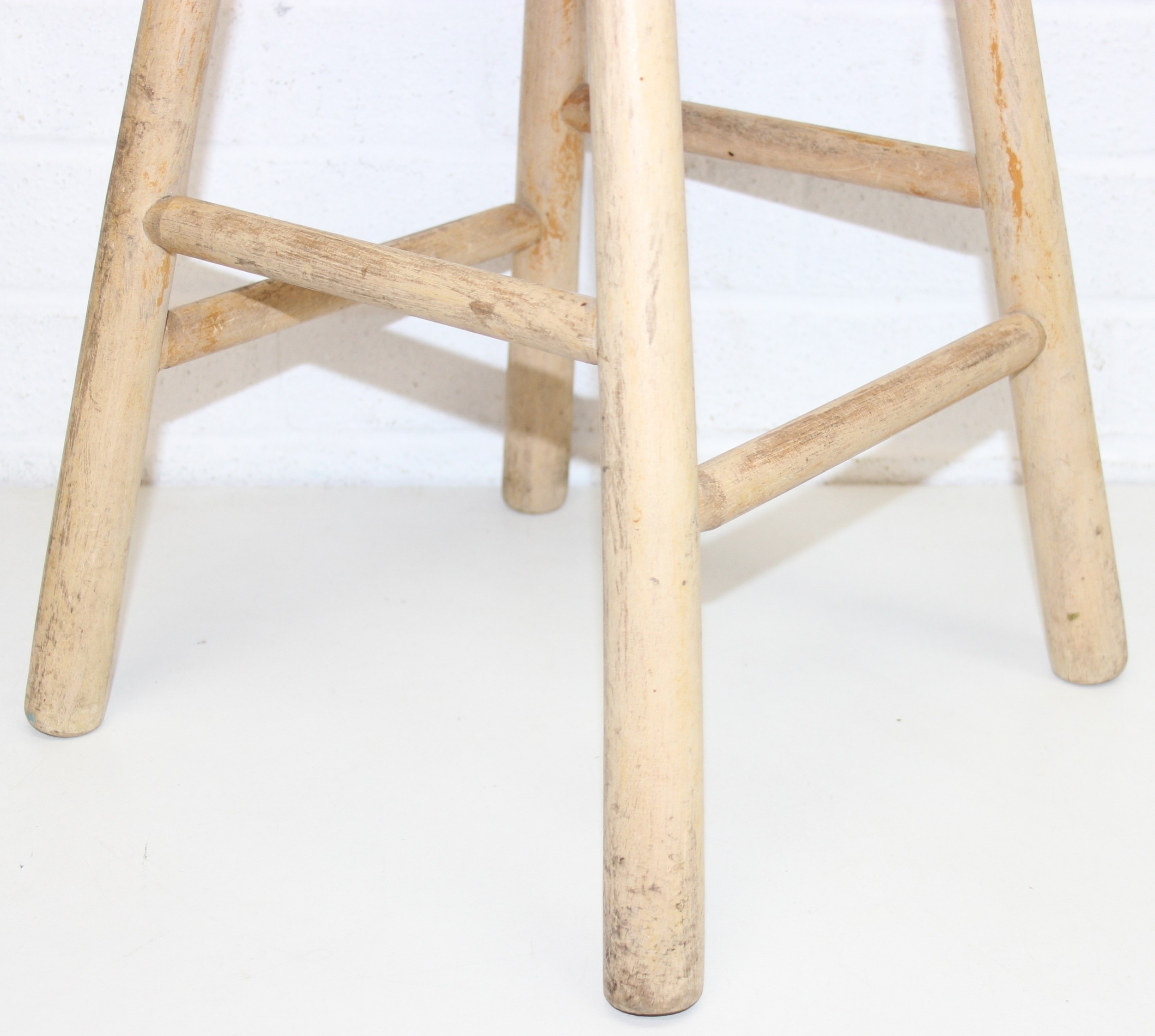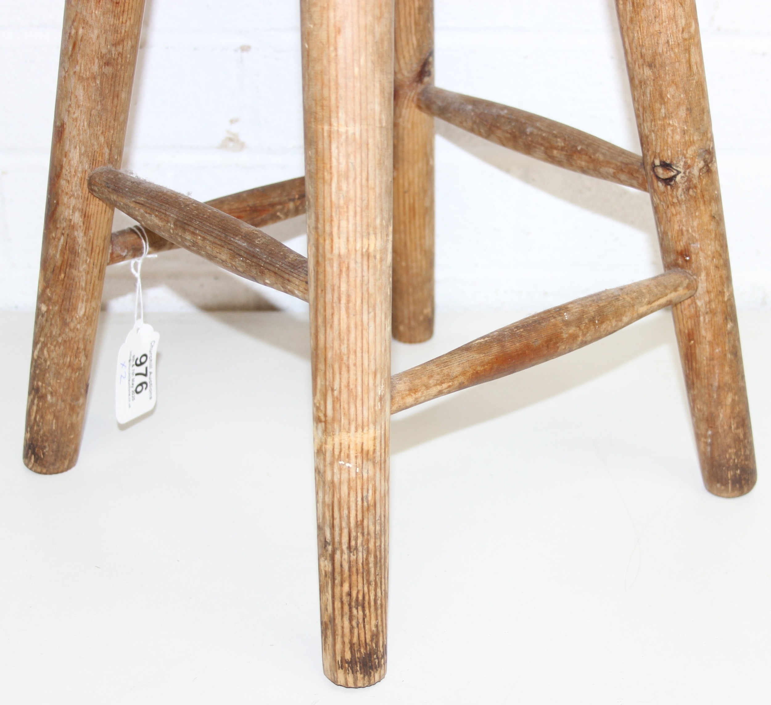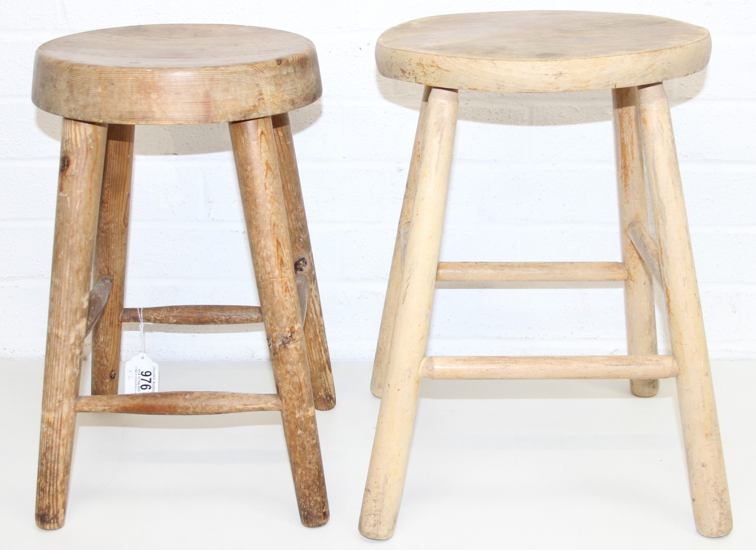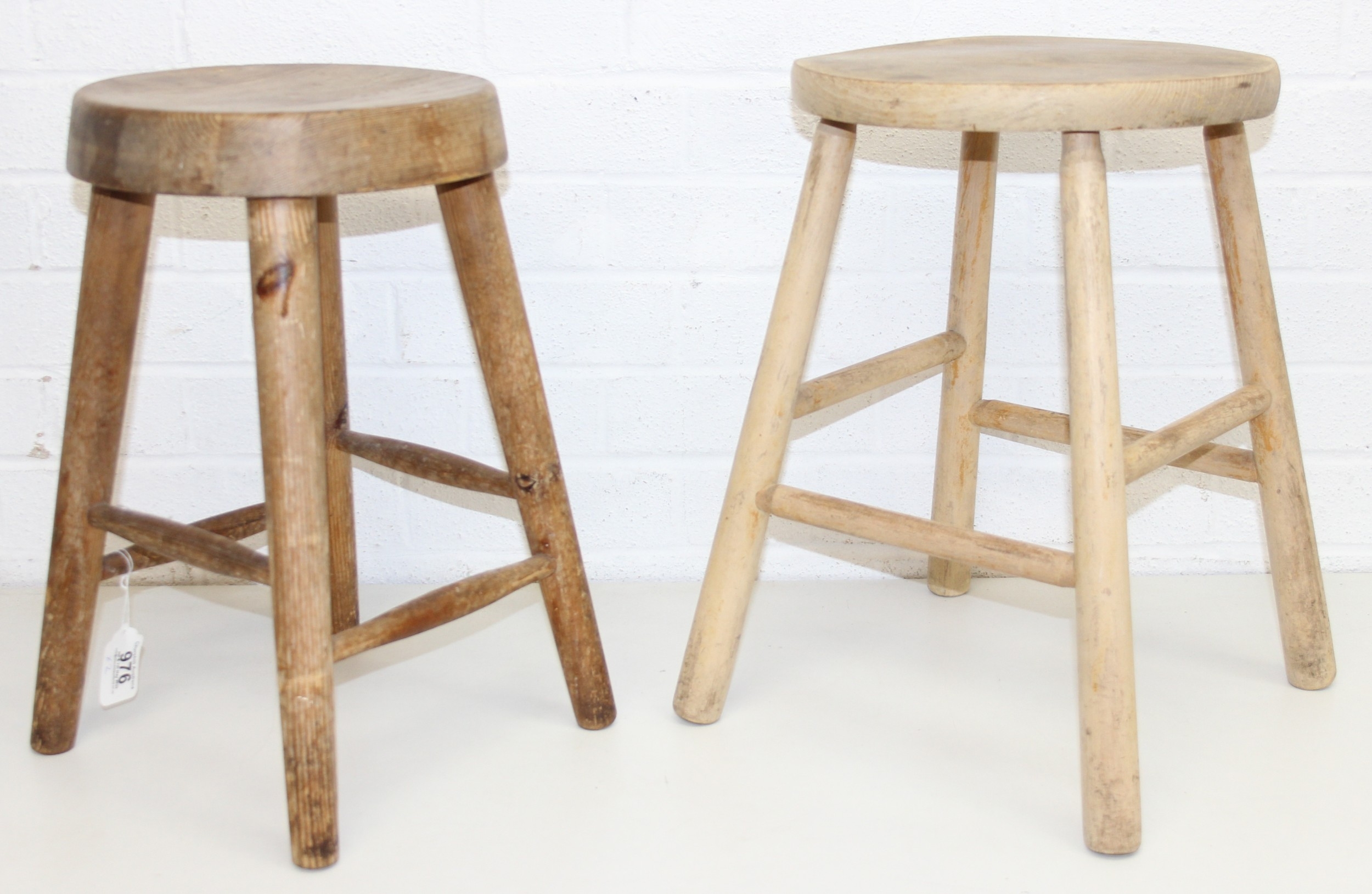 Two rustic pine low stools, each 46cm tall