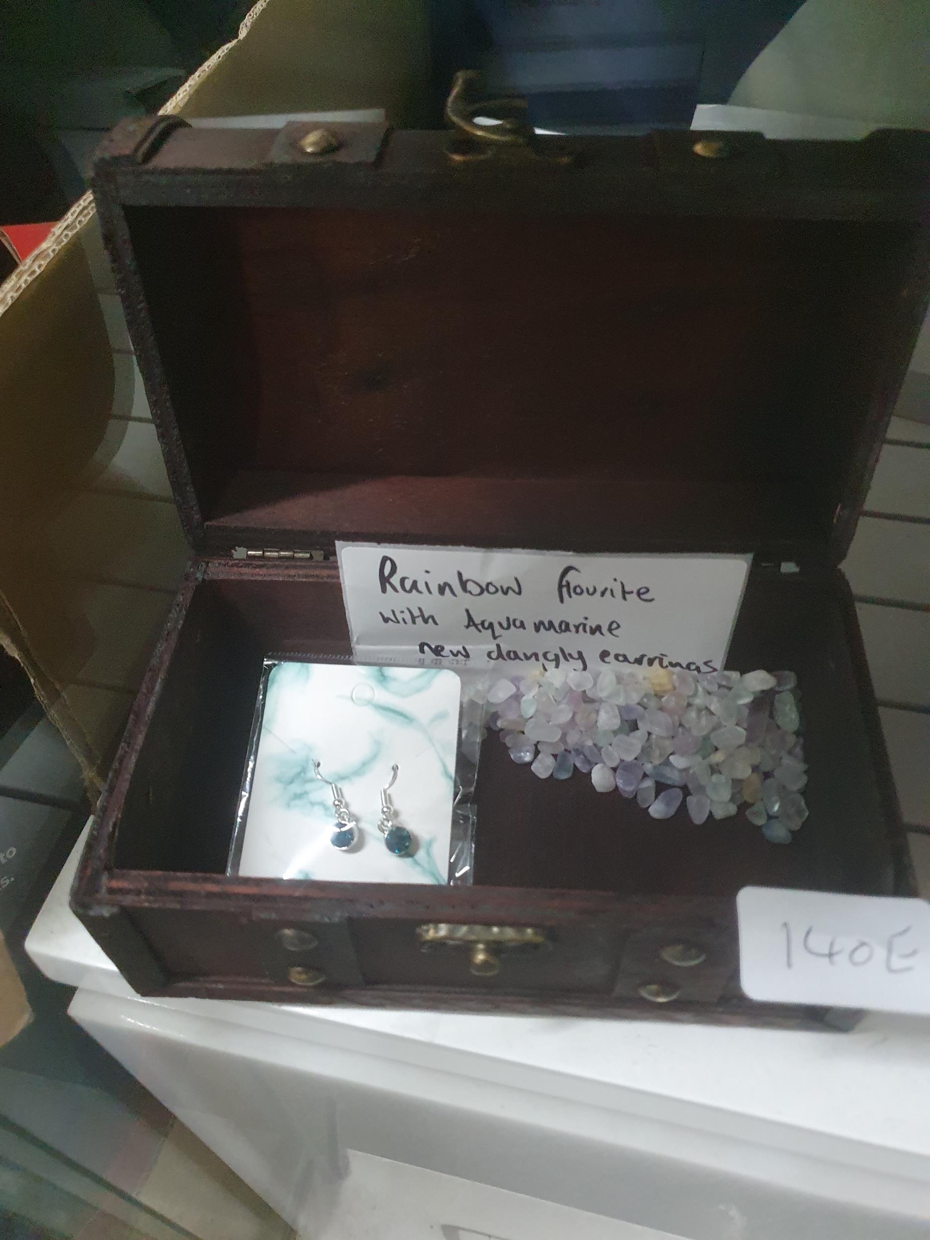 rainbow fluorite with aquamarine new dangly earrings