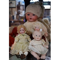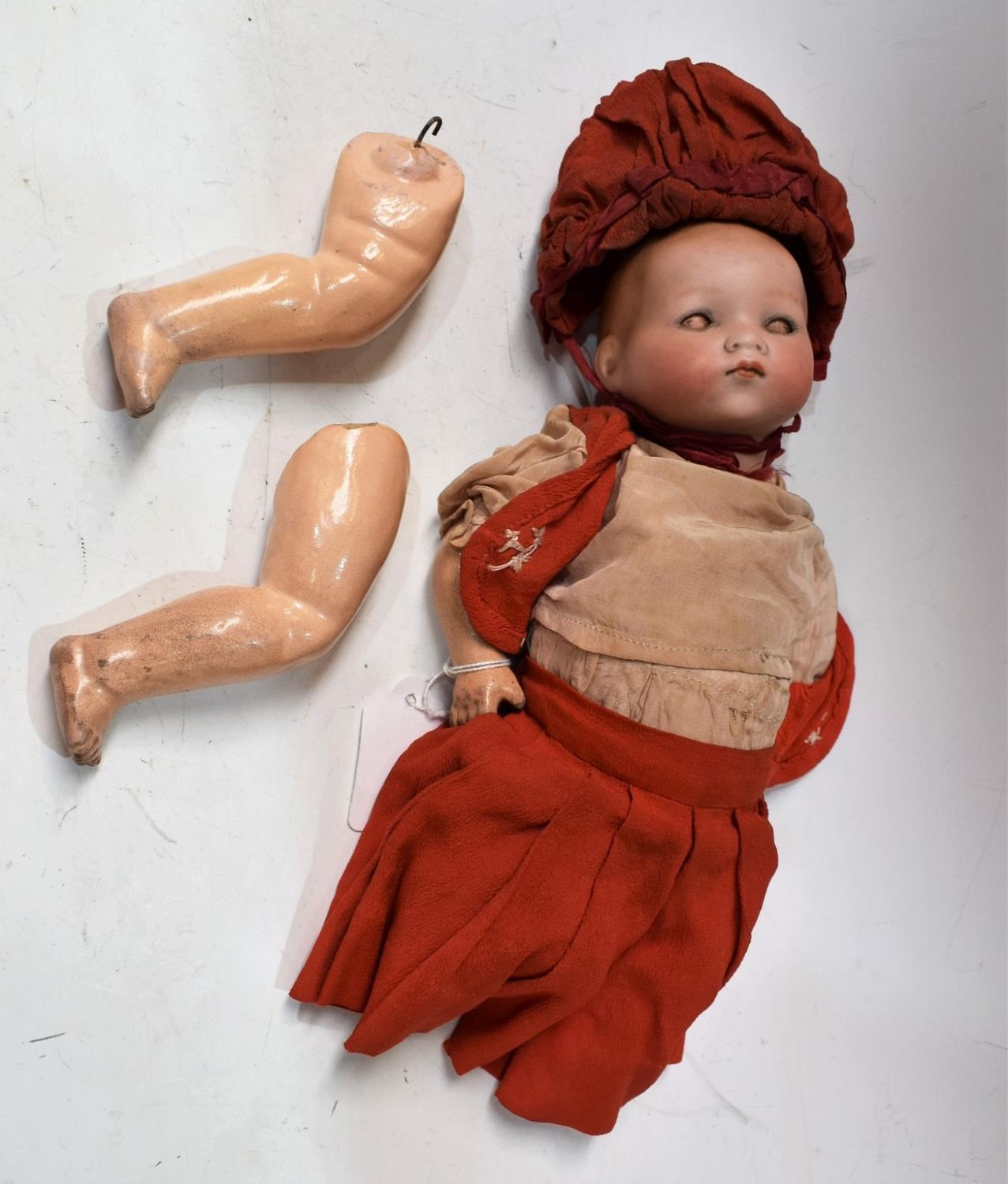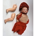An Armand Marseille baby doll, sleeping brown eyes, closed mouth, composite jointed body, 30cm tall