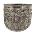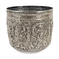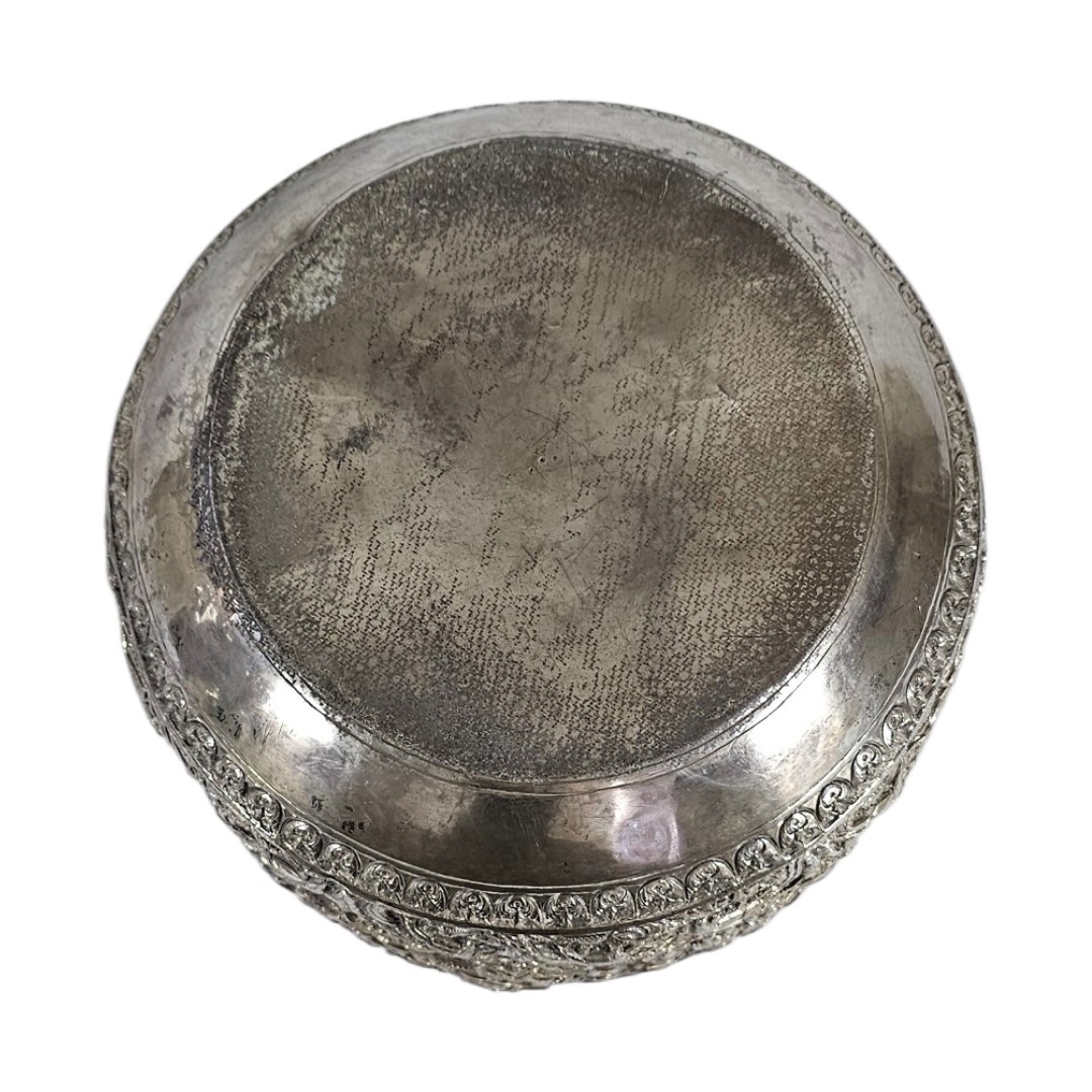 A LARGE LATE 19TH CENTURY BURMESE SILVER REPOUSSÉ BOWL
