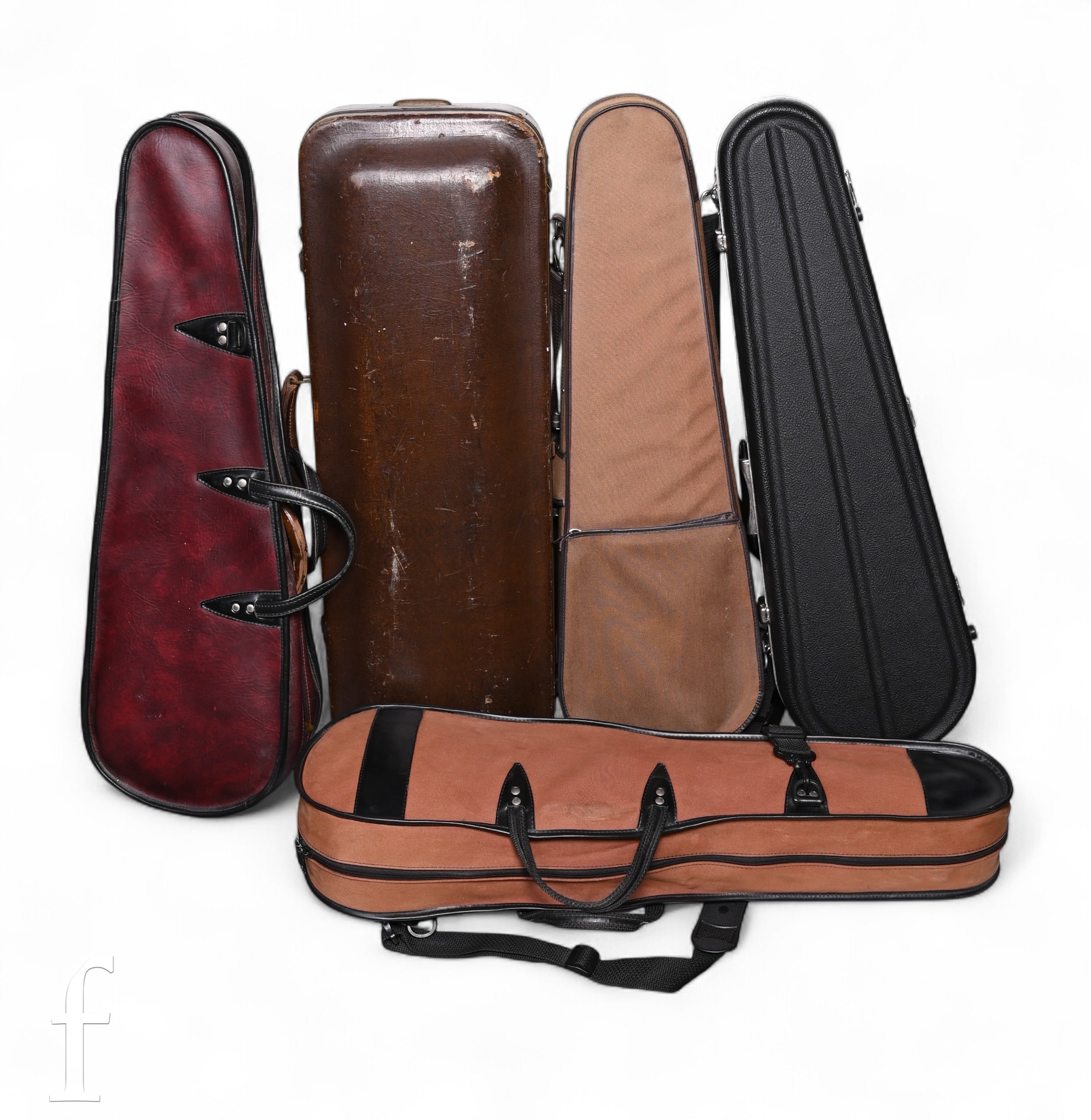 Five various empty violin cases. (5)