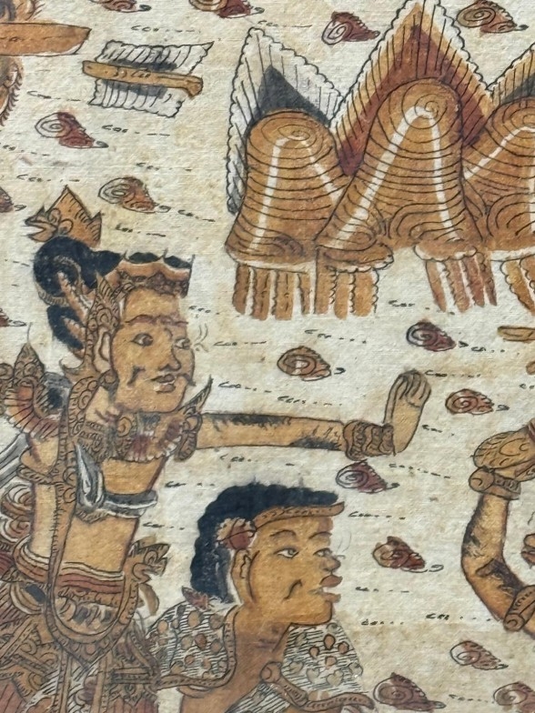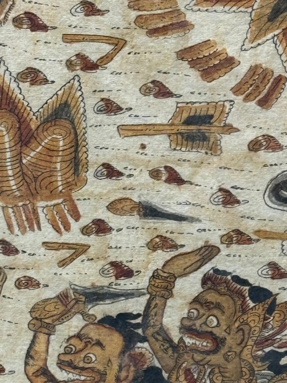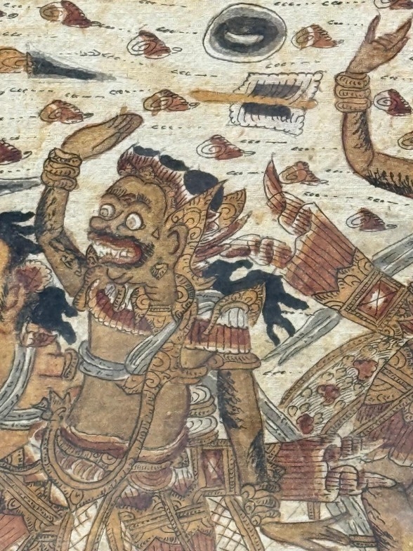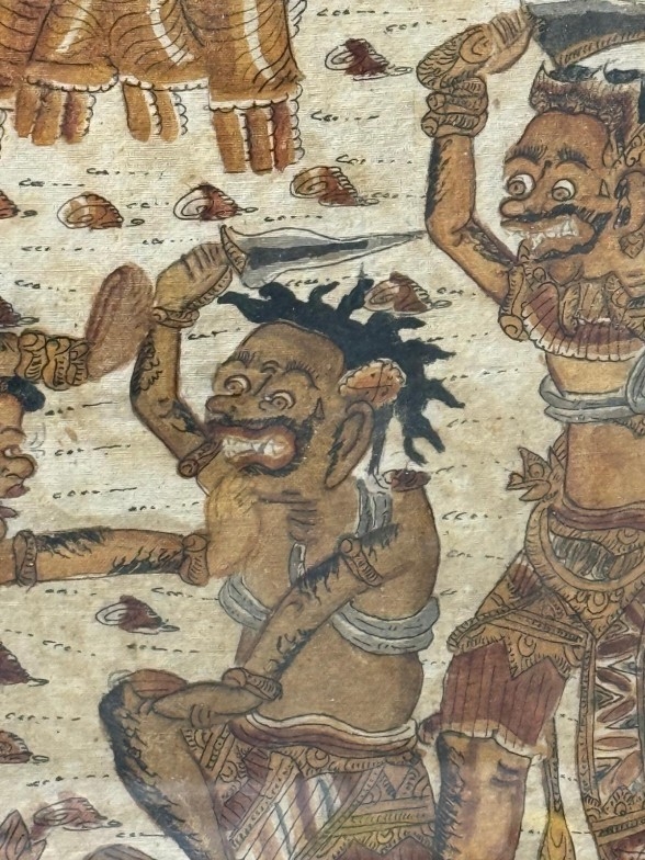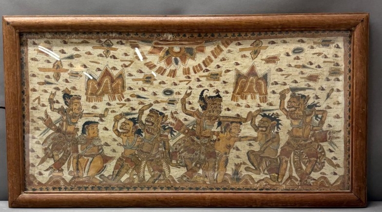 A Balinese Kamasan-style war painting, oil textile 85cm x 48cm