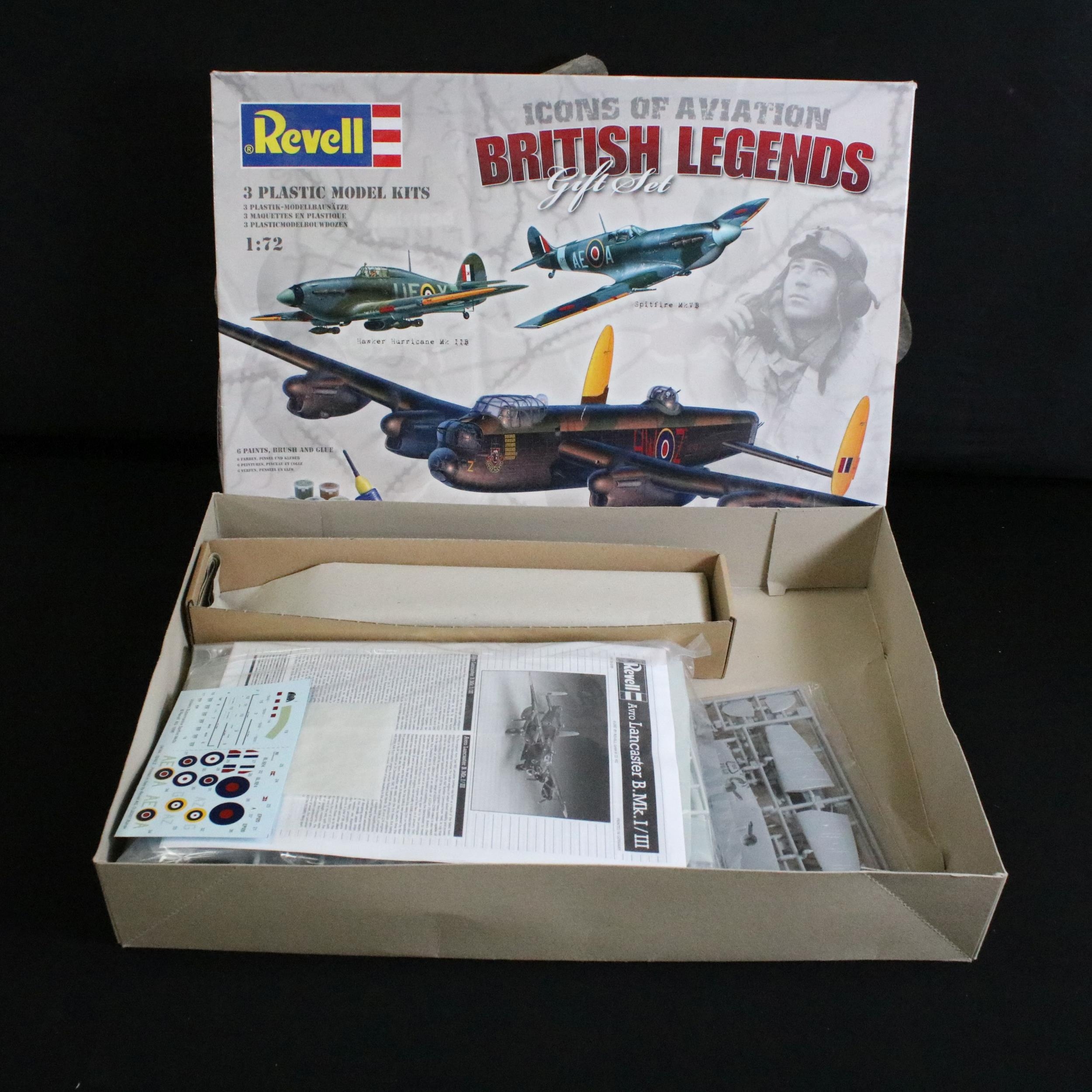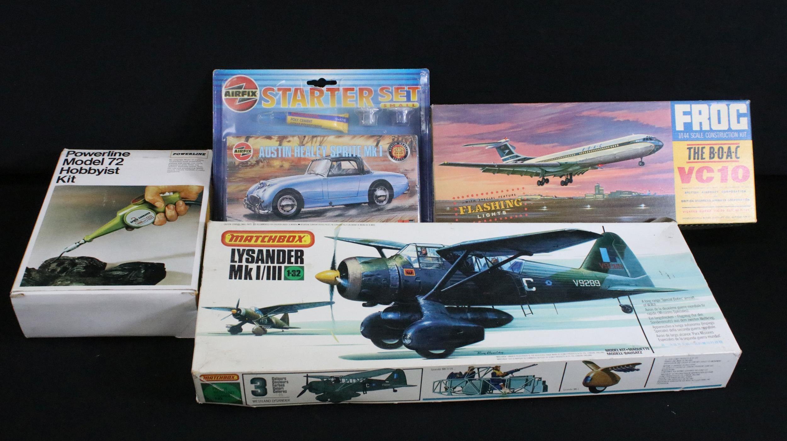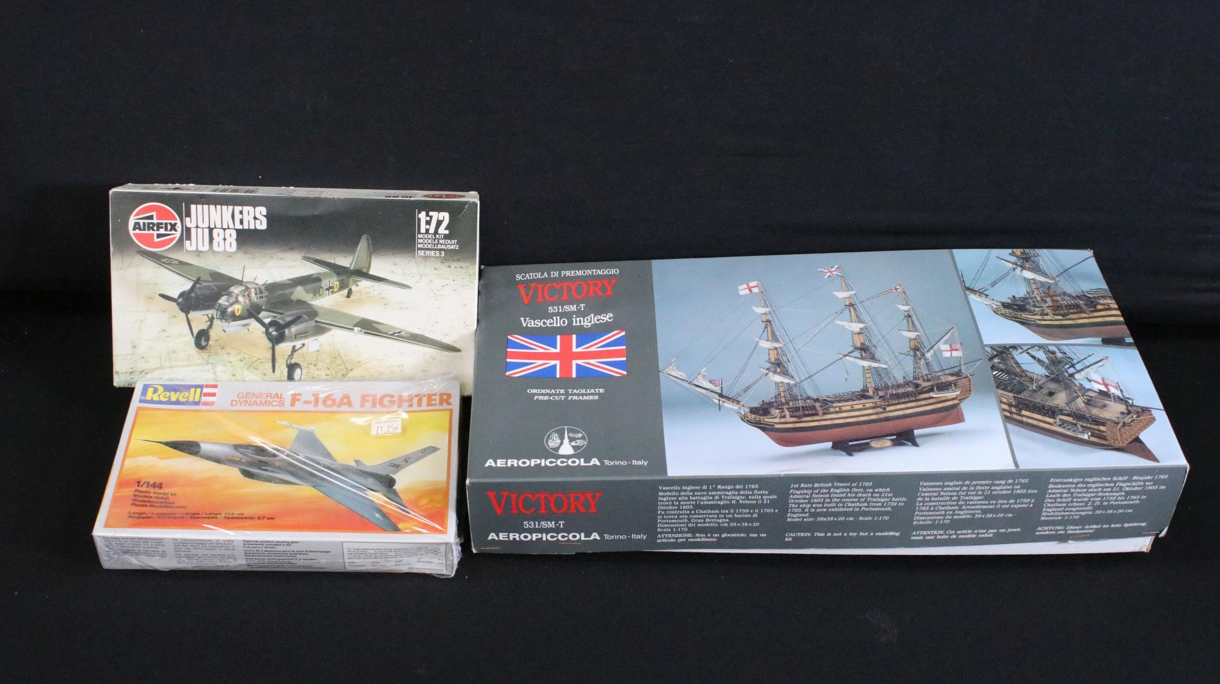 Ten boxed plastic model kits to include Titanic Historical Society The Late Great Titanic, 1/350 Gunze Sangyo RMS Lusitania, 1/72 Revell Icons Of Aviation British Legends Gift Set, Revell 1/144 General Dynamics F-16A Fighter, 1/144 Frog The BOAC Vickers Super VC10, etc, all appearing complete and ex, boxes vg