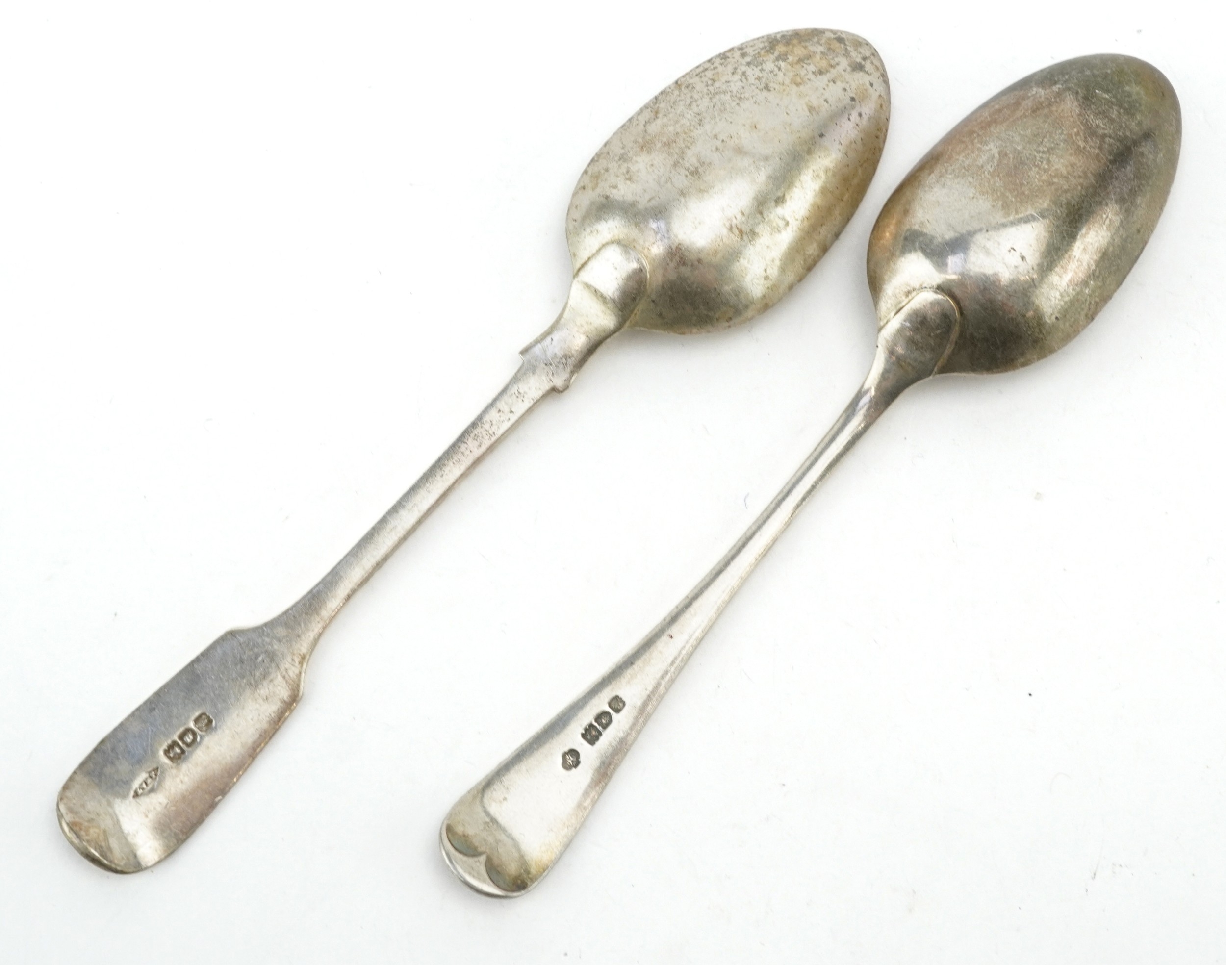 Two George V silver spoons, the largest 18cm in length, total 100.0g.