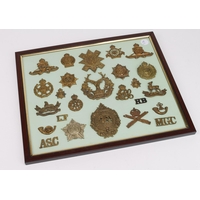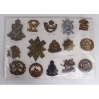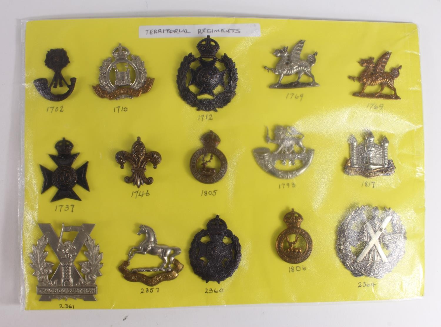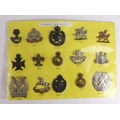 Cap Badges - yellow card with Territorial Cap badges, with K&K numbers. (15)