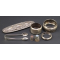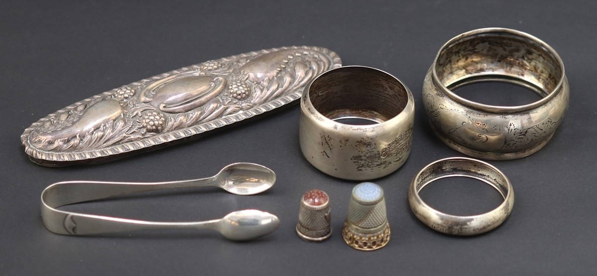 Collection of hallmarked silver to include sugar nips, napkin rings and thimble etc - Approx gross weight 72g