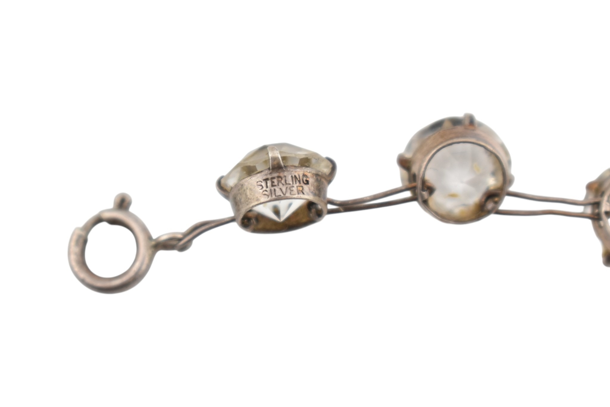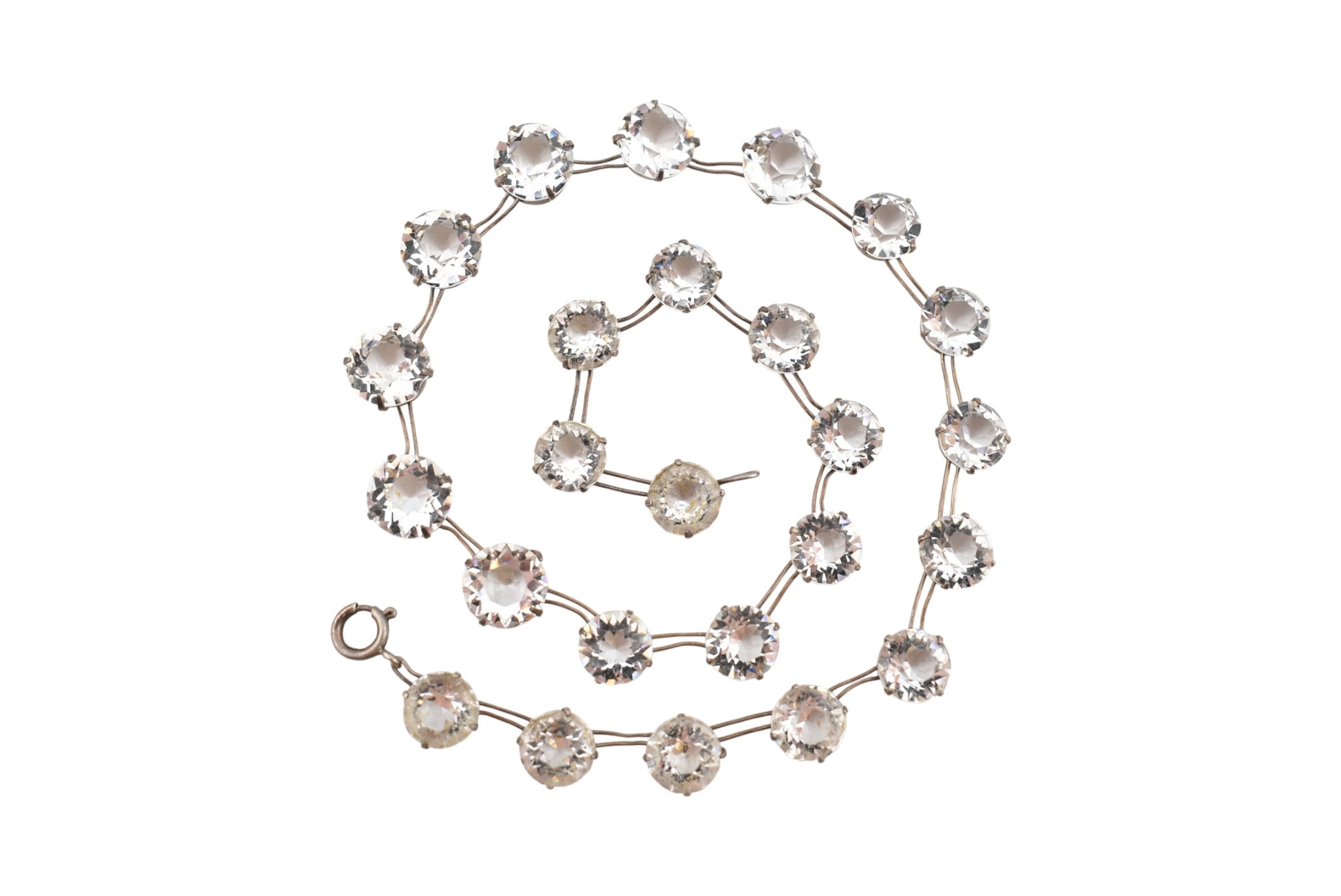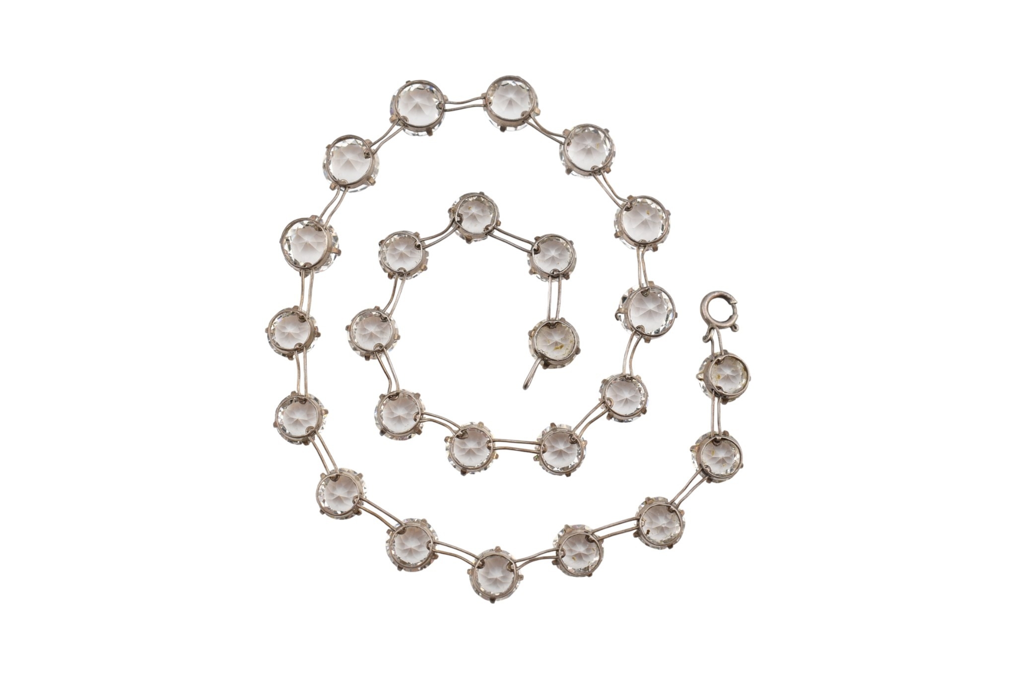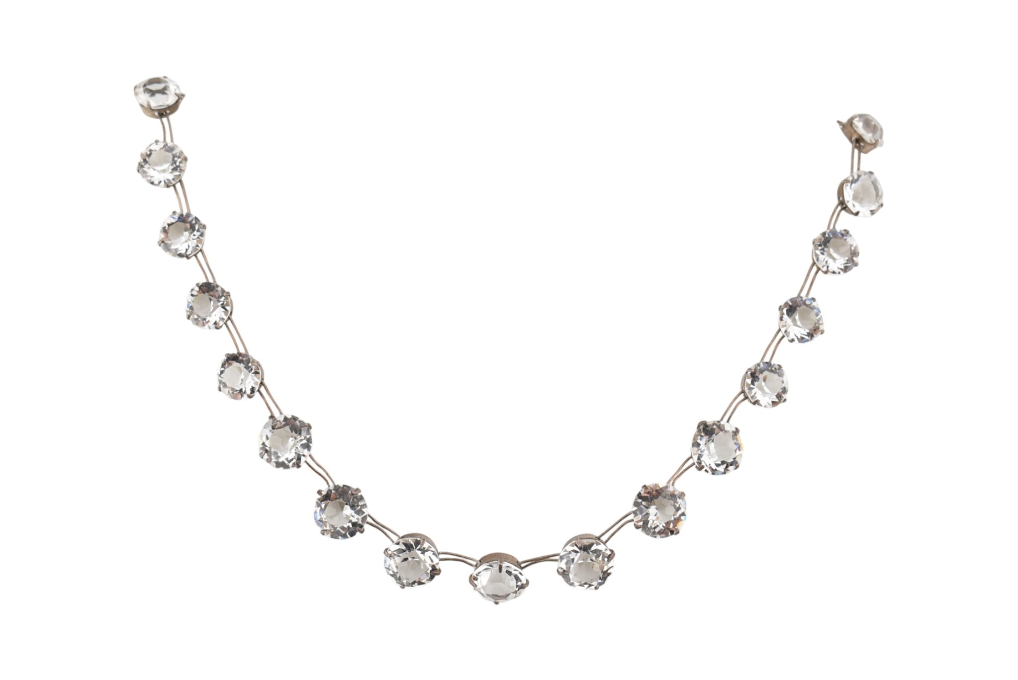 An early 20th century silver and rhinestone riviere necklace. The necklace stamped 'pat app for' sterling silver. Weight 20.7g. Measures 36cm