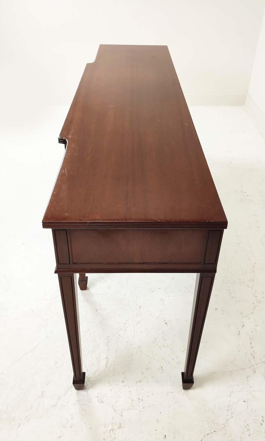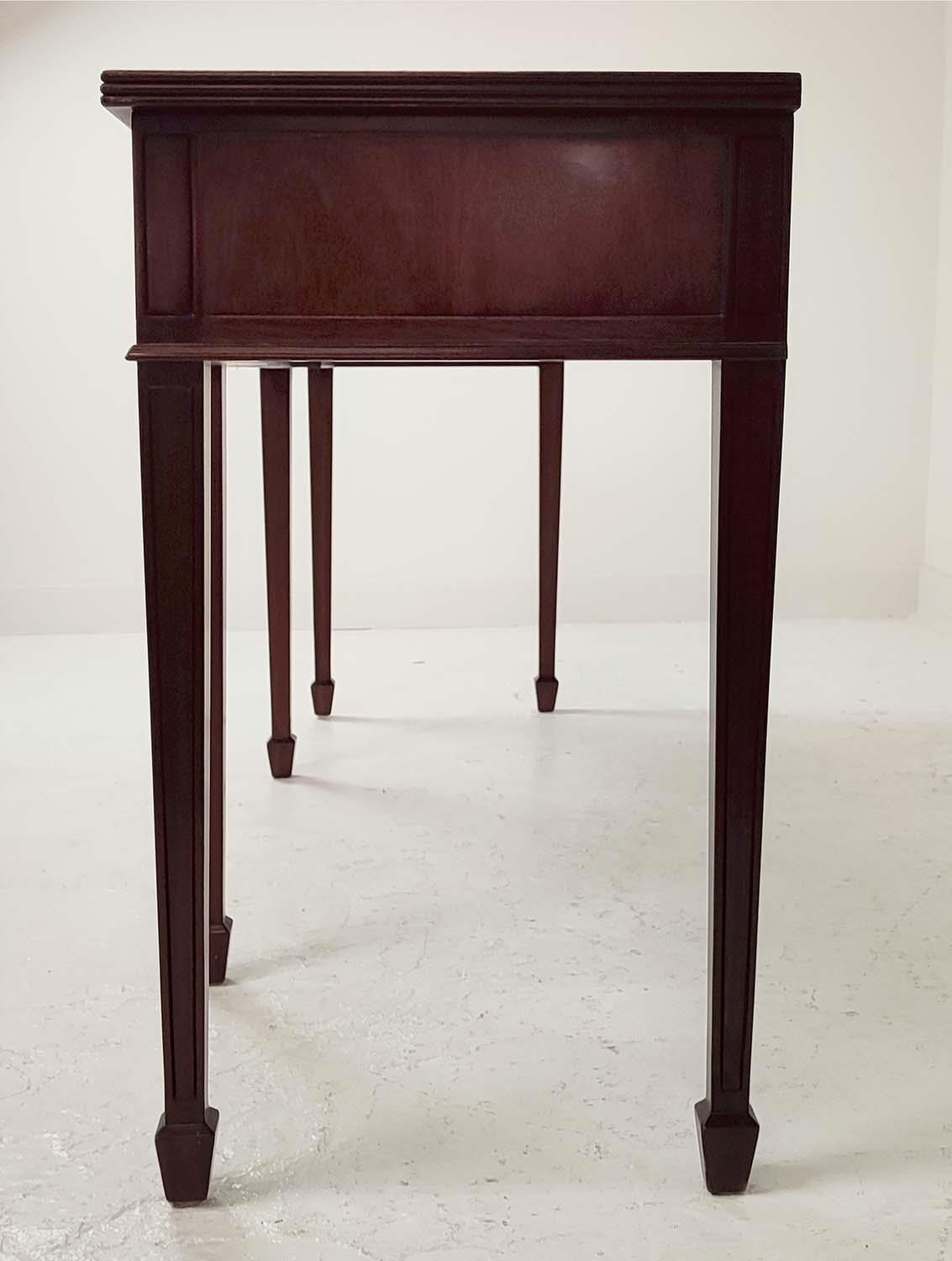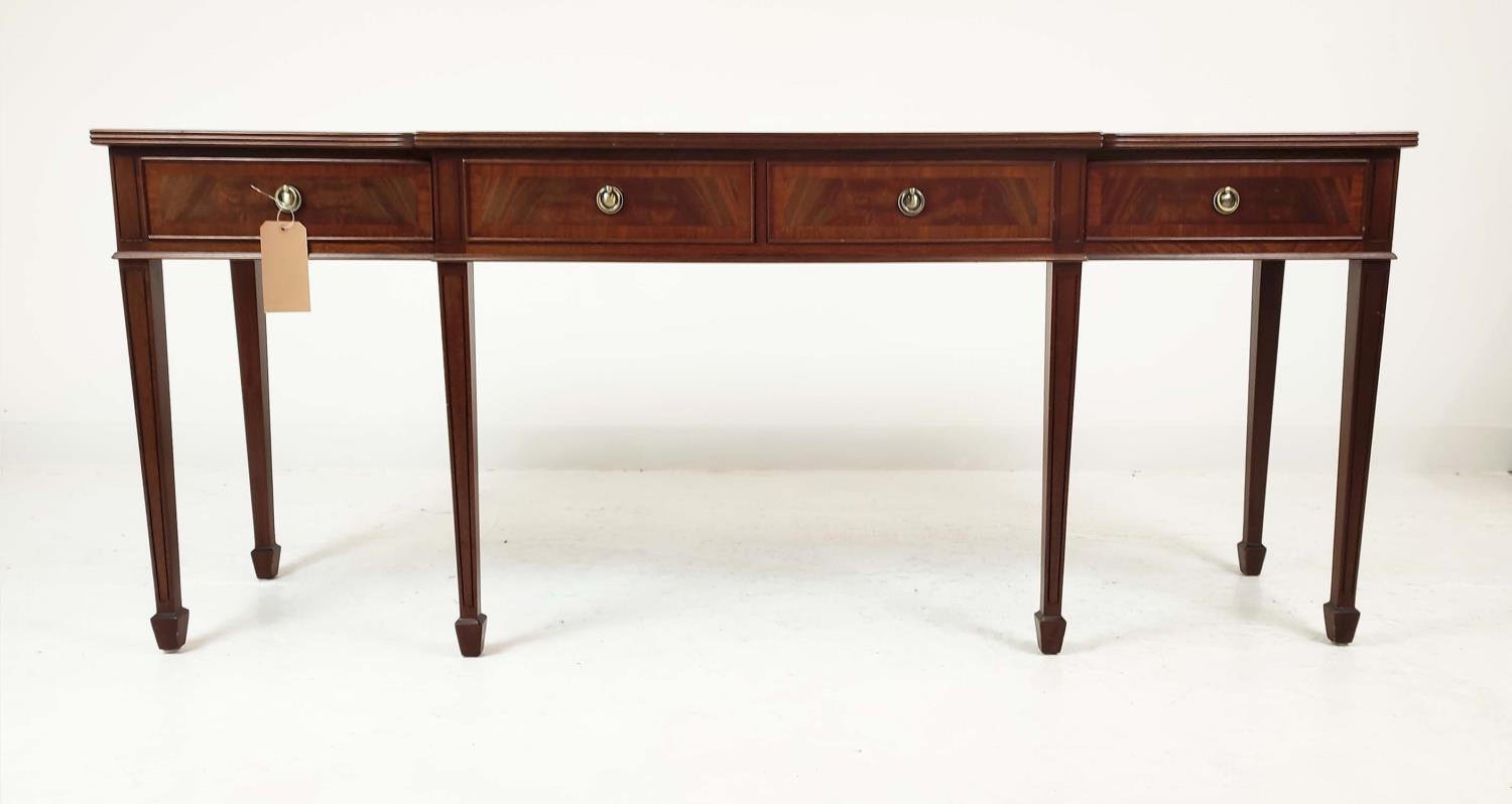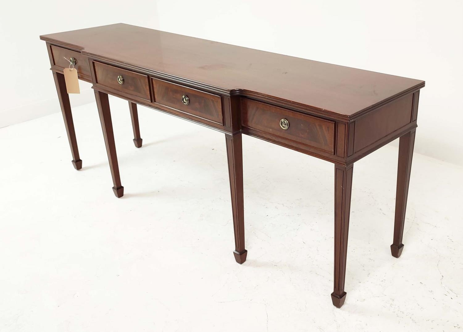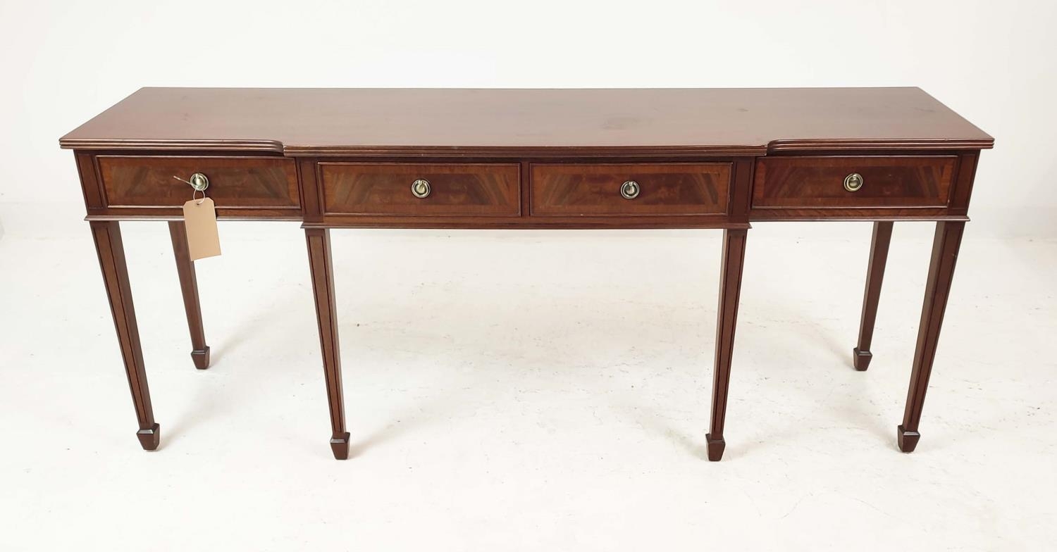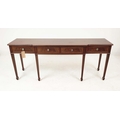 HALL TABLE, George III design mahogany with four drawers, shaped top and tapered supports, 81cm H x 197cm x 50cm.