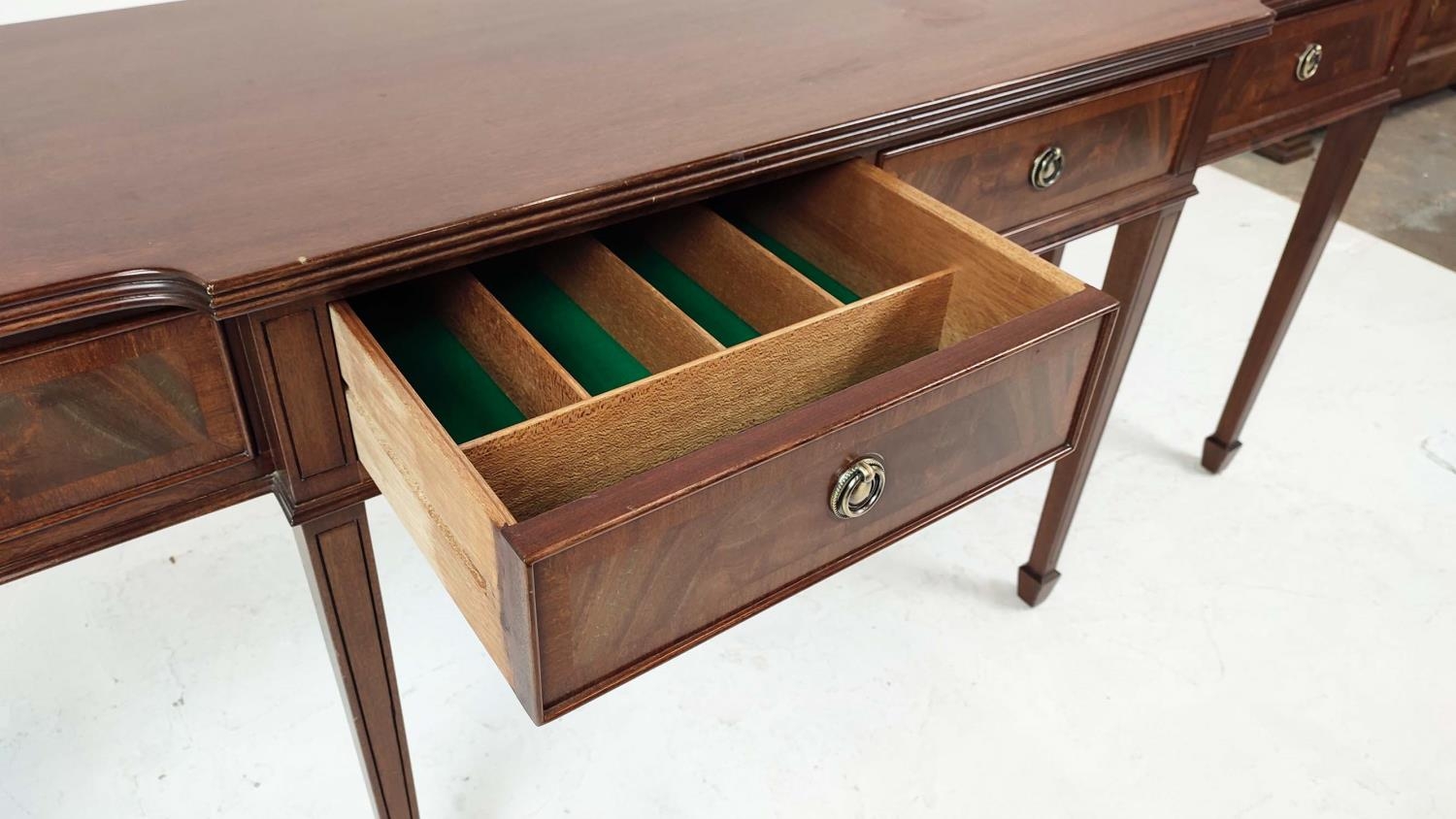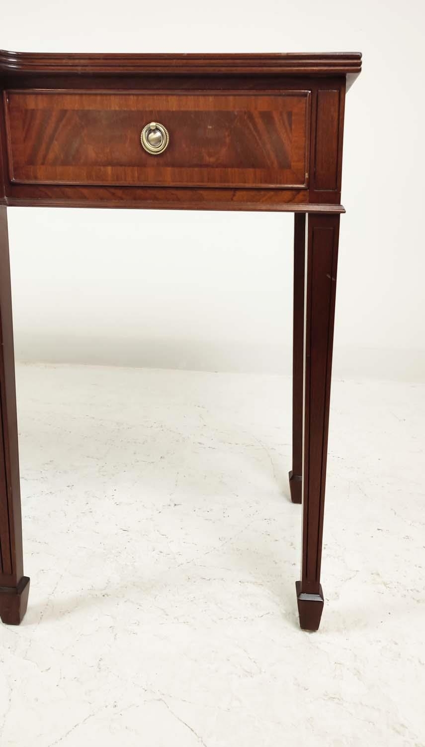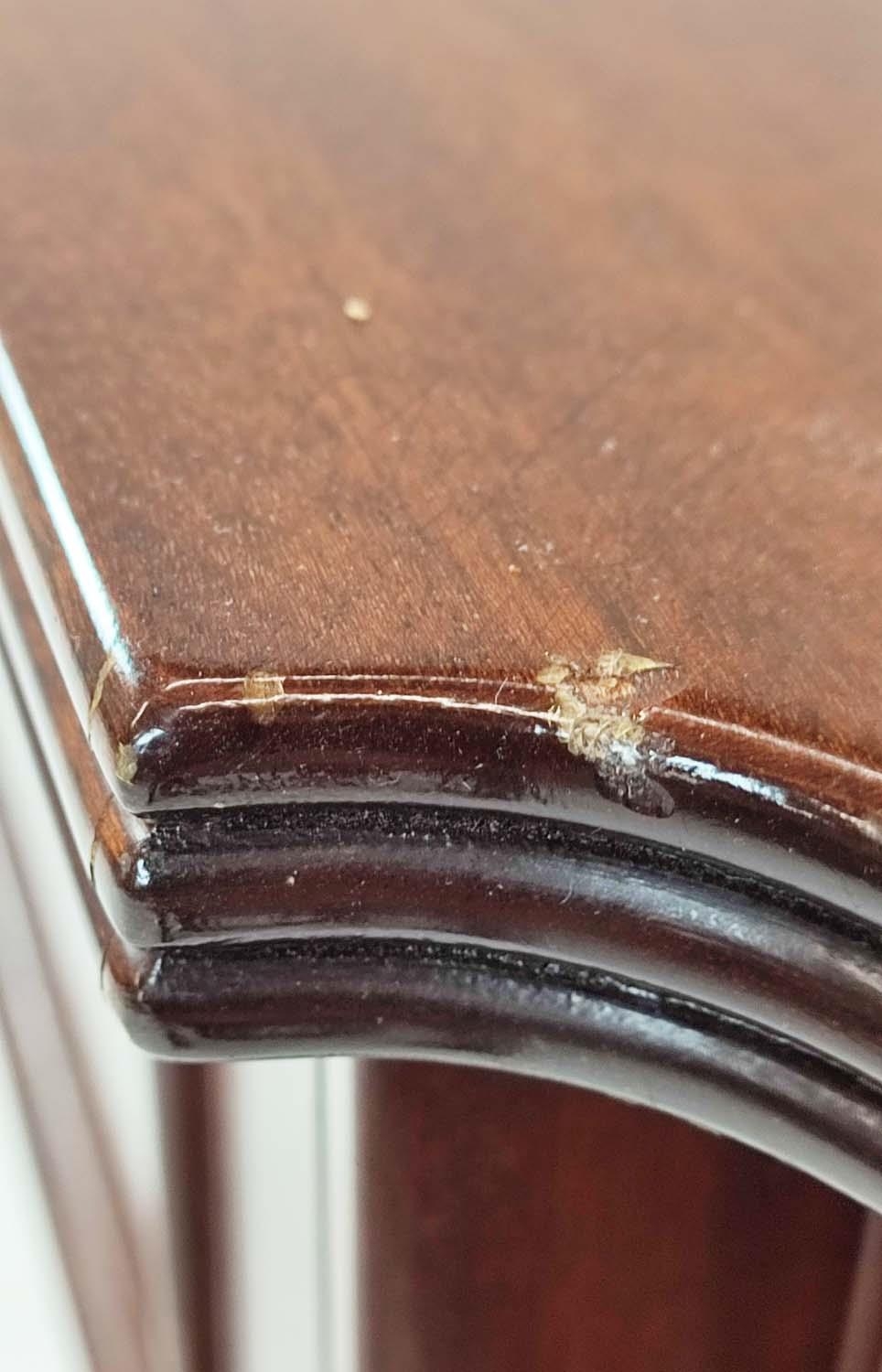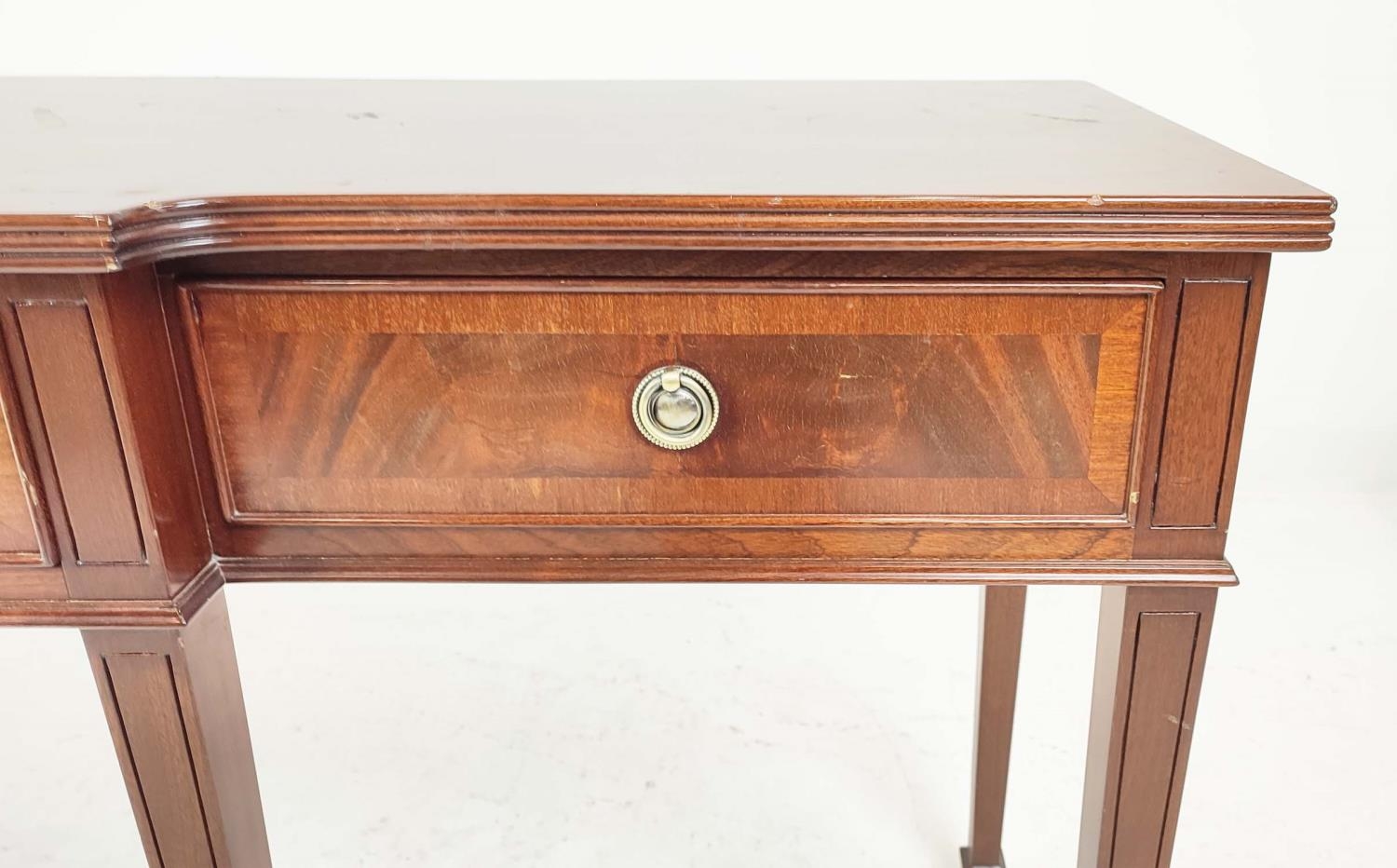 HALL TABLE, George III design mahogany with four drawers, shaped top and tapered supports, 81cm H x 197cm x 50cm.