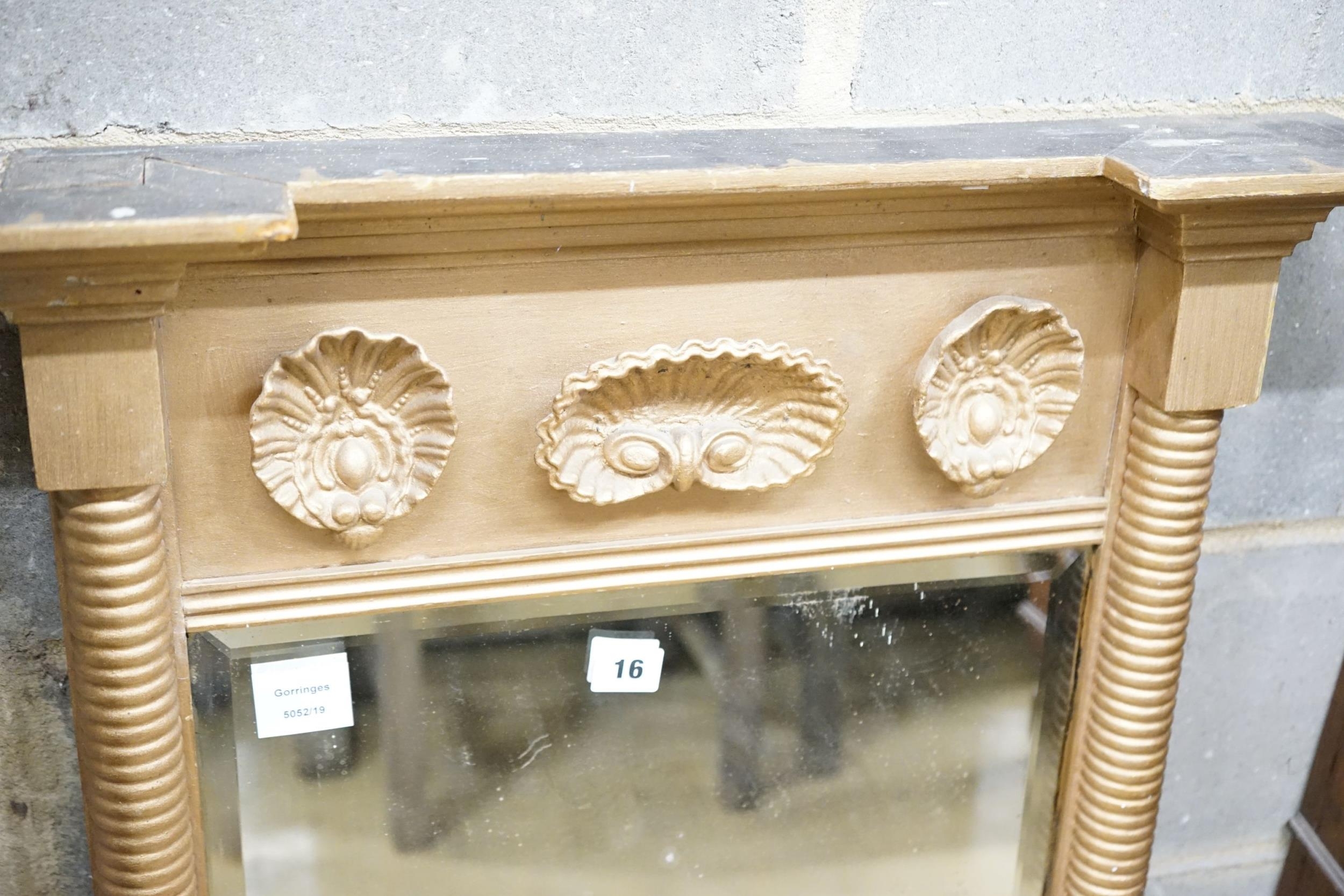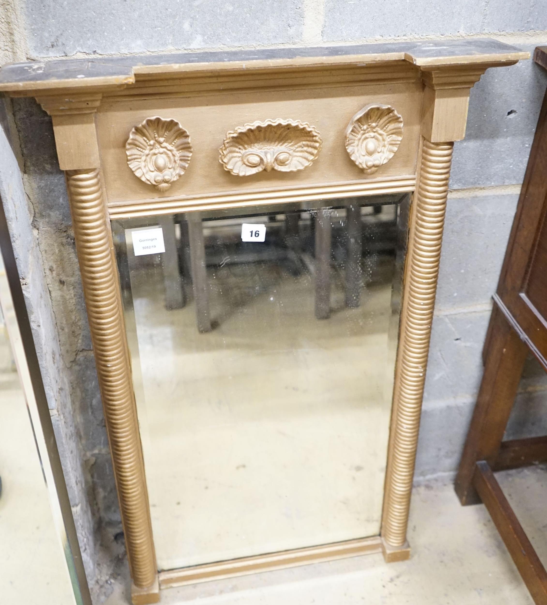 A Regency giltwood and gesso shell-moulded pier glass, width 60cm, height 94cm