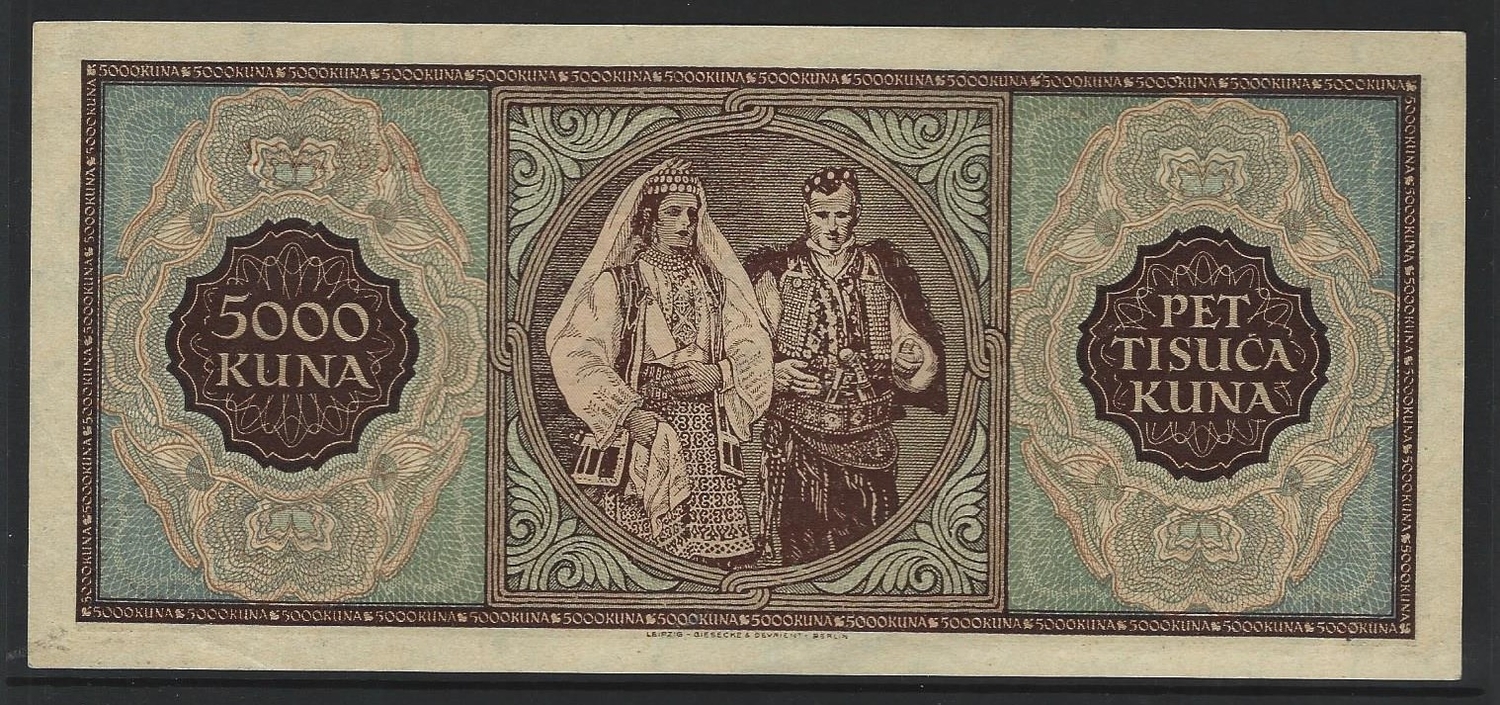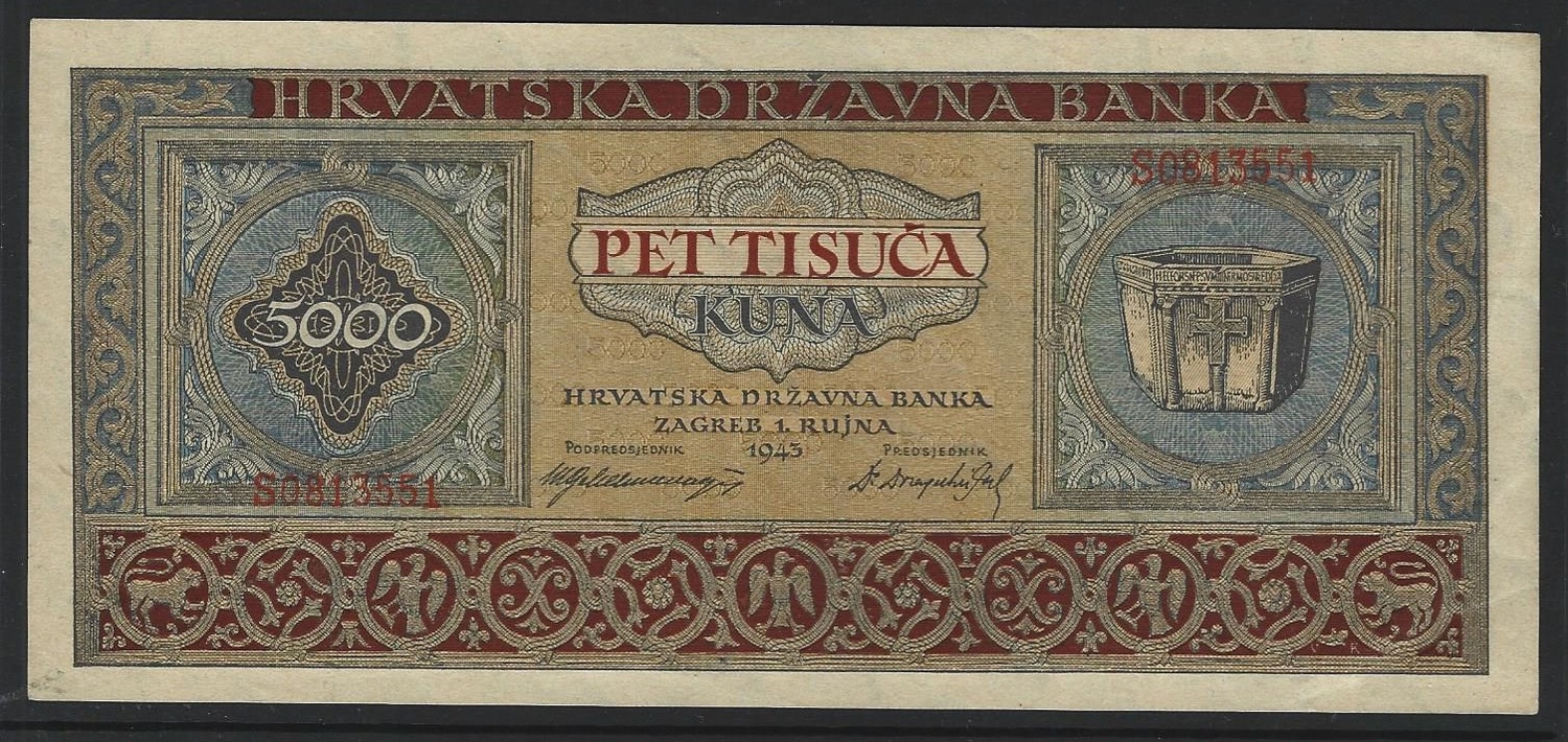 BANKNOTE. Croatia, 5000 Kuna, 1.9.1943, P-13a, EF