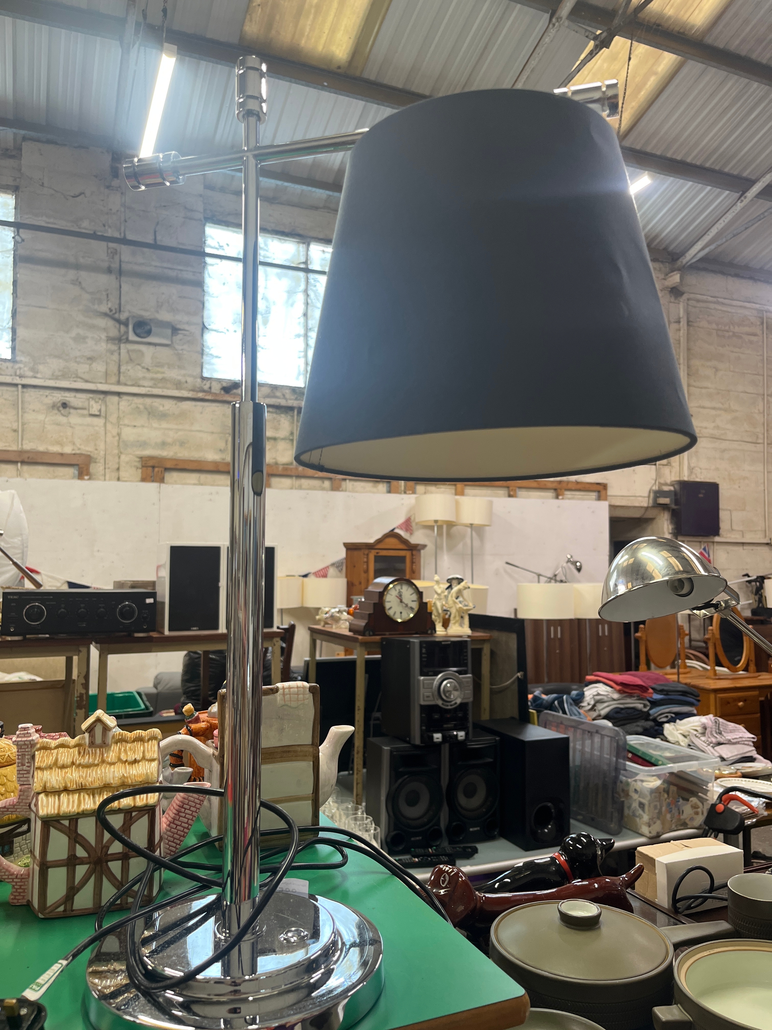 Quality contemporary Chrome table lamp with shade