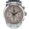 Case and bracelet made from stainless steel, slight scratch to the bezel at 7 o'clock. Mineral crystal. Off white dial with gold & blued steel hands, seconds, 12 hour and 30 minute sub dials. Date window in between 4 and 5 o'clock with quick set function.