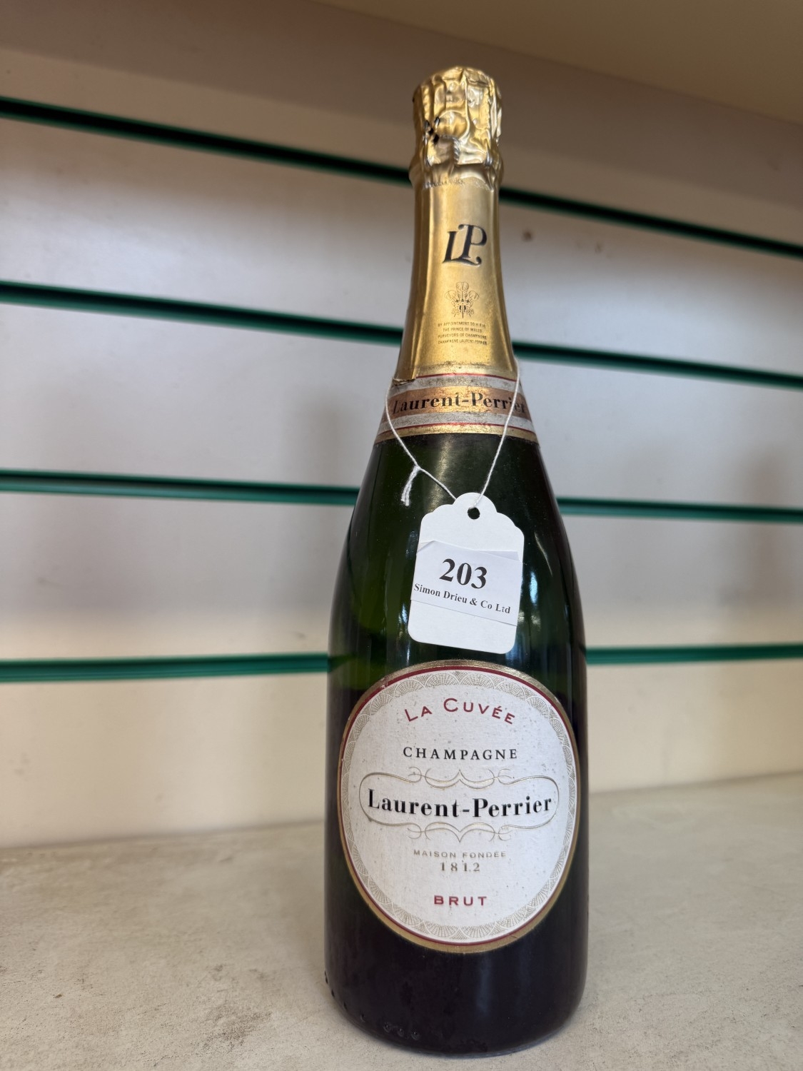 A bottle of Laurent Perrier Brut Champagne