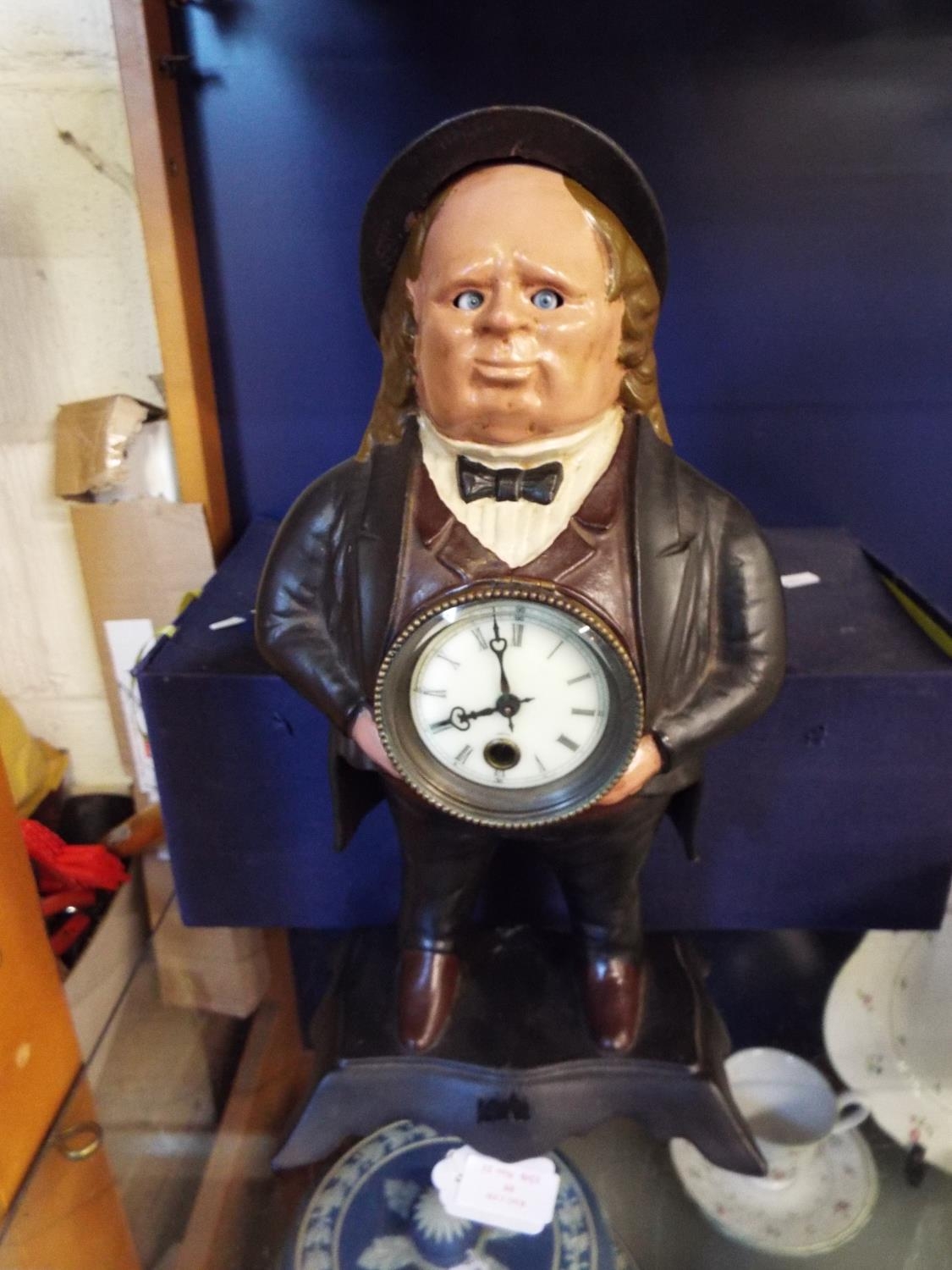 A cast figure of a gentleman with fitted clock A/F