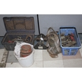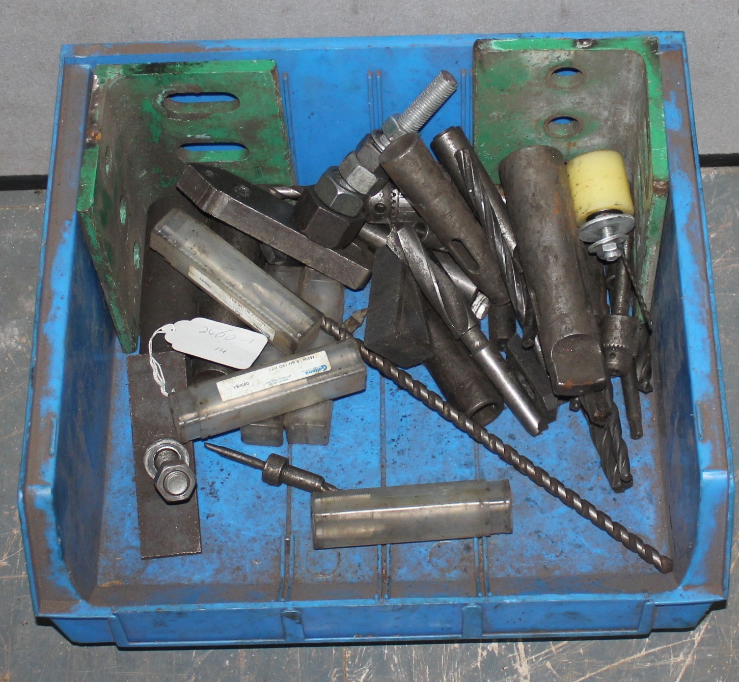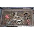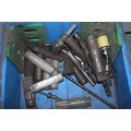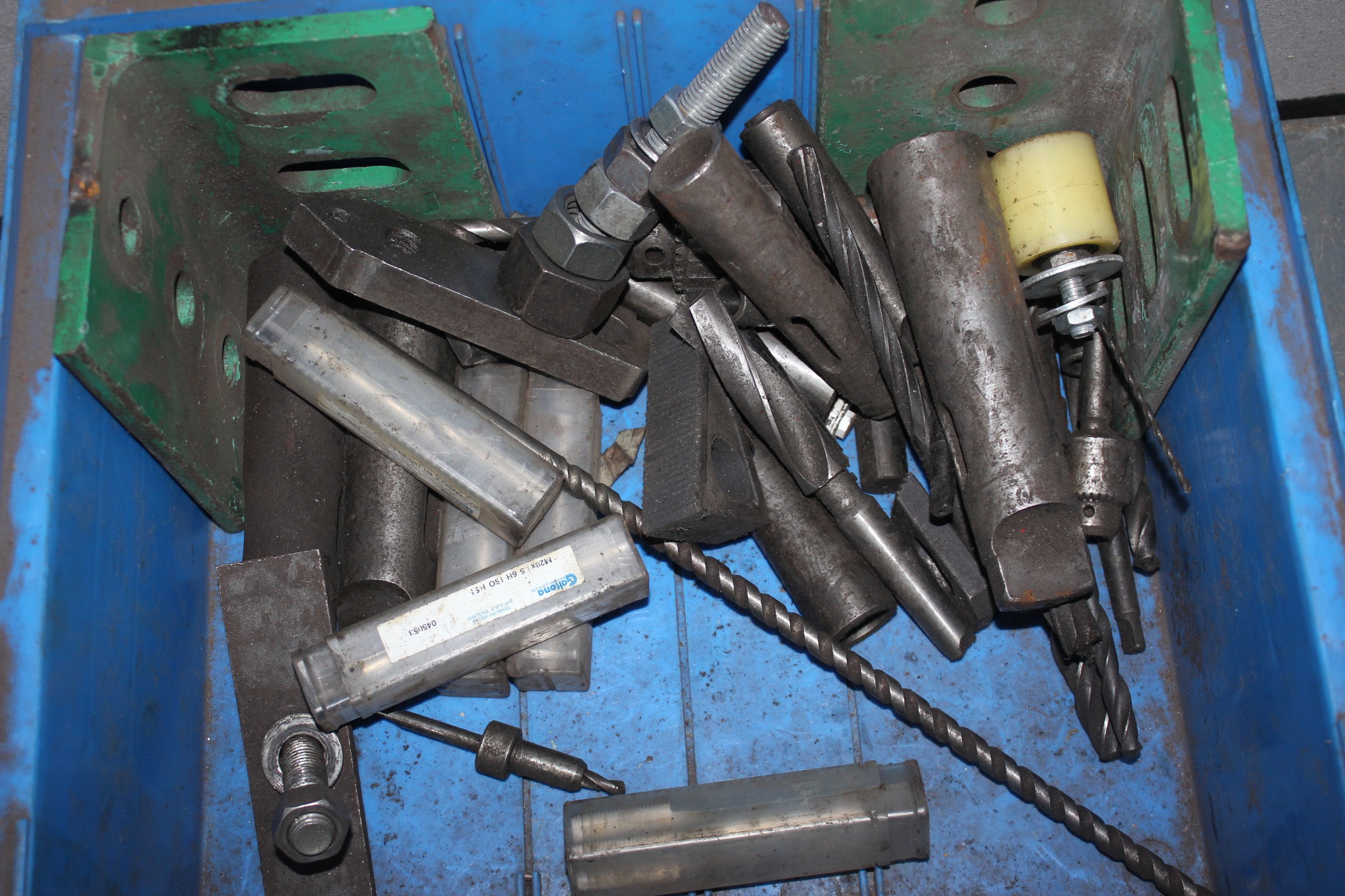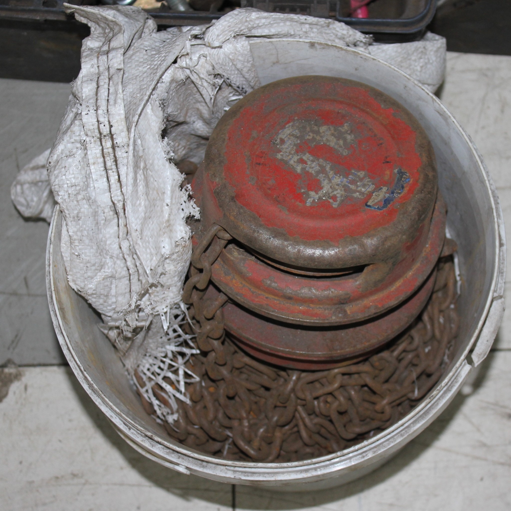 LIFTING BLOCK AND CHAIN, SHACKLES, RATCHETS, STRAPS, BEAM TROLLEY, 110V TOOLS, SEALEY OIL DISPENSER, VARIOUS TOOLING