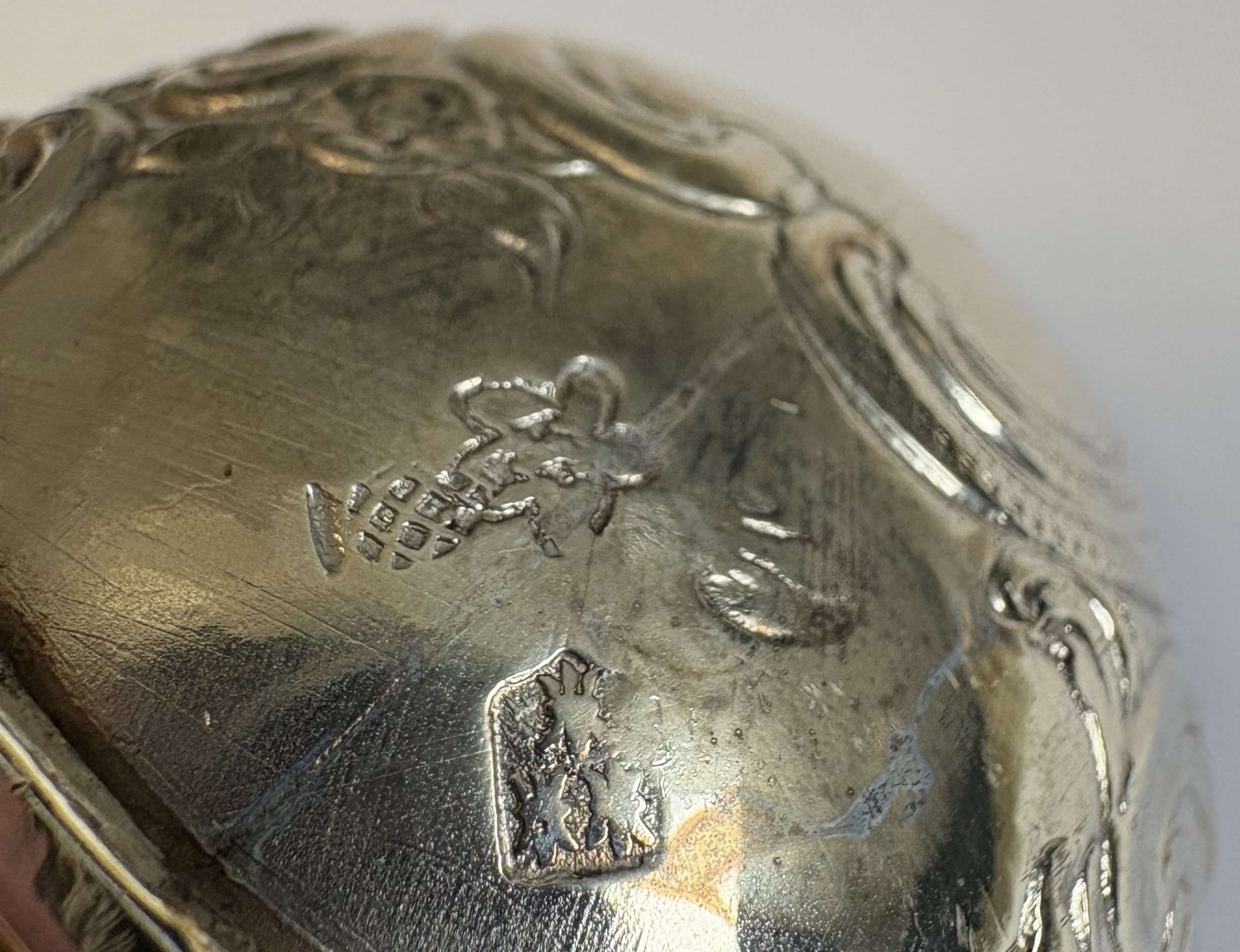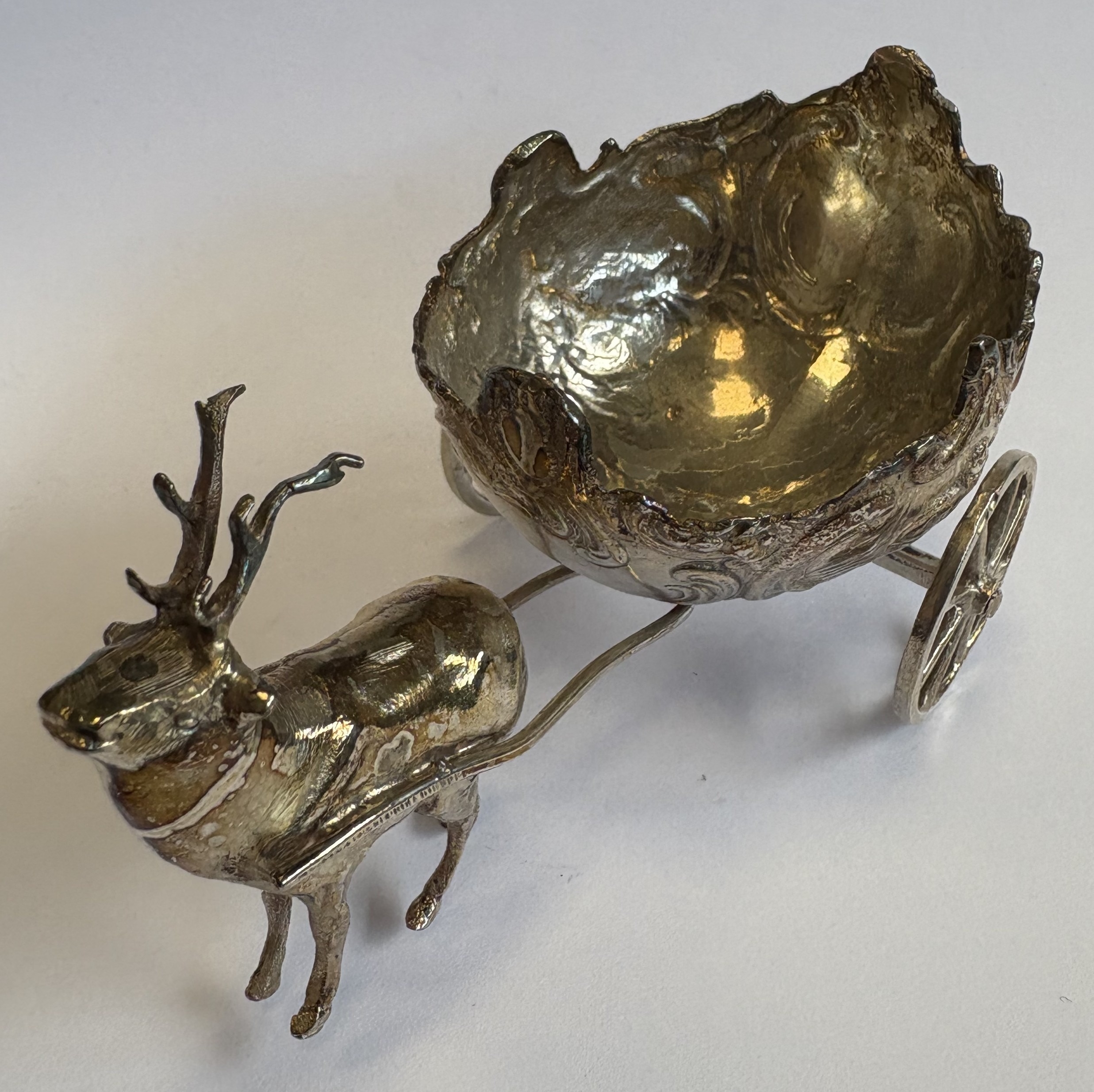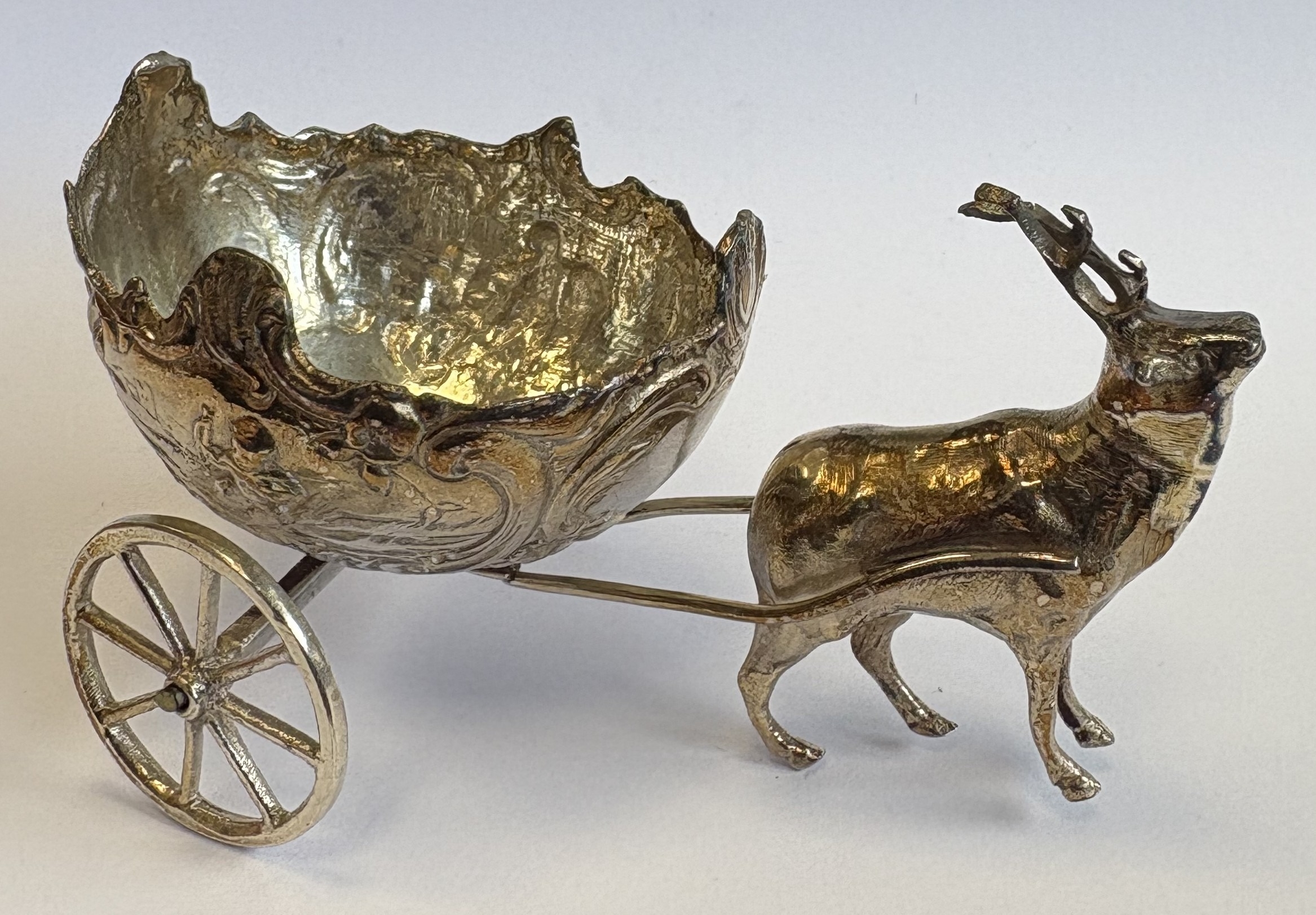 A heavy silver table toy in the form of a reindeer with chased decoration. Approx. 67 grams. Est. £30 - £40.