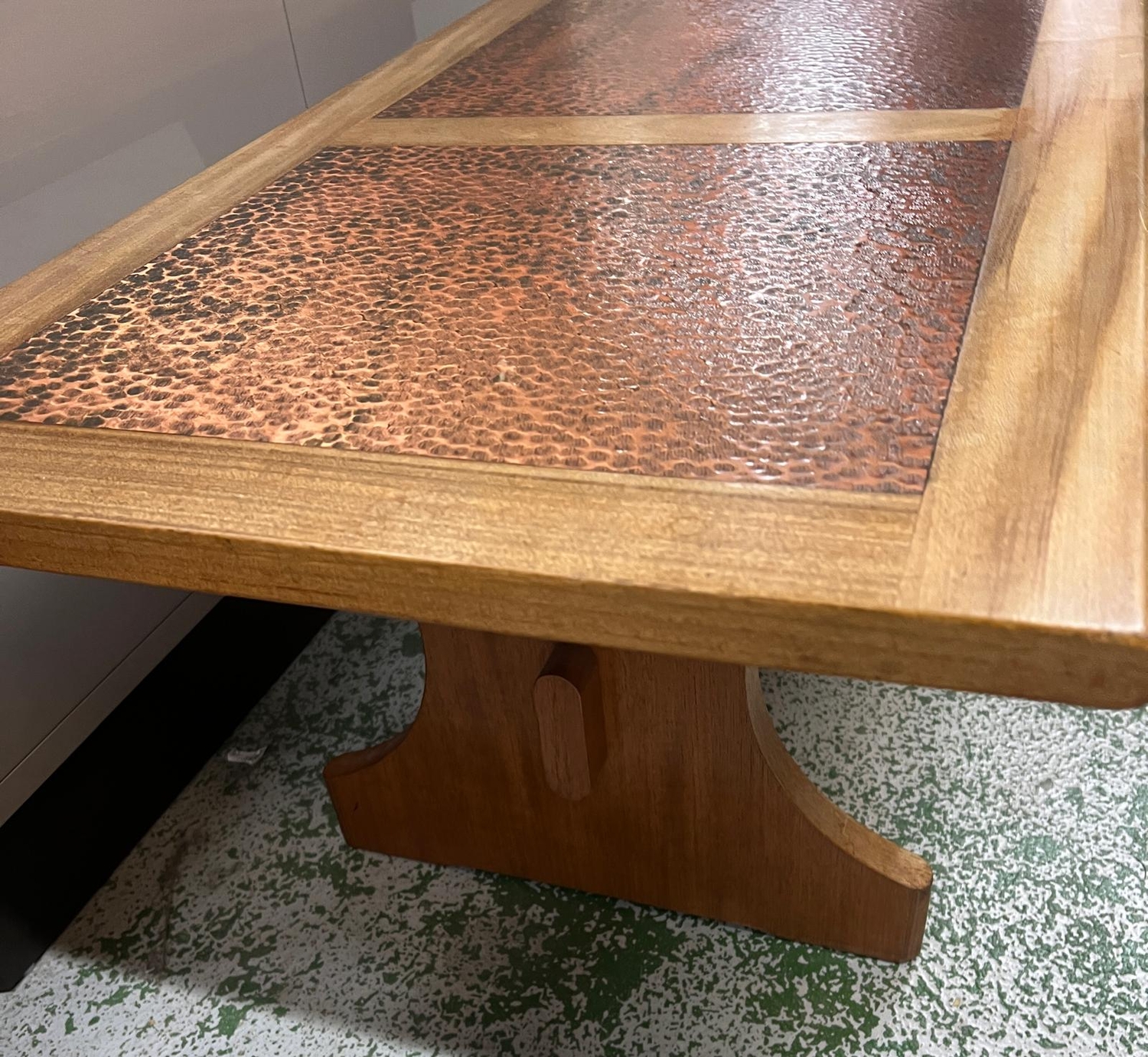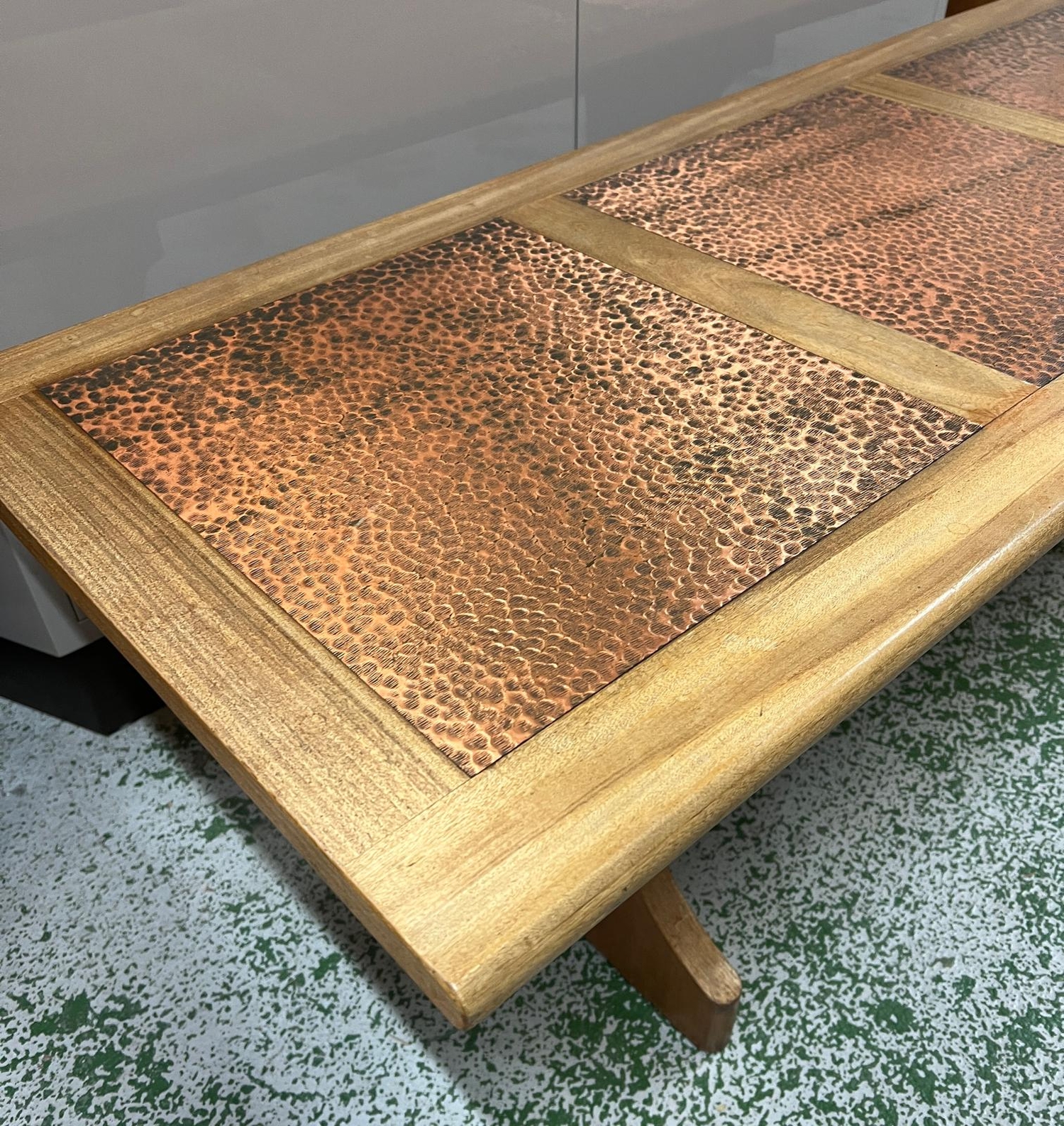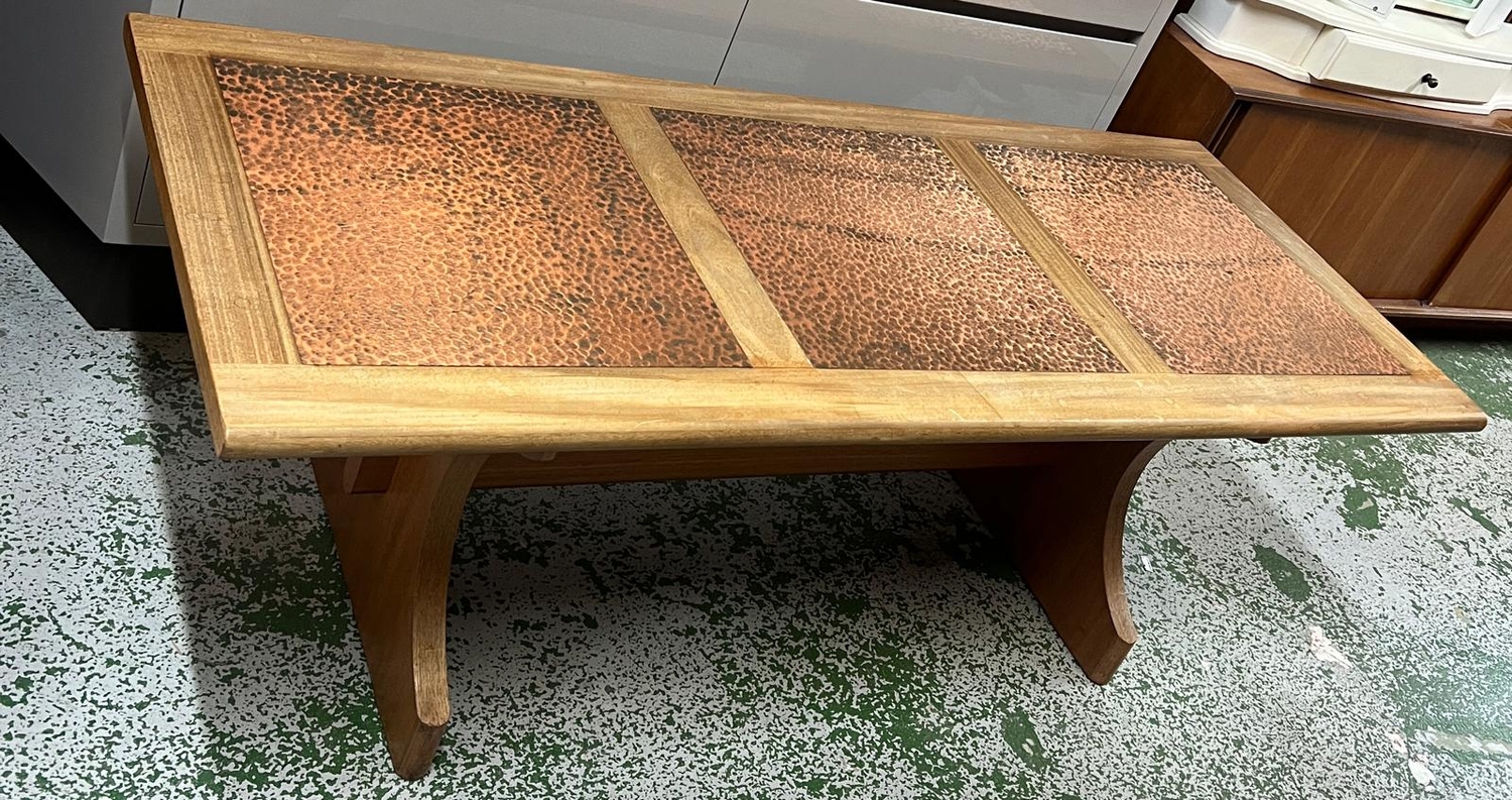 A G-plan coffee table with hammered copper top (H45cm x 53cm x 132cm)