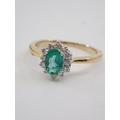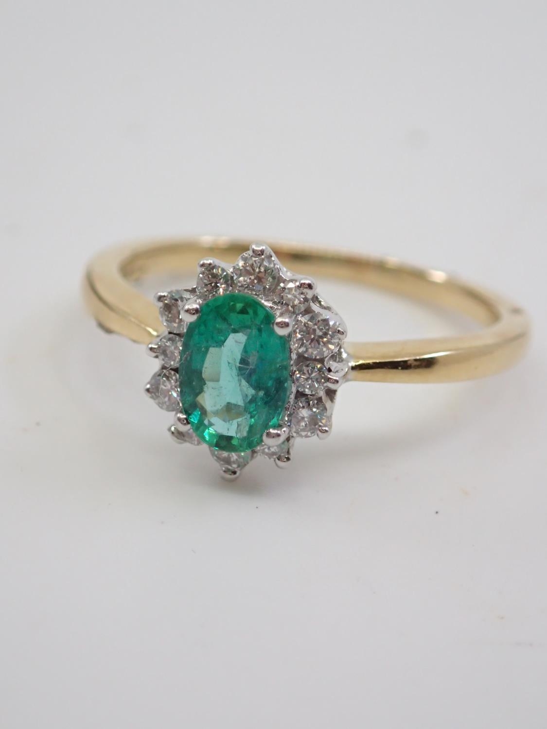 An 18ct gold emerald and diamond cluster ring finger size Q