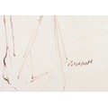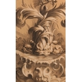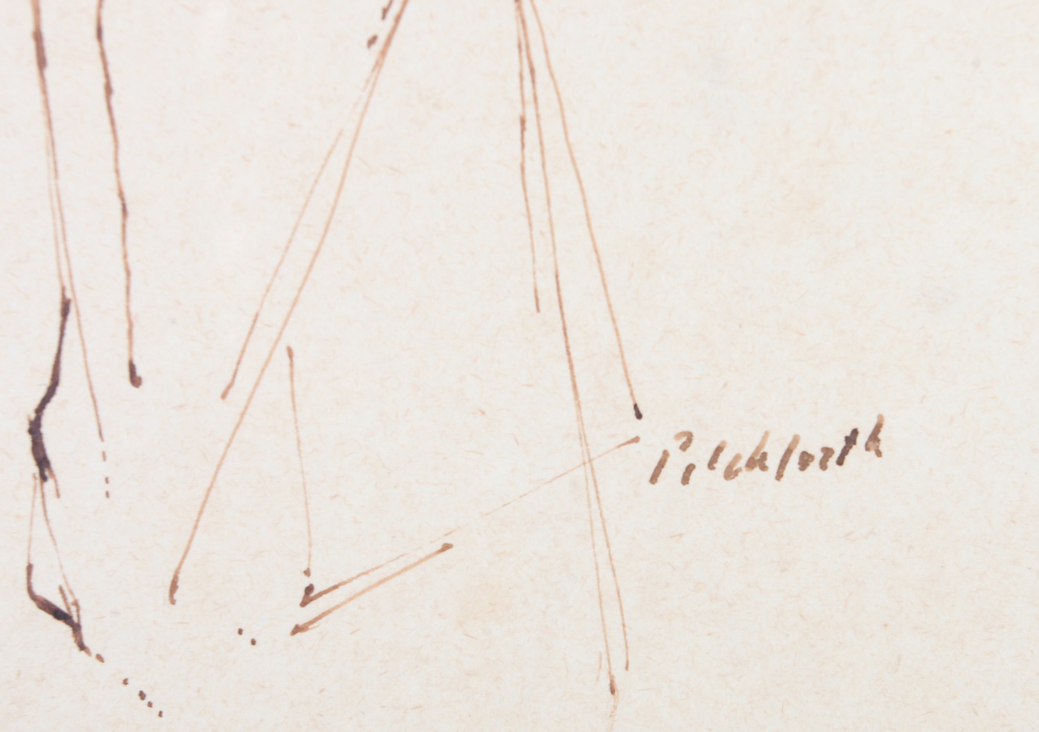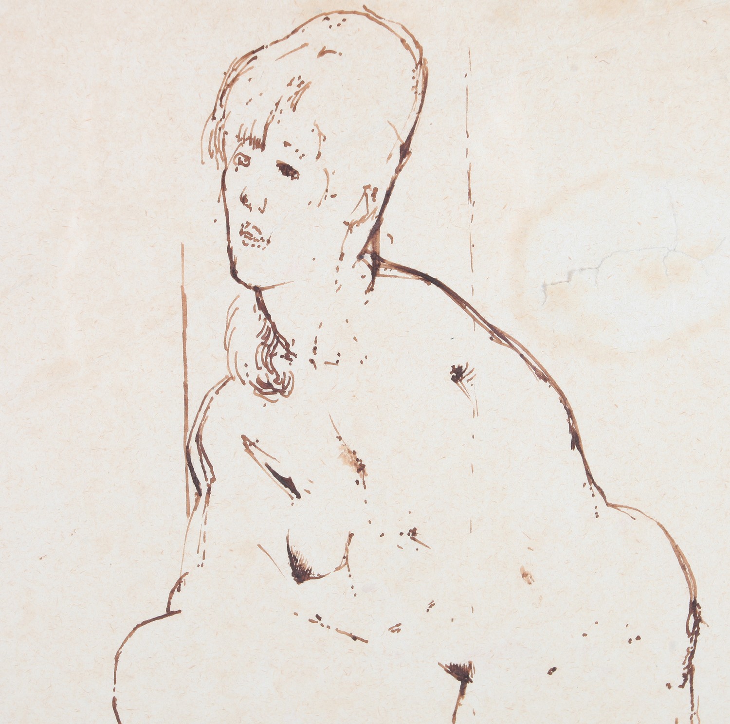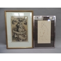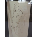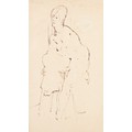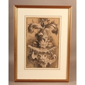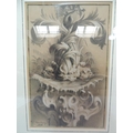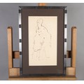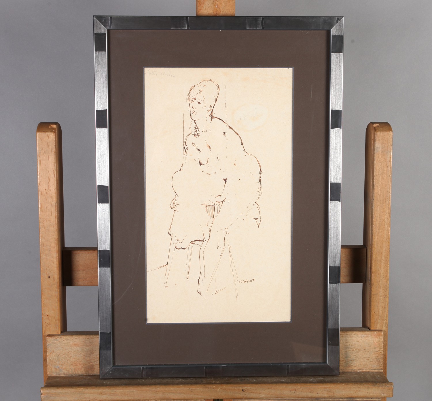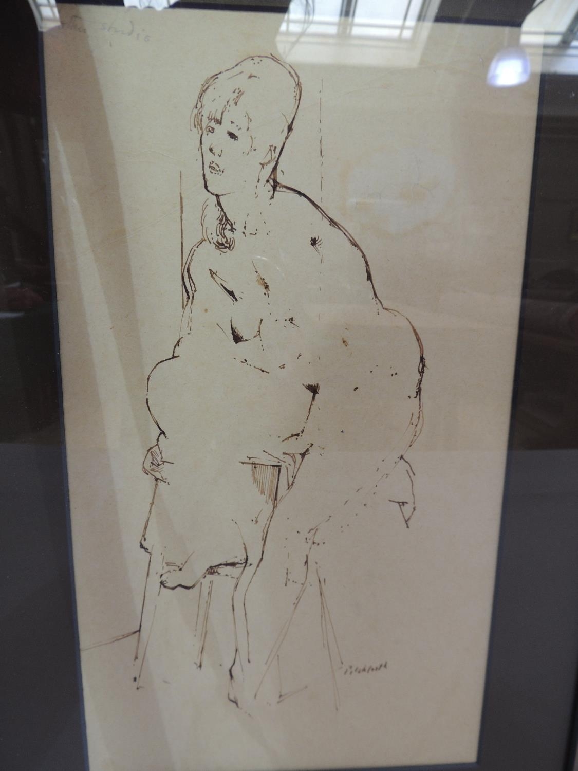 ADA YOUNG (19th century), Dolphins and acanthus leaf fountain, pastel, signed and dated 1887 lower left, gallery label verso, 39cm x 25cm, framed; PICKFORTH (Mid 20th century), Female nude sitting on a stool, pen and ink on buff paper, signed to lower right, 35cm x 20cm (2)
