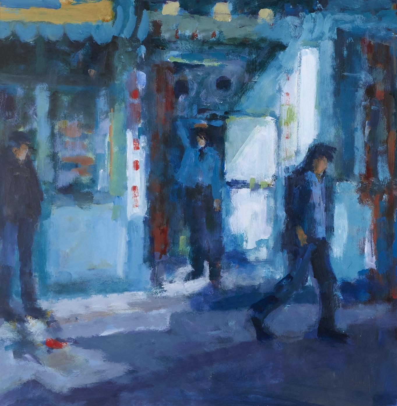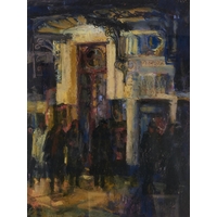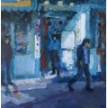 Debra Manifold RI, PS (1961-2020) - Figures in a Street, pastel, 50 x 49cm