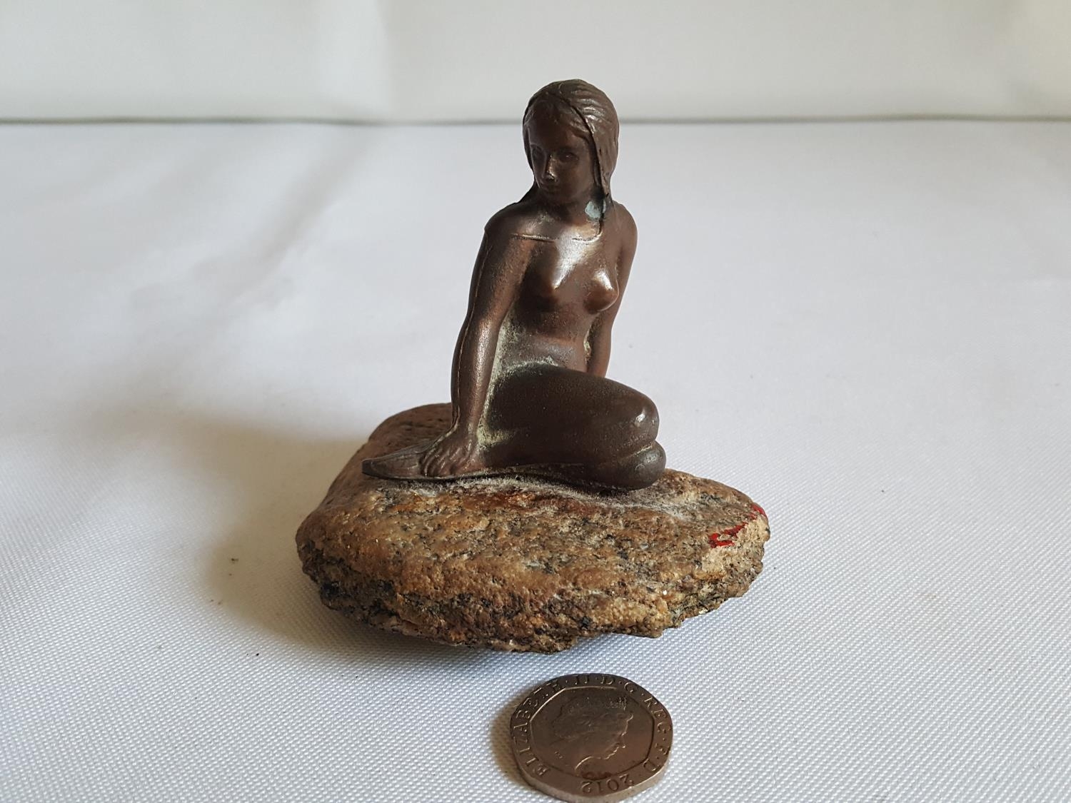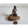 bronzed lady on rock