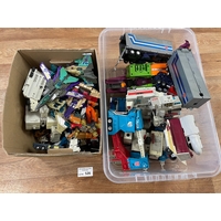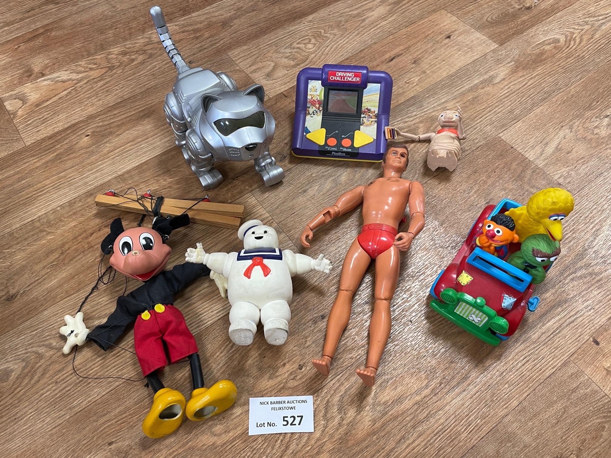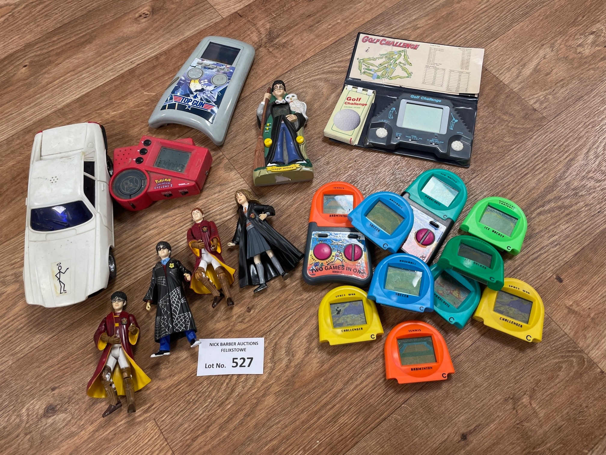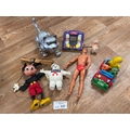 Collectables: Assortment of vintage toys, including General Mills Six Million Dollar Man, Corgi, Harry Potter, Tinplate, and others; generally Fair, many pieces requiring cleaning/repairs; items not checked for completeness; (qty).